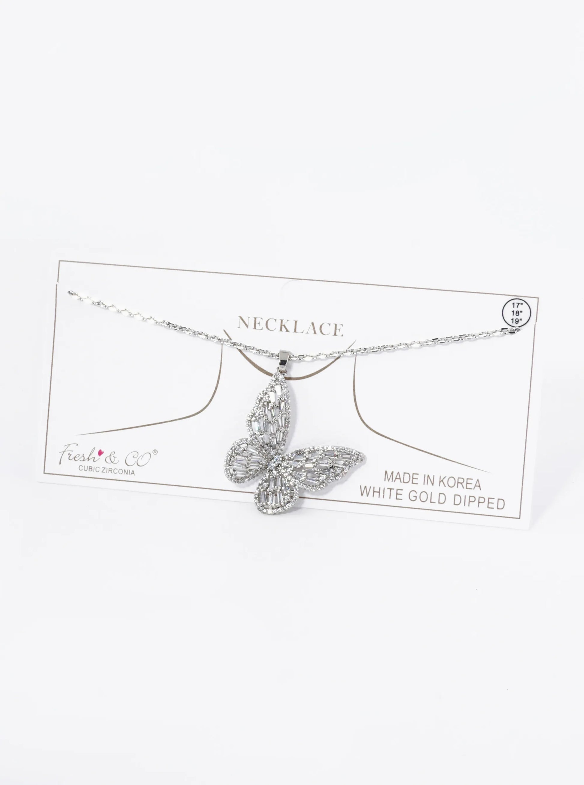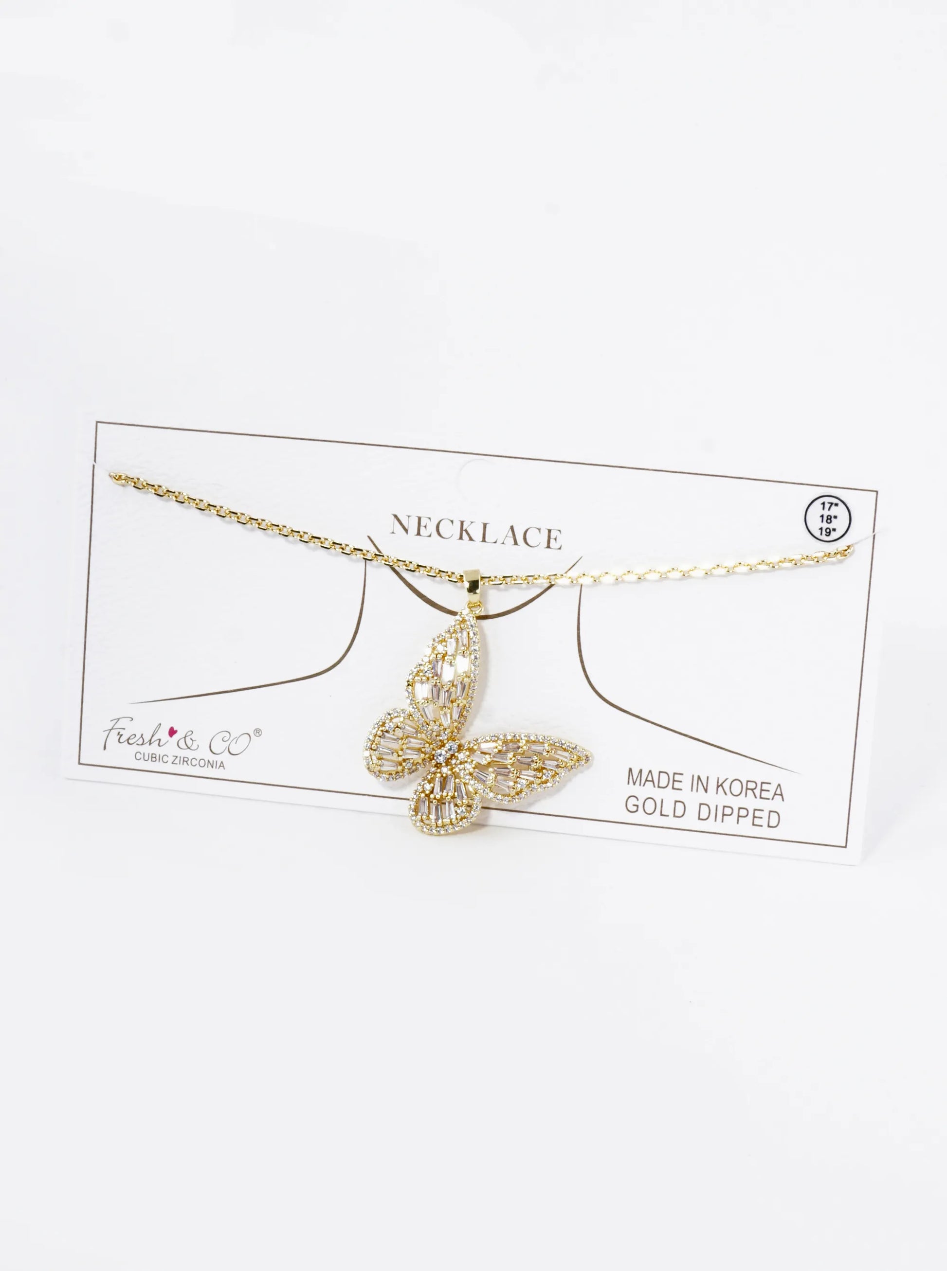 18K Gold Dipped Pave Cubic Zirconia Embellishments Butterfly Pendant Necklace