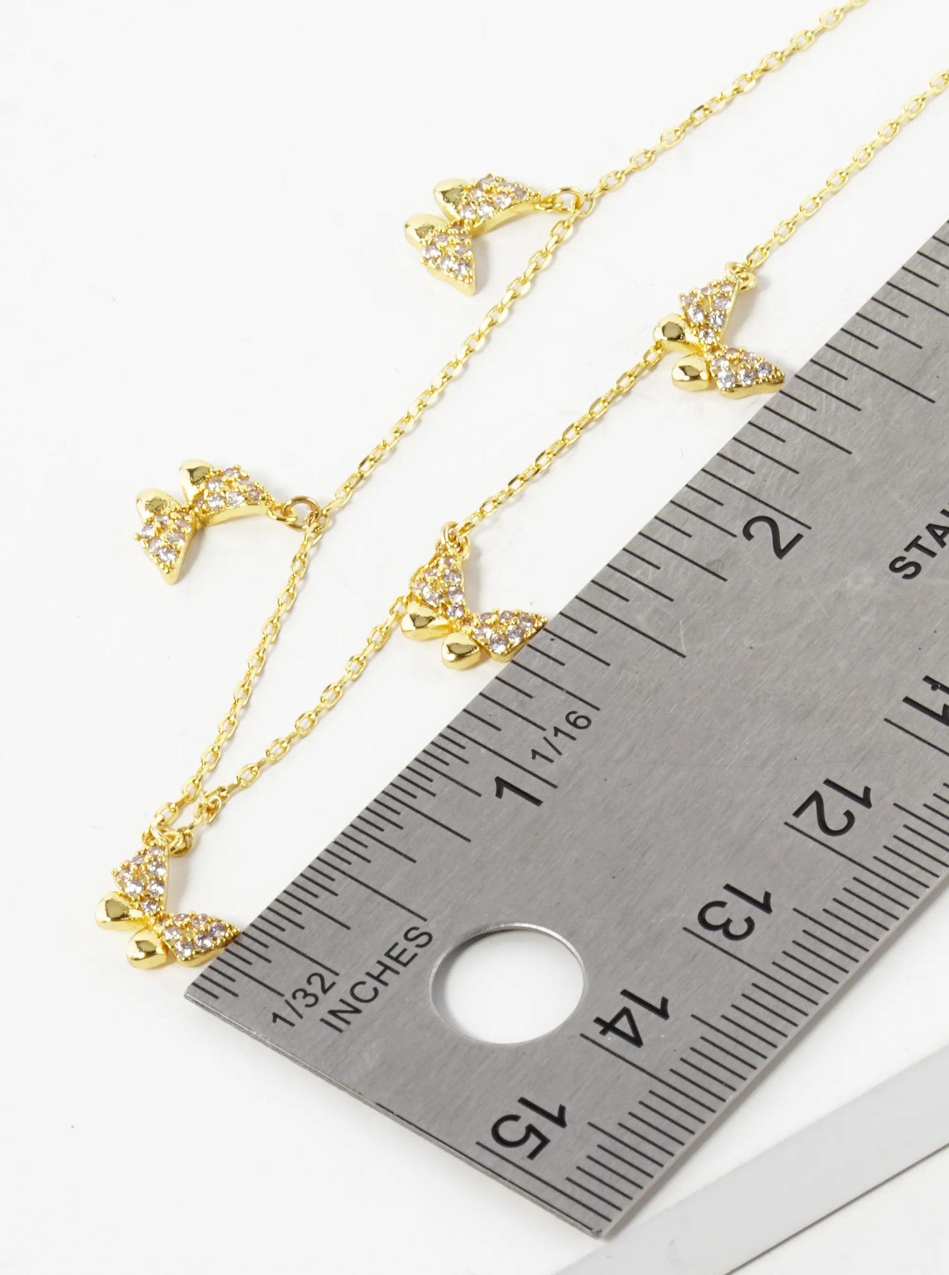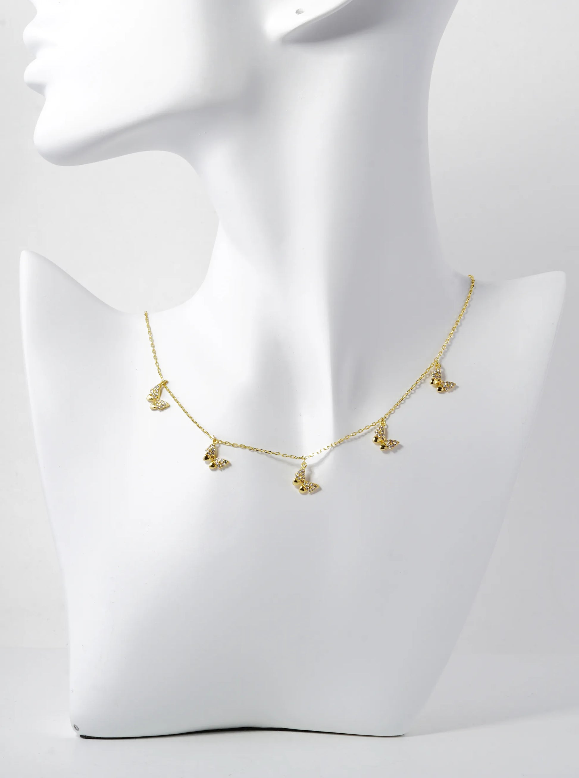 18K Gold Dipped Pave Cubic Zirconia Five Butterflies Pendant Necklace