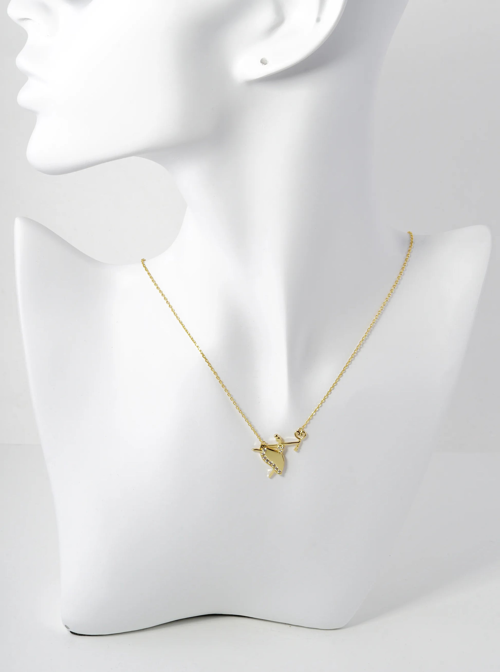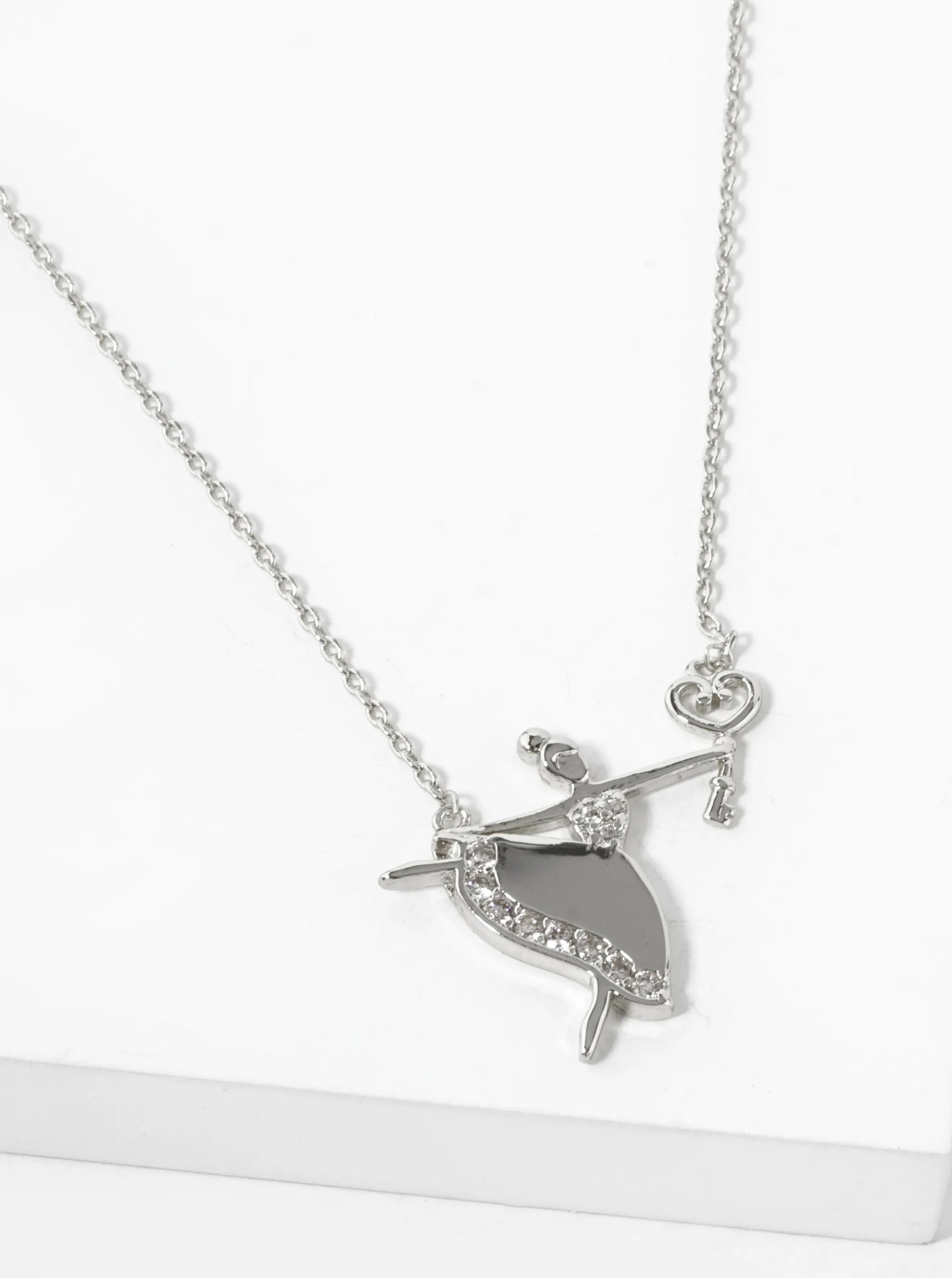 18K Gold Dipped Pave Cubic Zirconia Heart Key Grabbed Ballerina Pendant Necklace