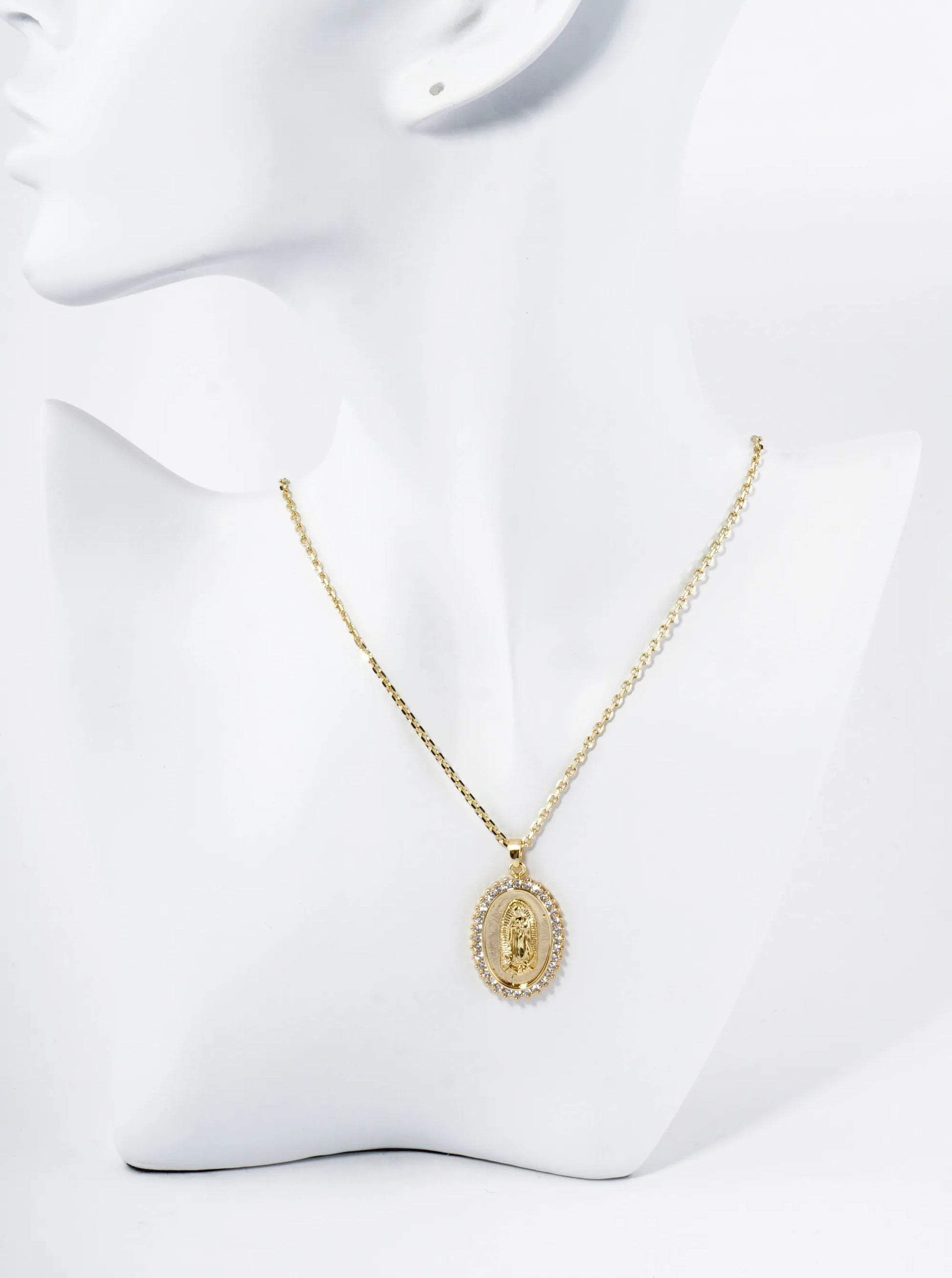 18K Gold Dipped Pave Cubic Zirconia Miraculous Medal Oval Pendant Necklace
