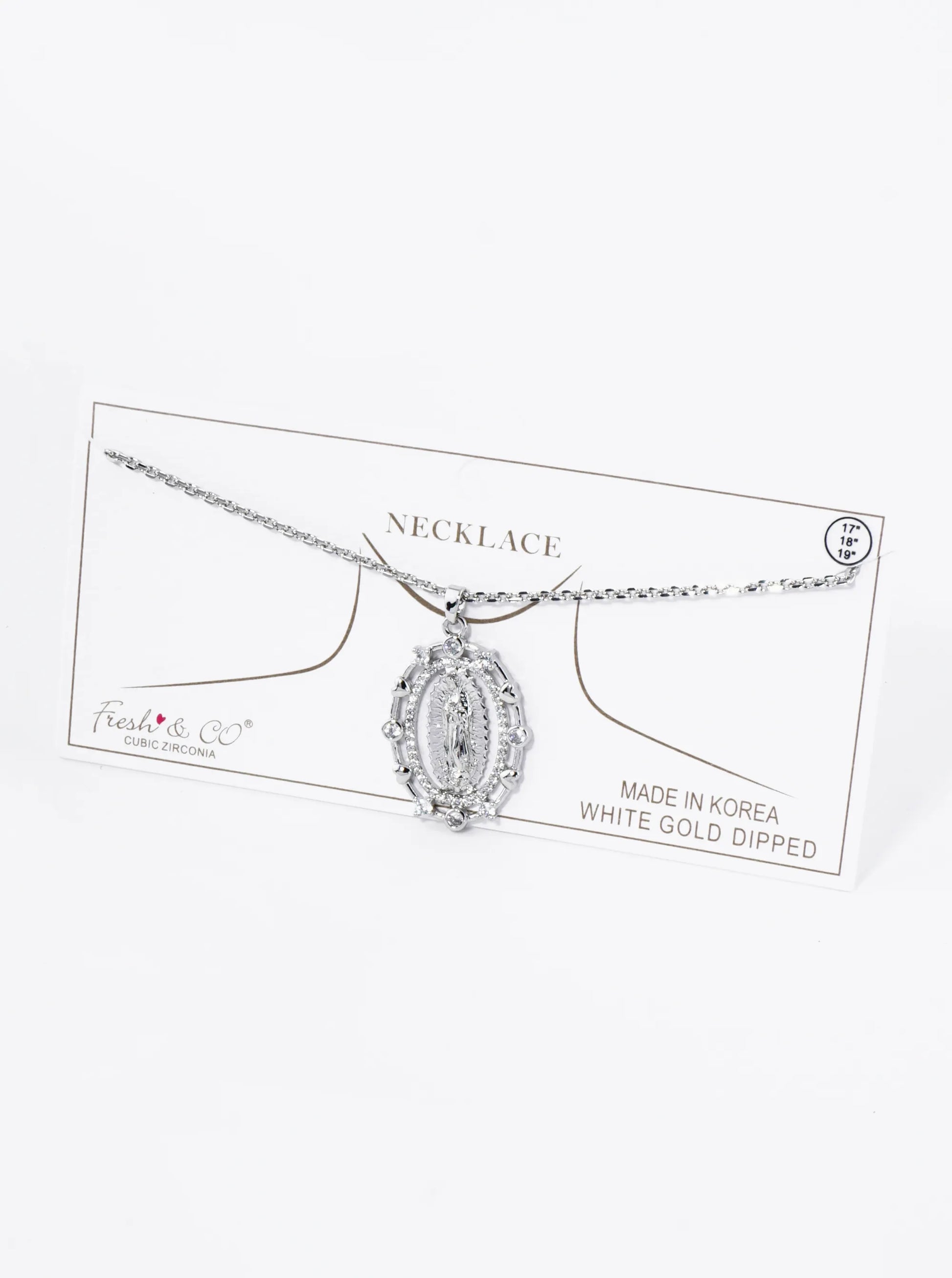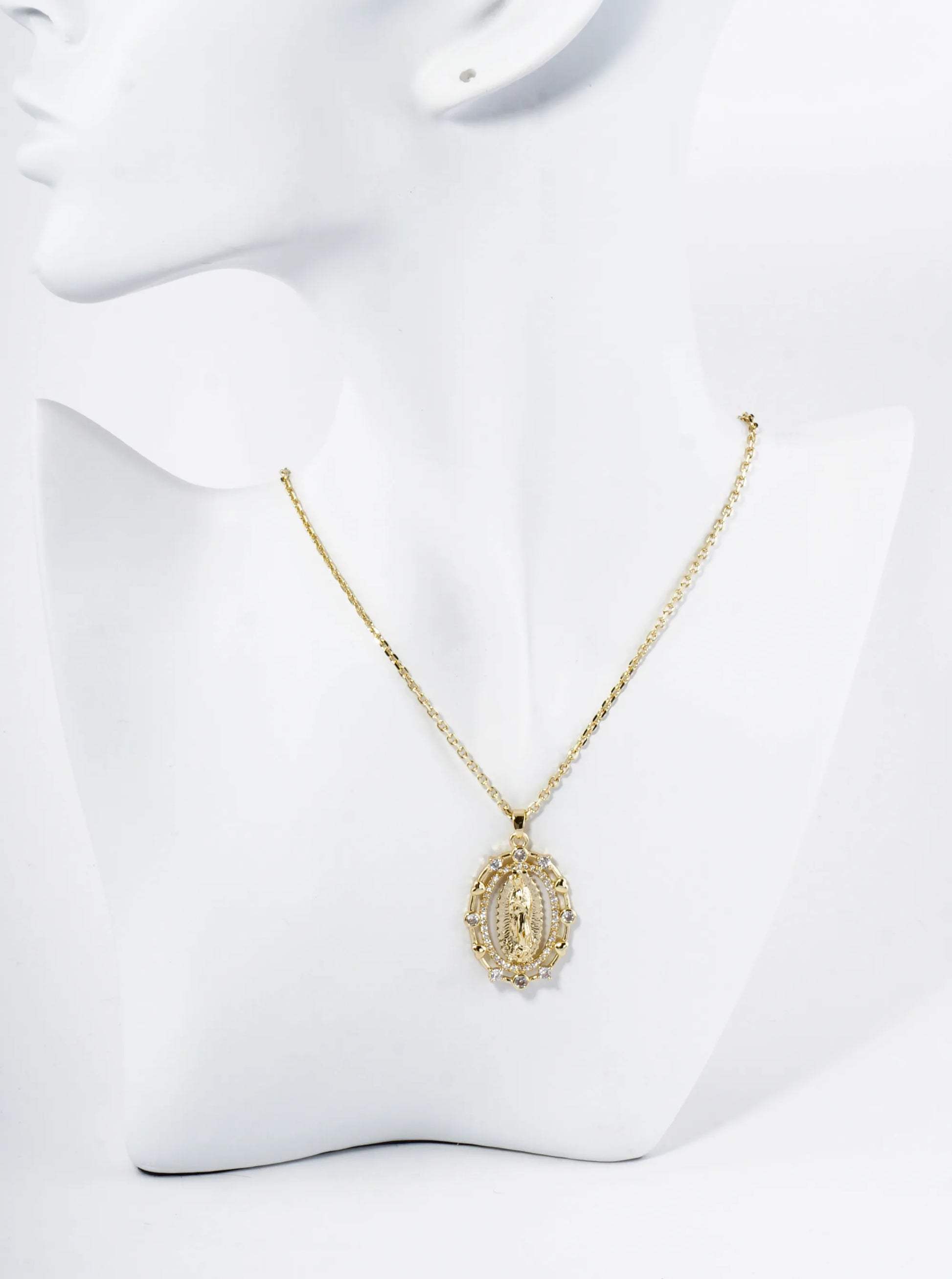 18K Gold Dipped Pave Cubic Zirconia Miraculous Medal Oval Pendant Necklace