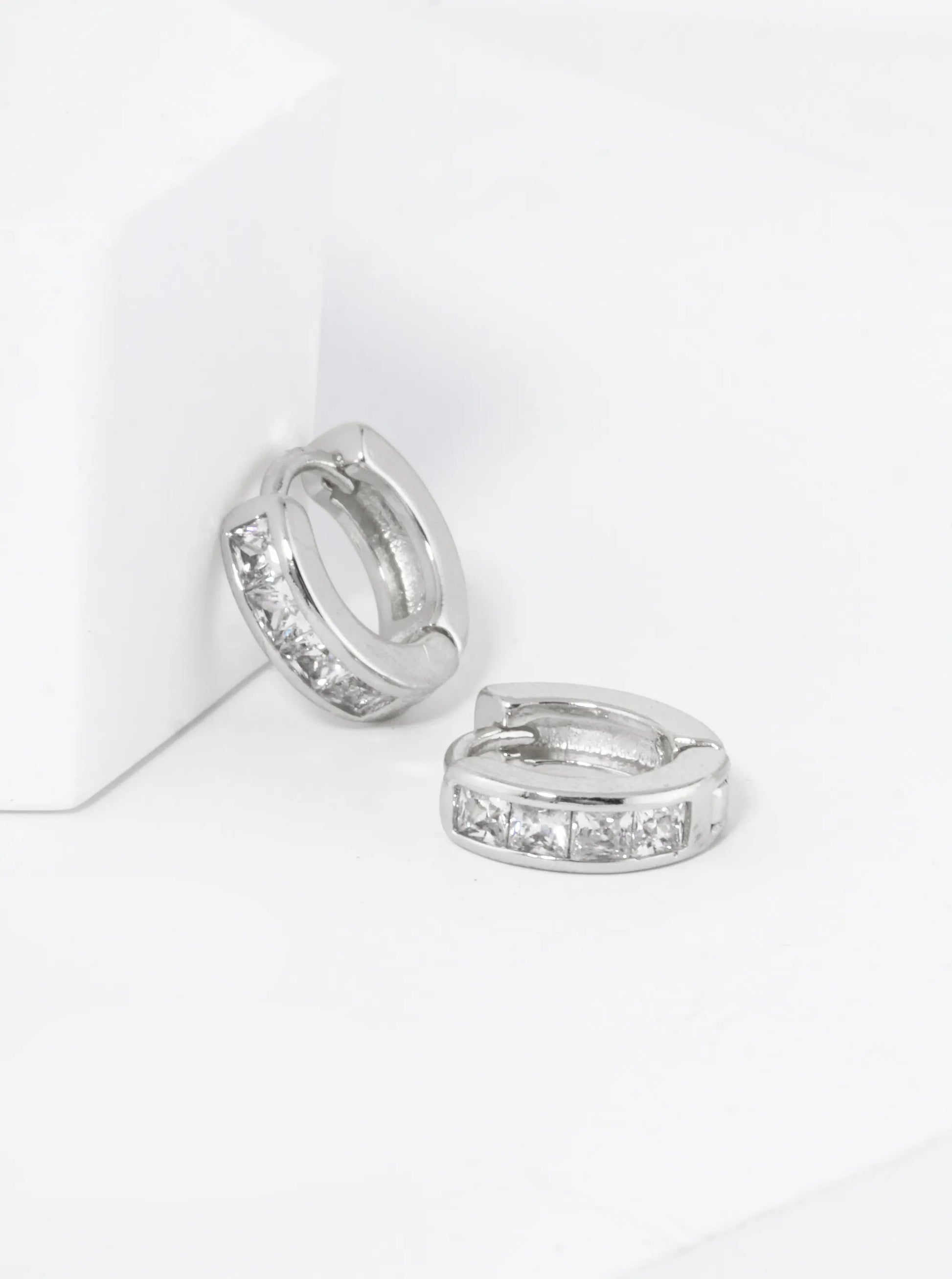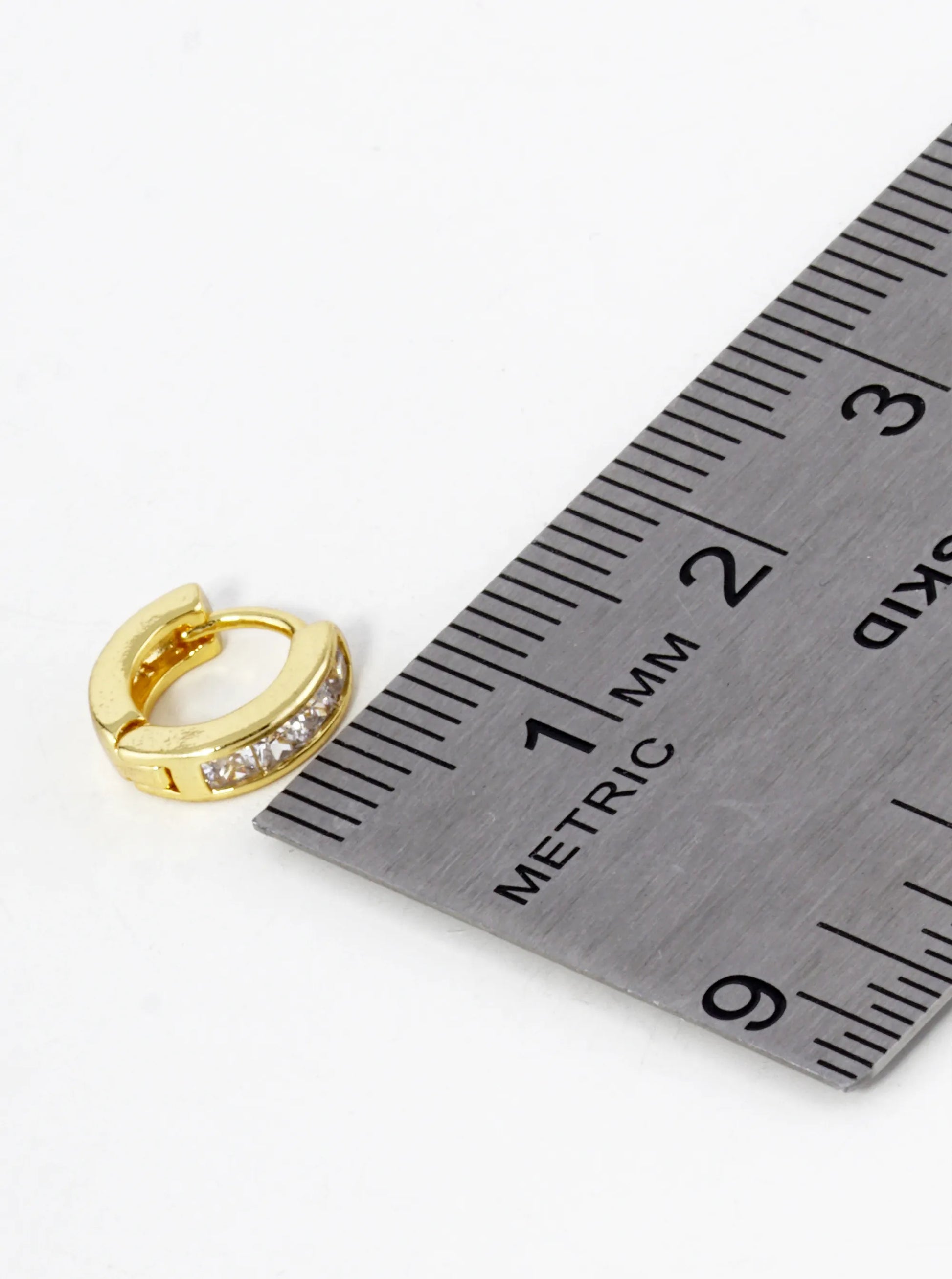 18K Gold Dipped Pave Set Cubic Zirconia 10mm Huggie Hoop Earrings
