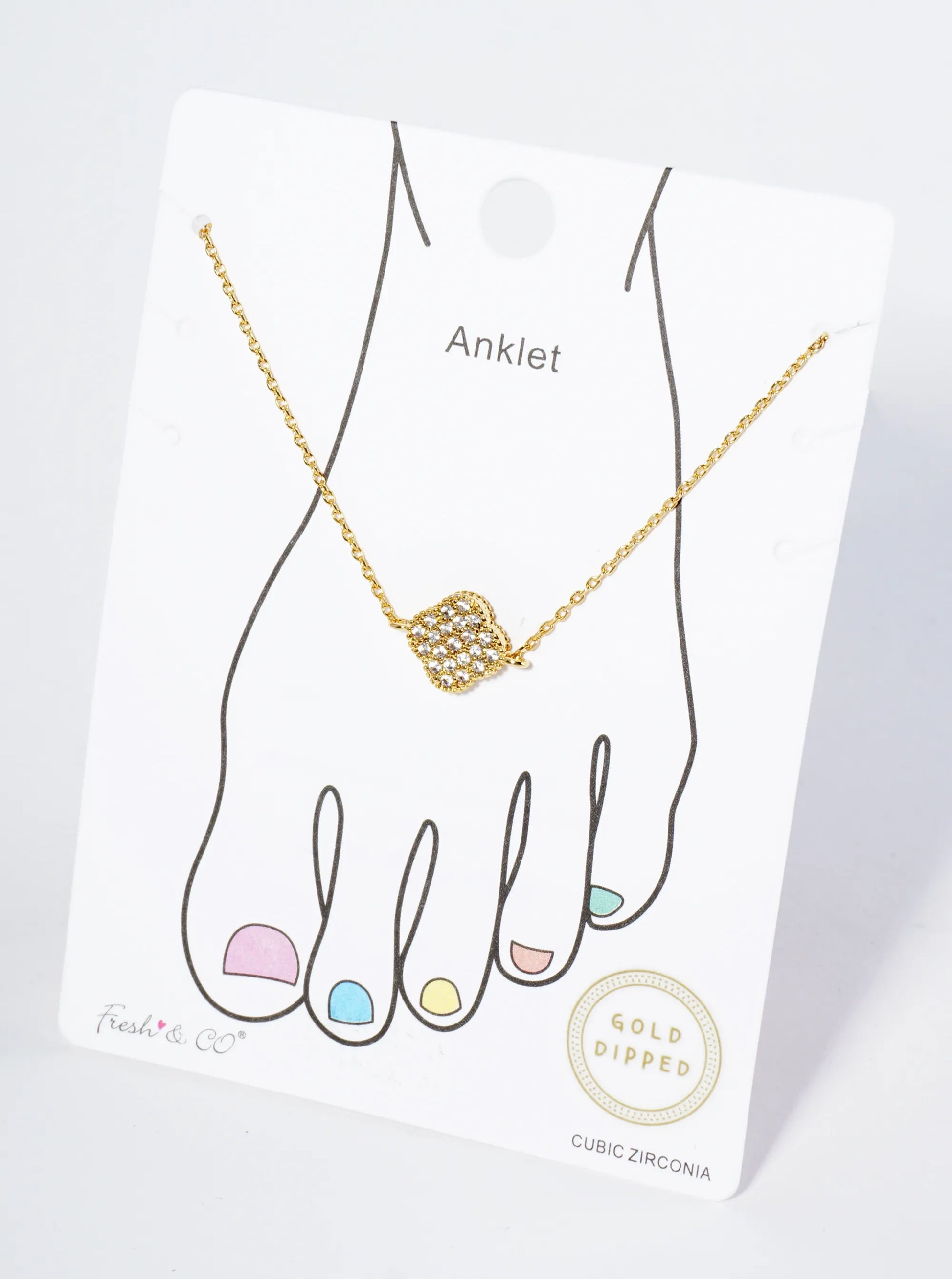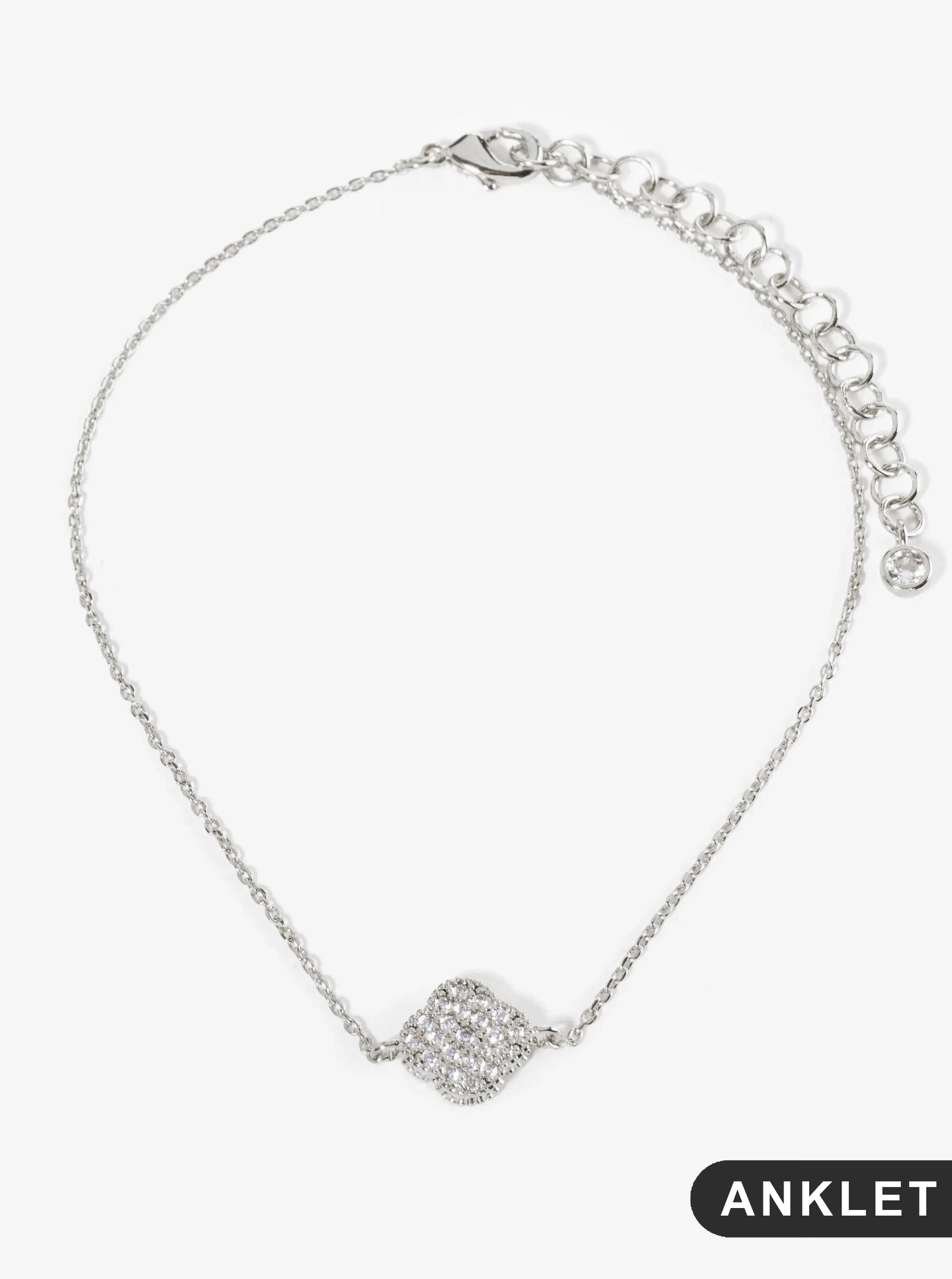 18K Gold Dipped Pave Set Cubic Zirconia 13mm Quatrefoil Chain Anklet