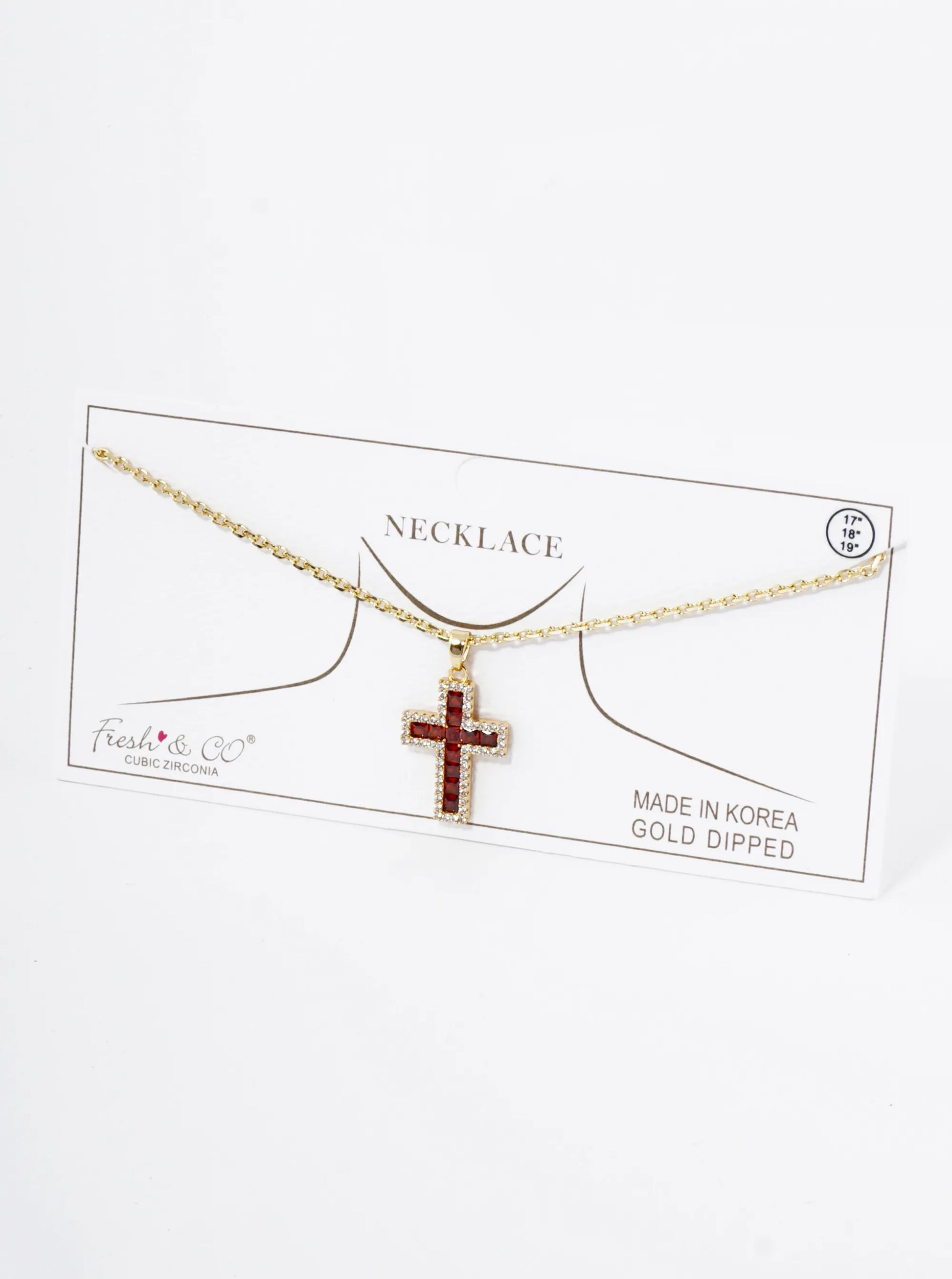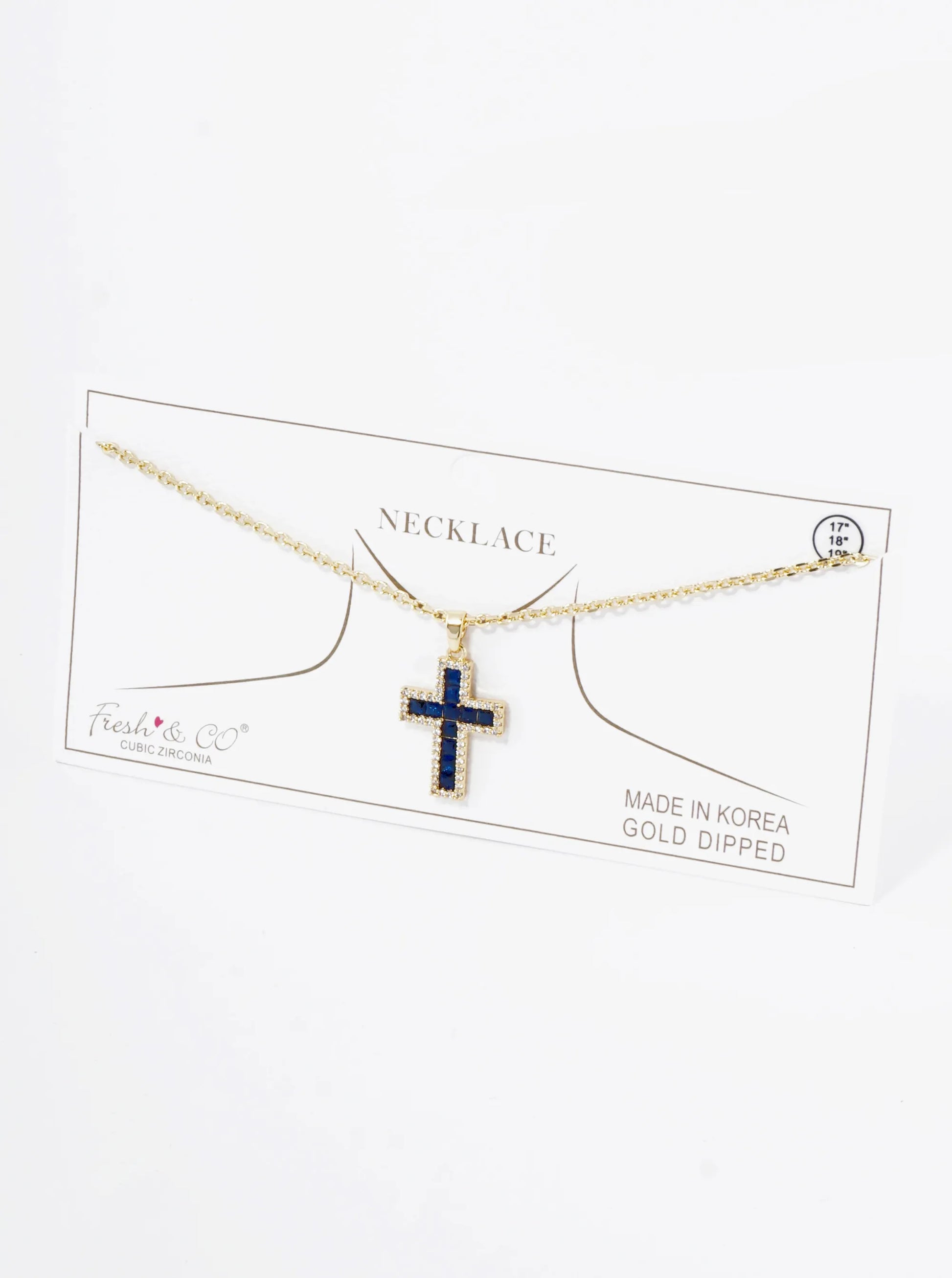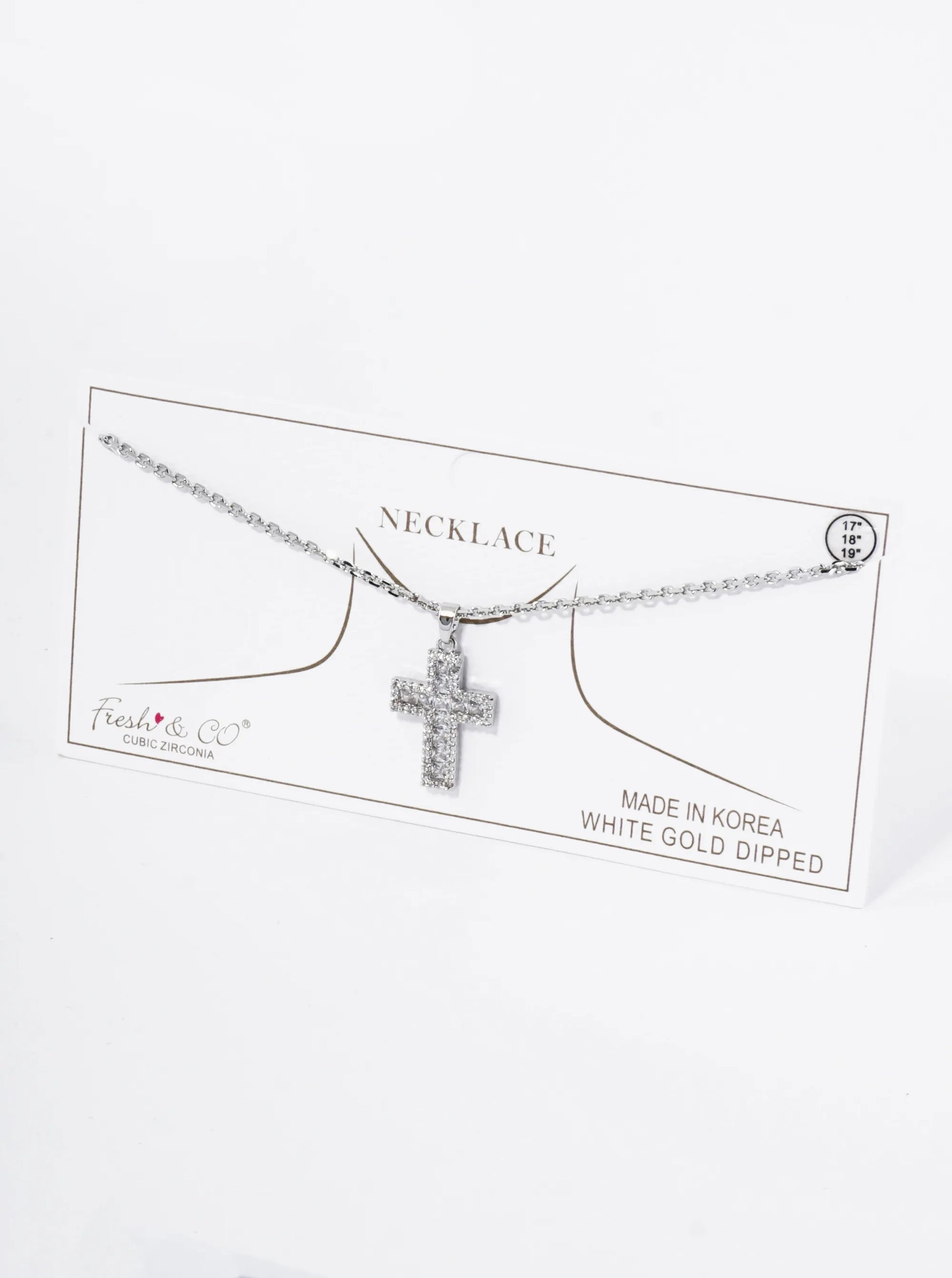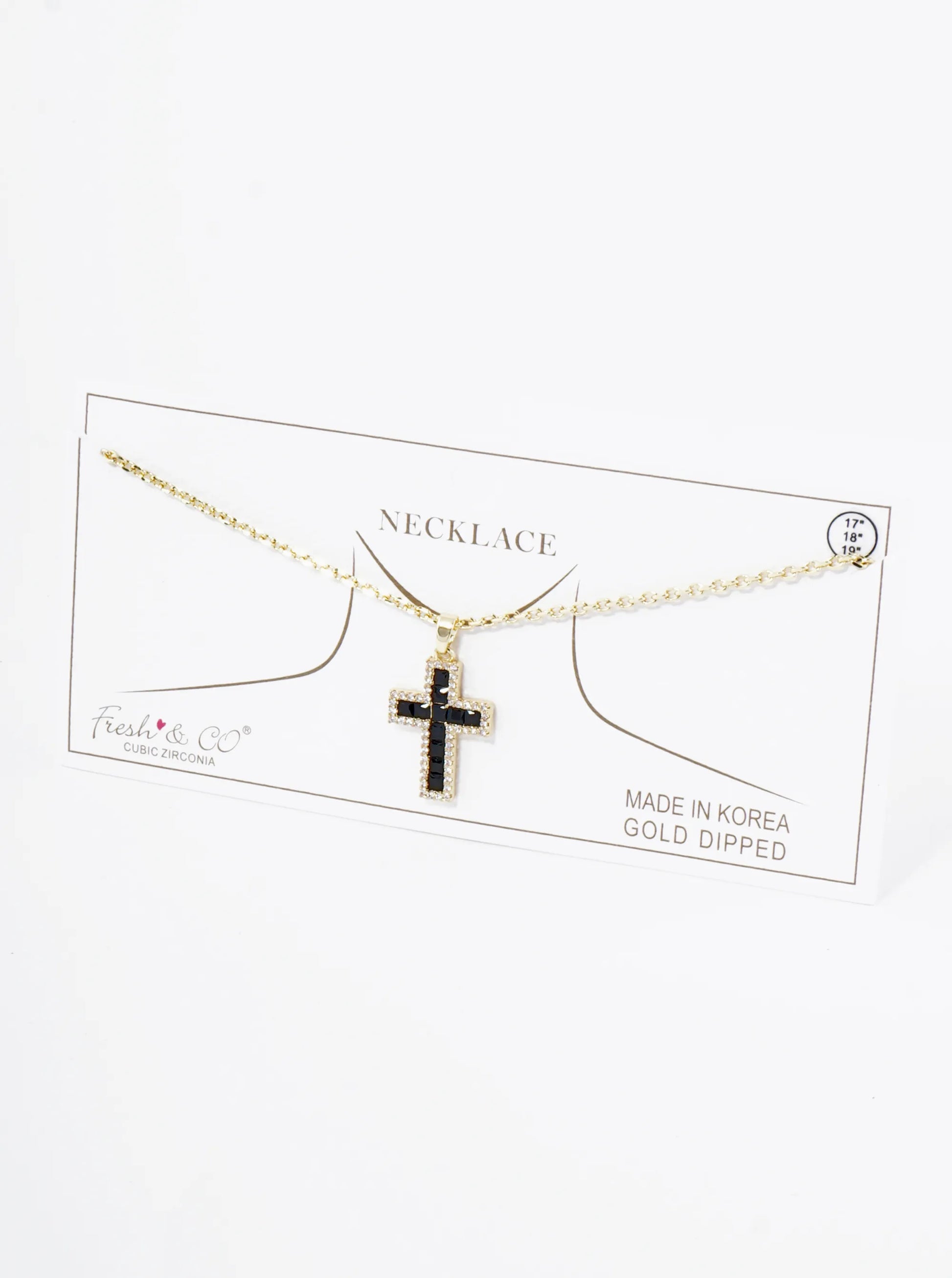 18K Gold Dipped Pave Set Cubic Zirconia Cross Pendant Necklace