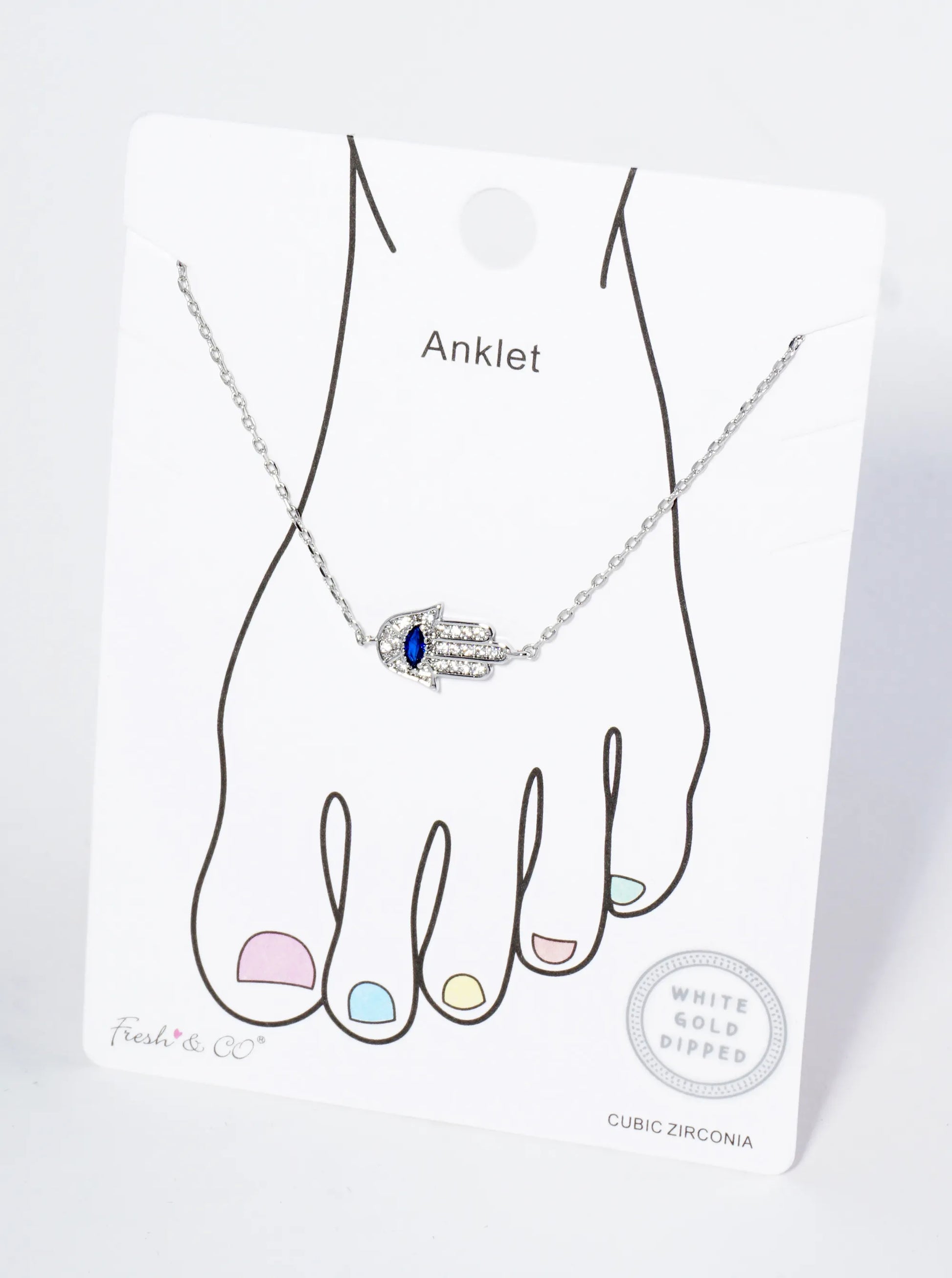 18K Gold Dipped Pave Set Cubic Zirconia Hamsa Chain Anklet
