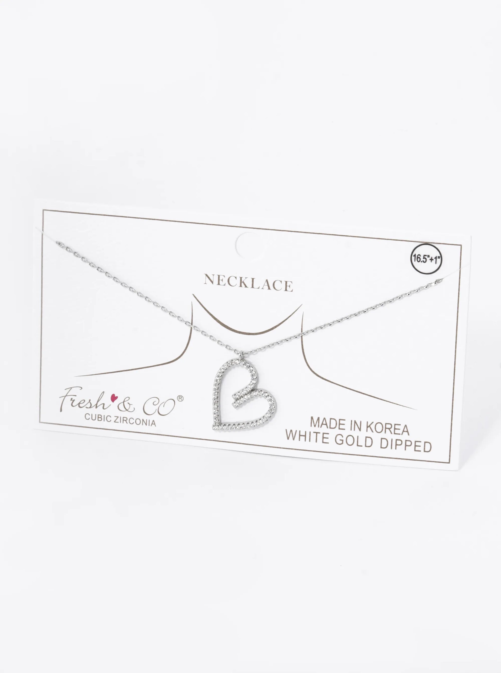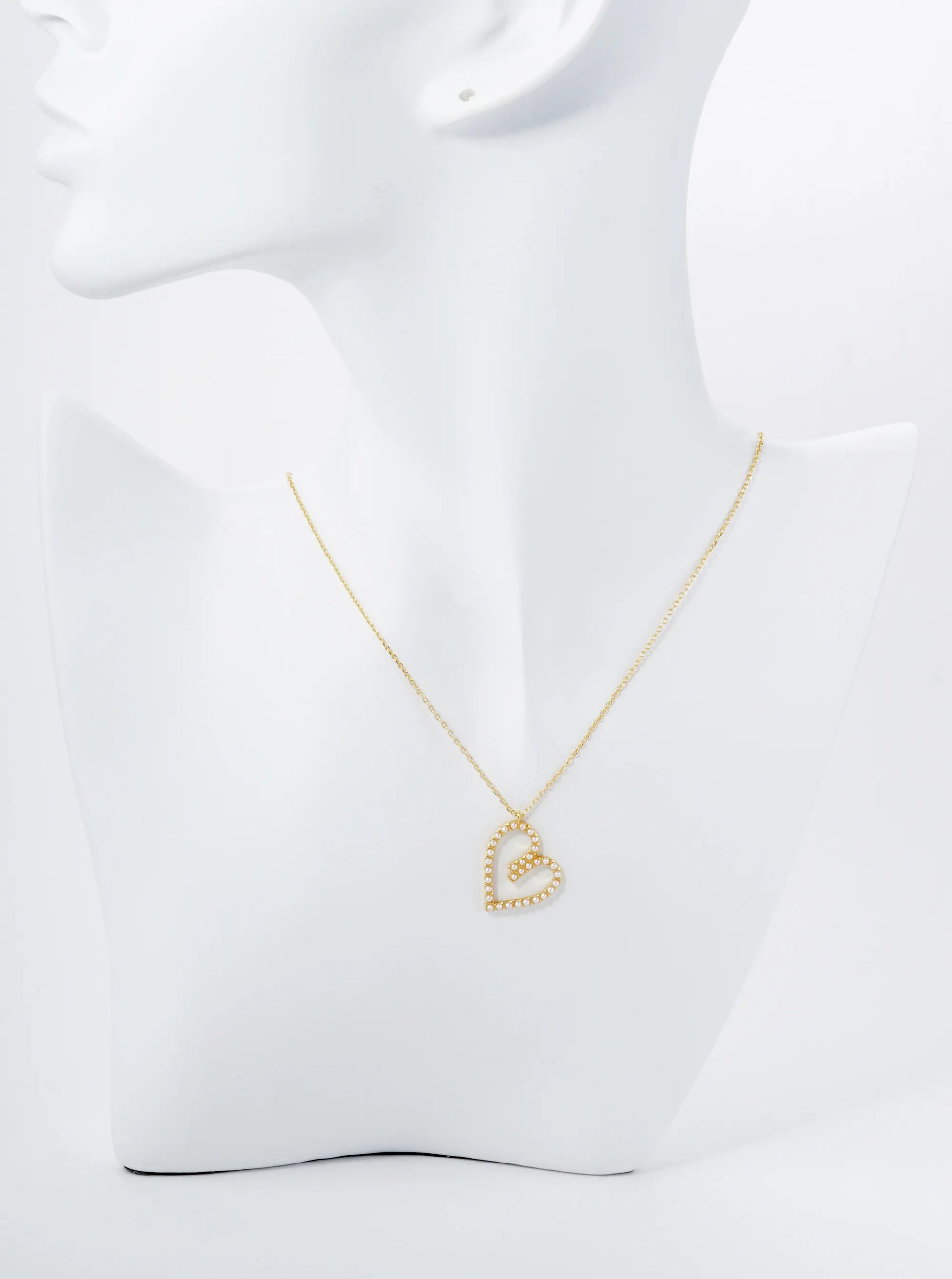 18K Gold Dipped Pave Set Cubic Zirconia Heart Pendant Necklace