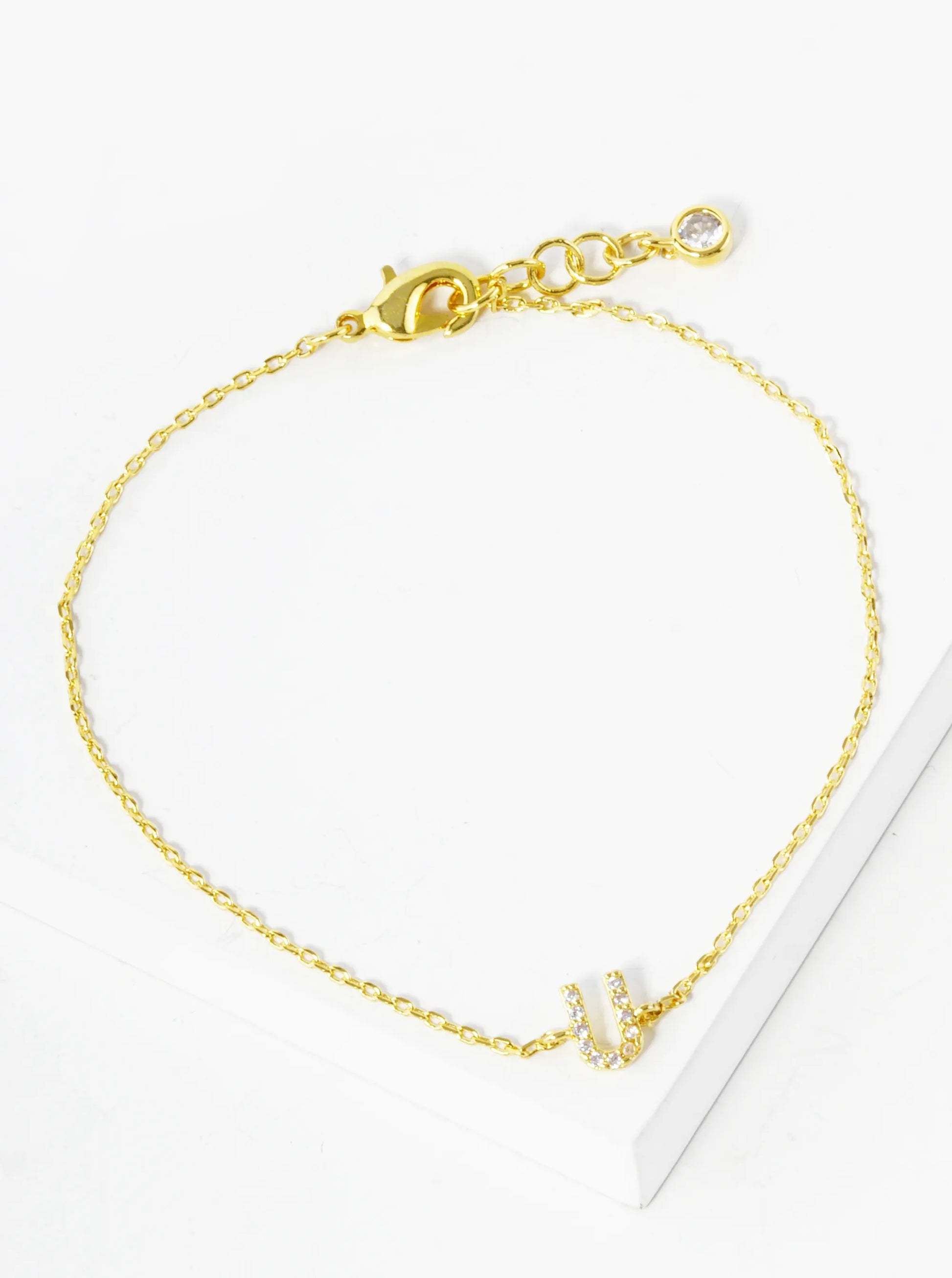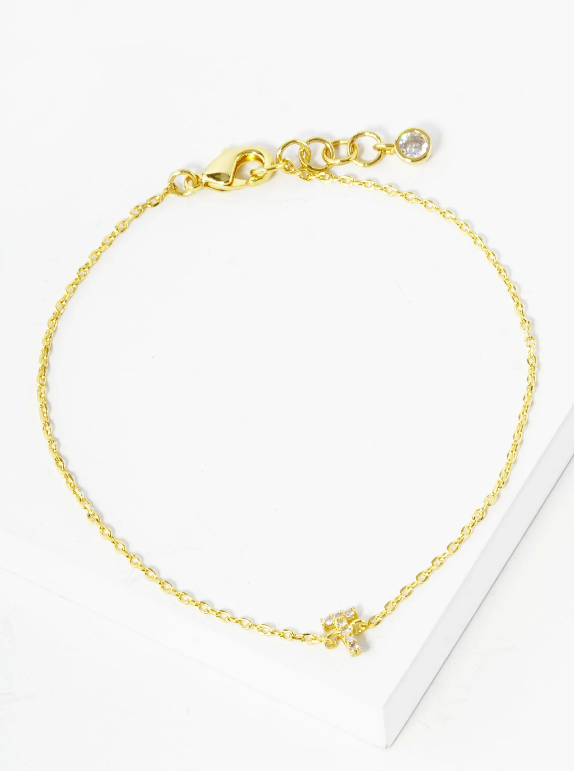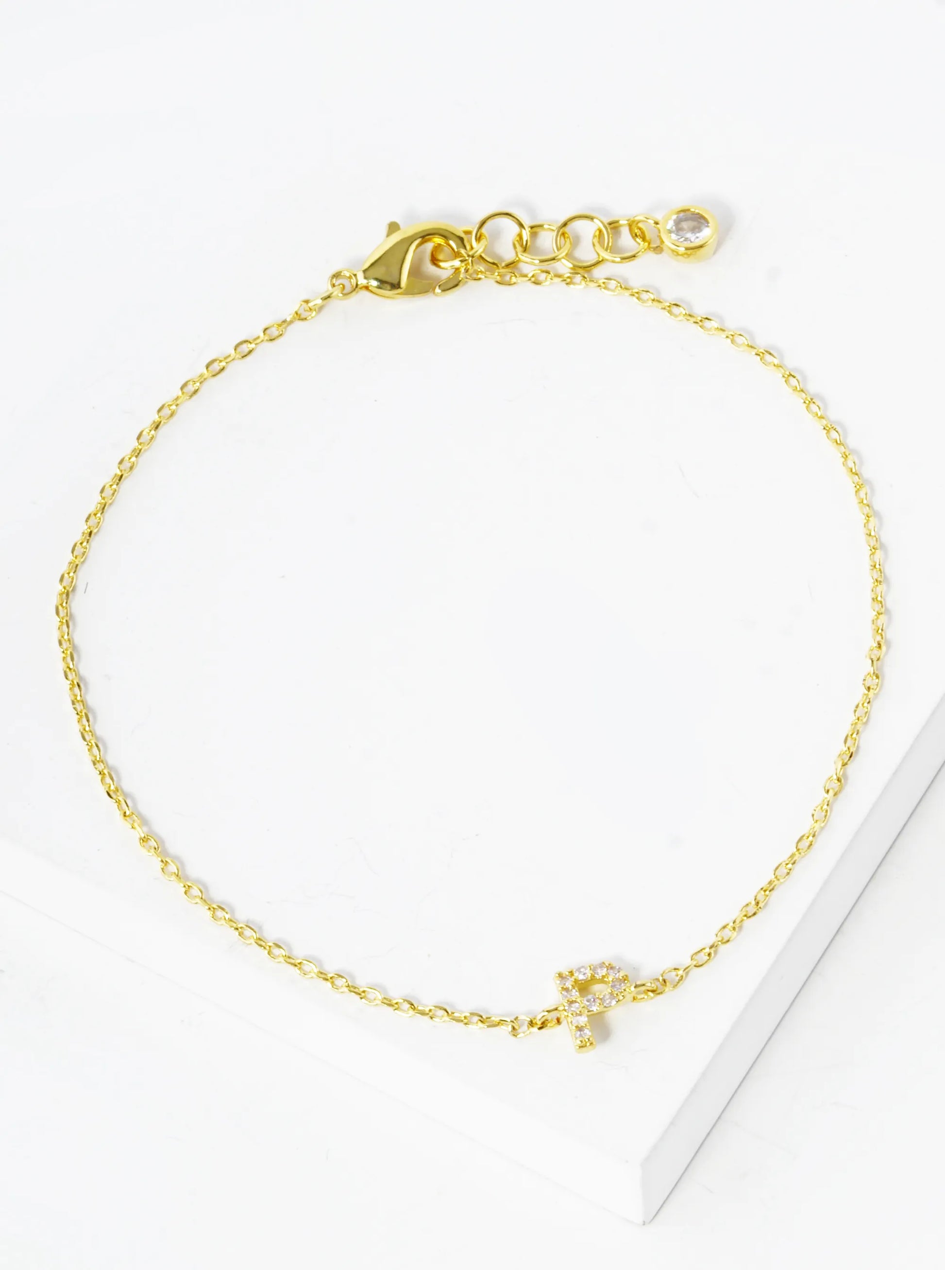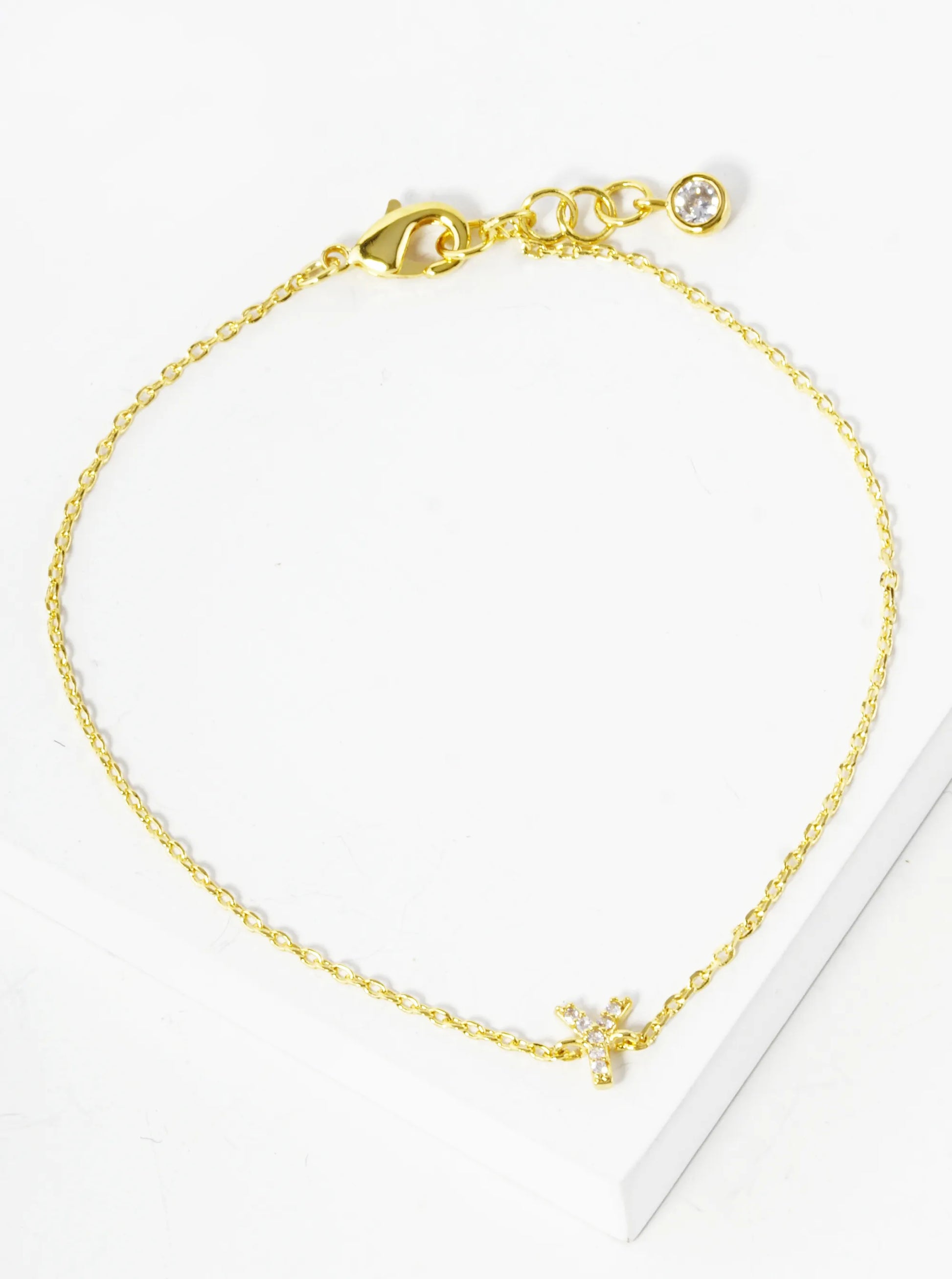 18K Gold Dipped Pave Set Cubic Zirconia Initial Bracelet
