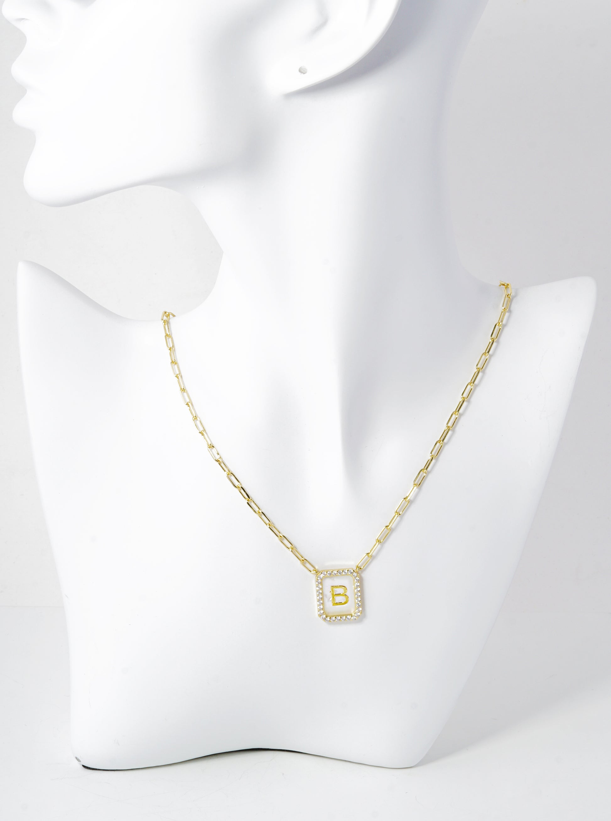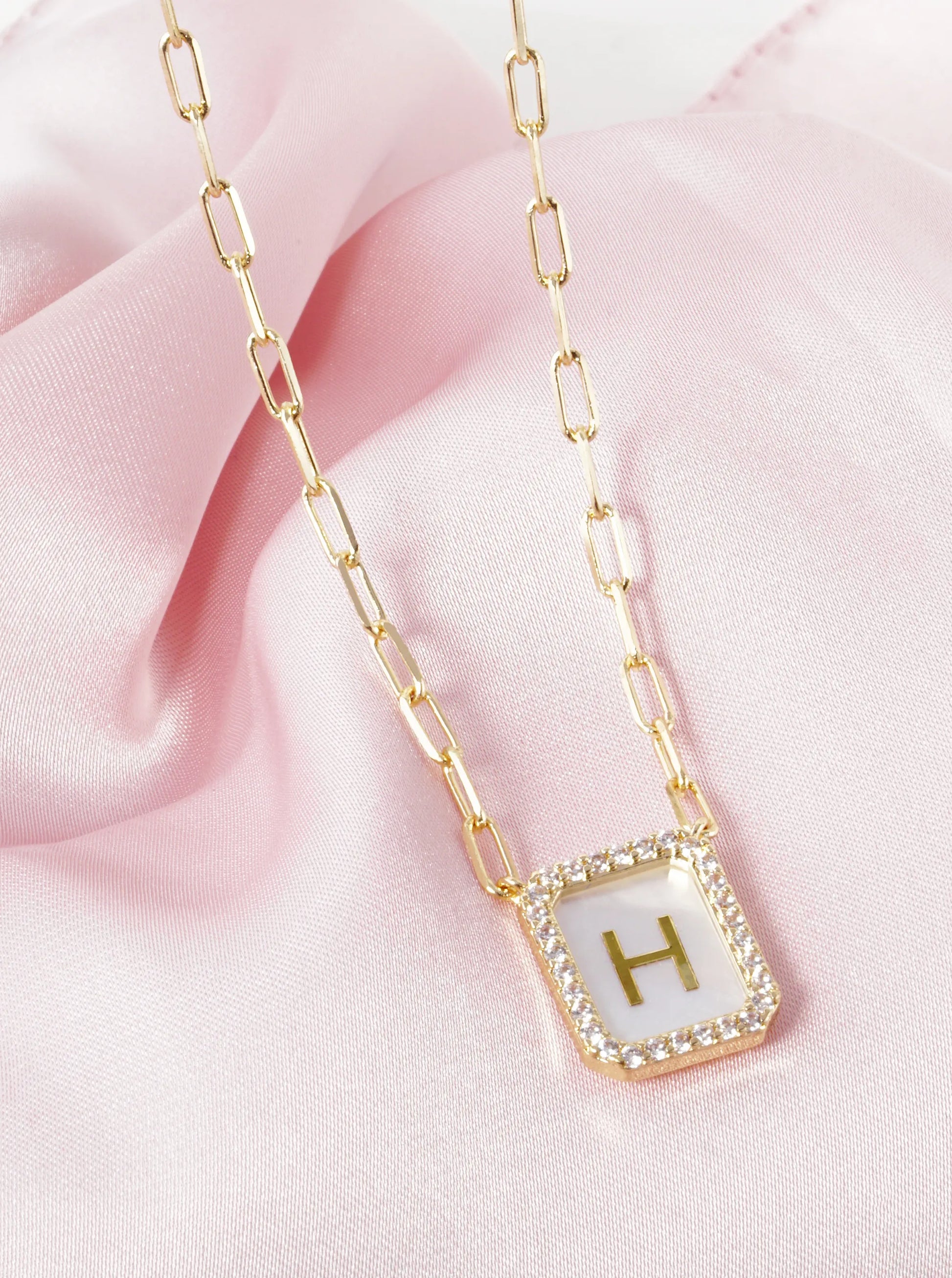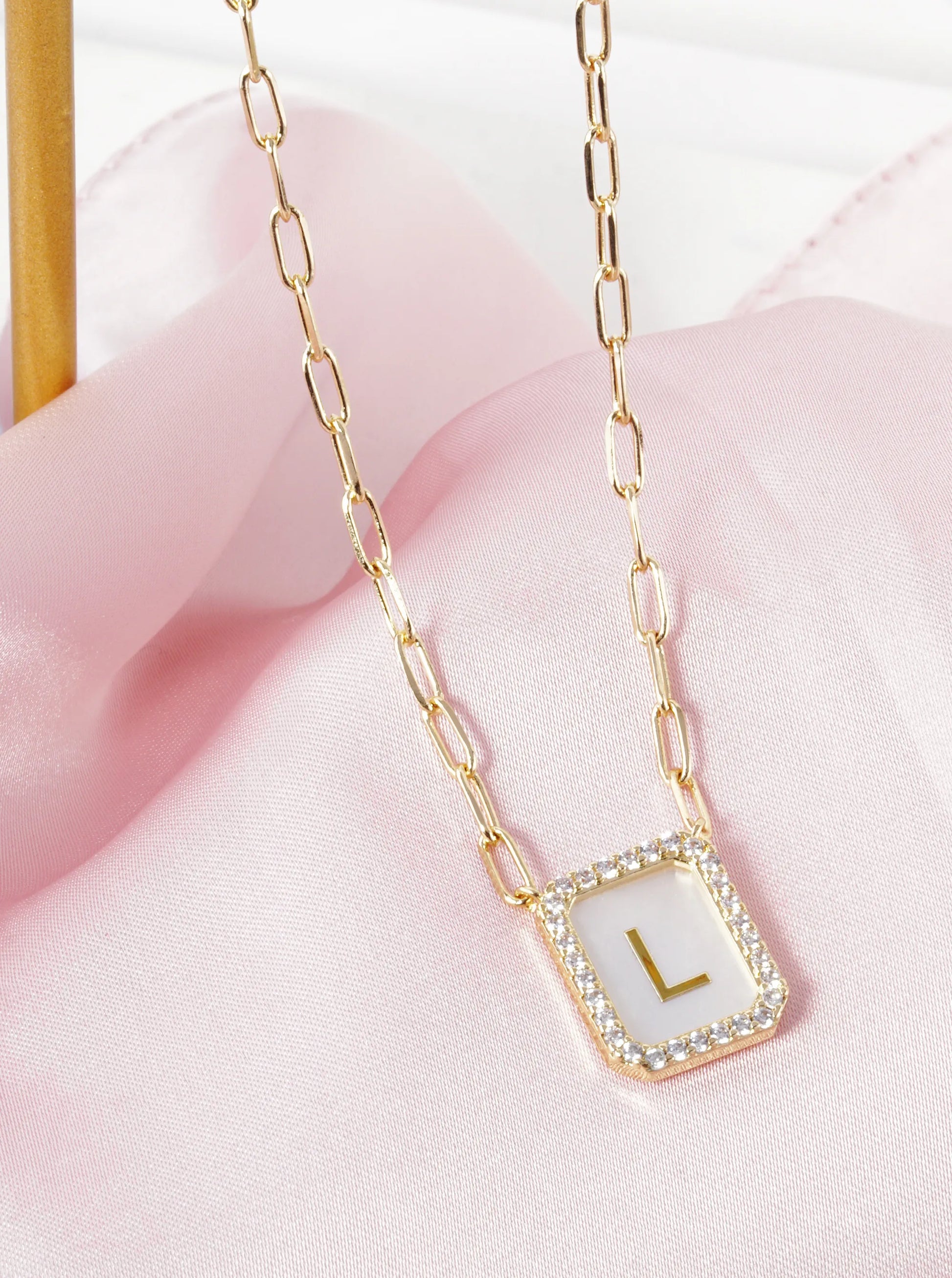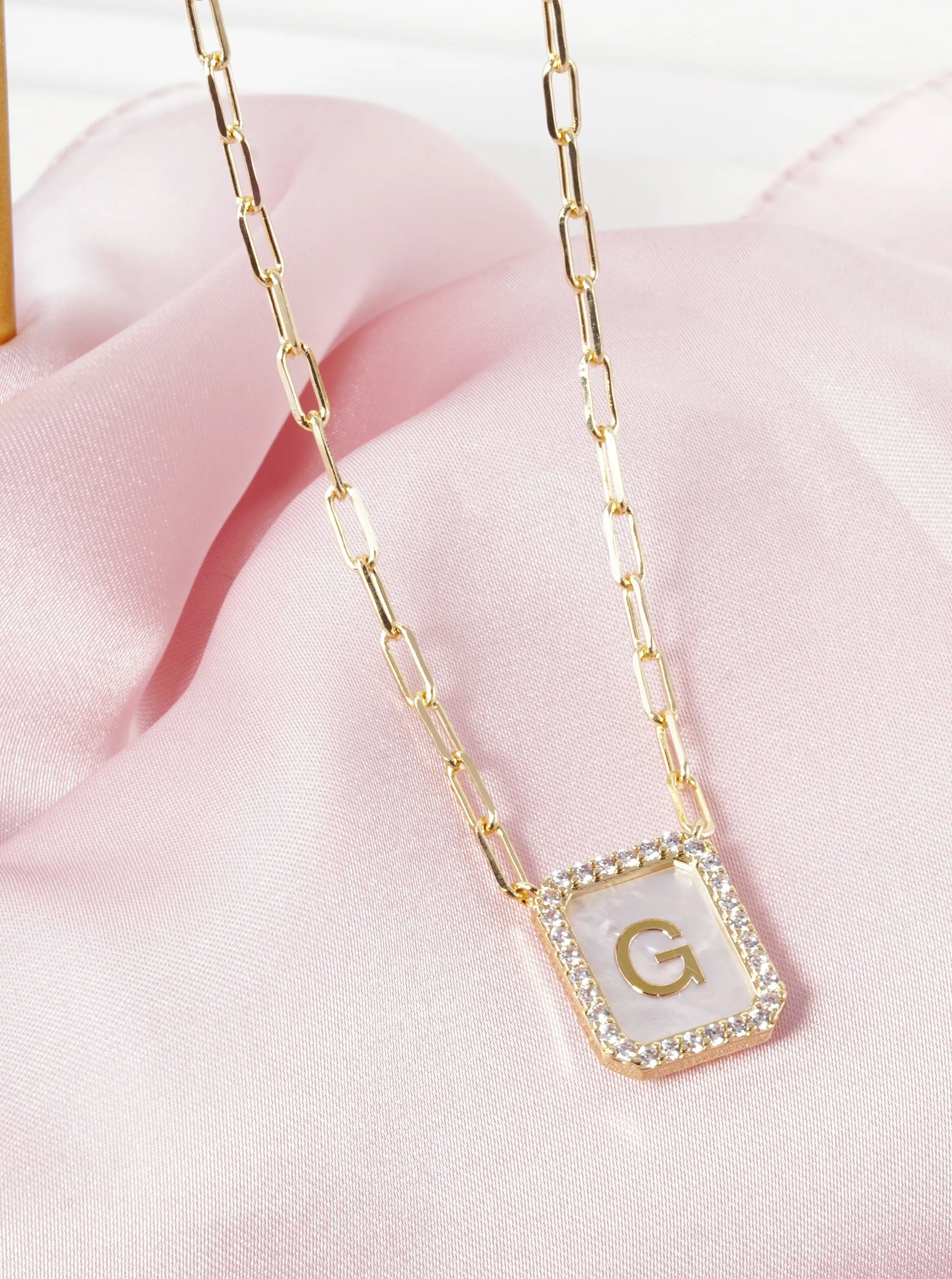 18K Gold Dipped Pave Set Cubic Zirconia Mother Of Pearl Initial Pendant Necklace