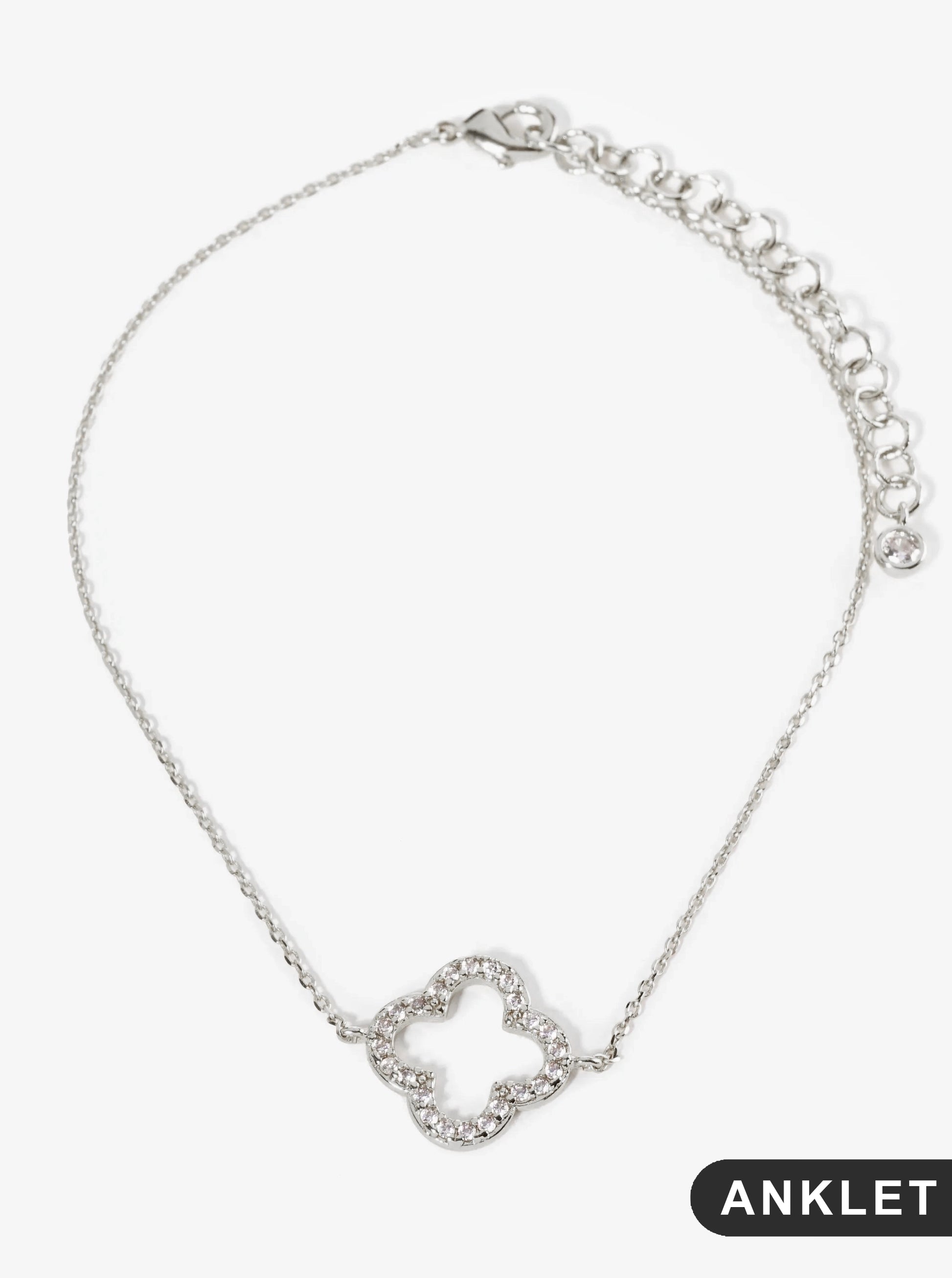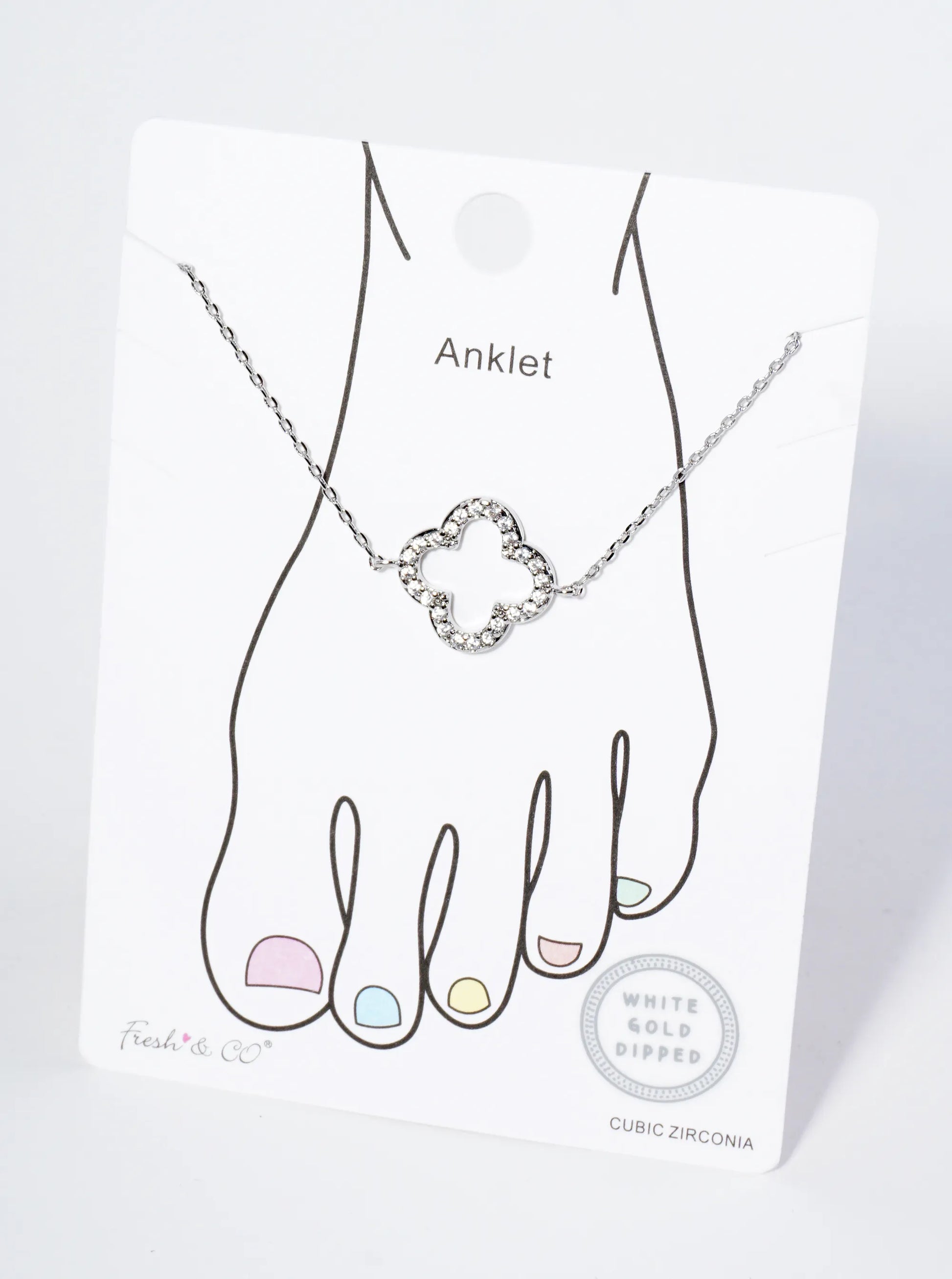 18K Gold Dipped Pave Set Cubic Zirconia Quatrefoil Chain Anklet