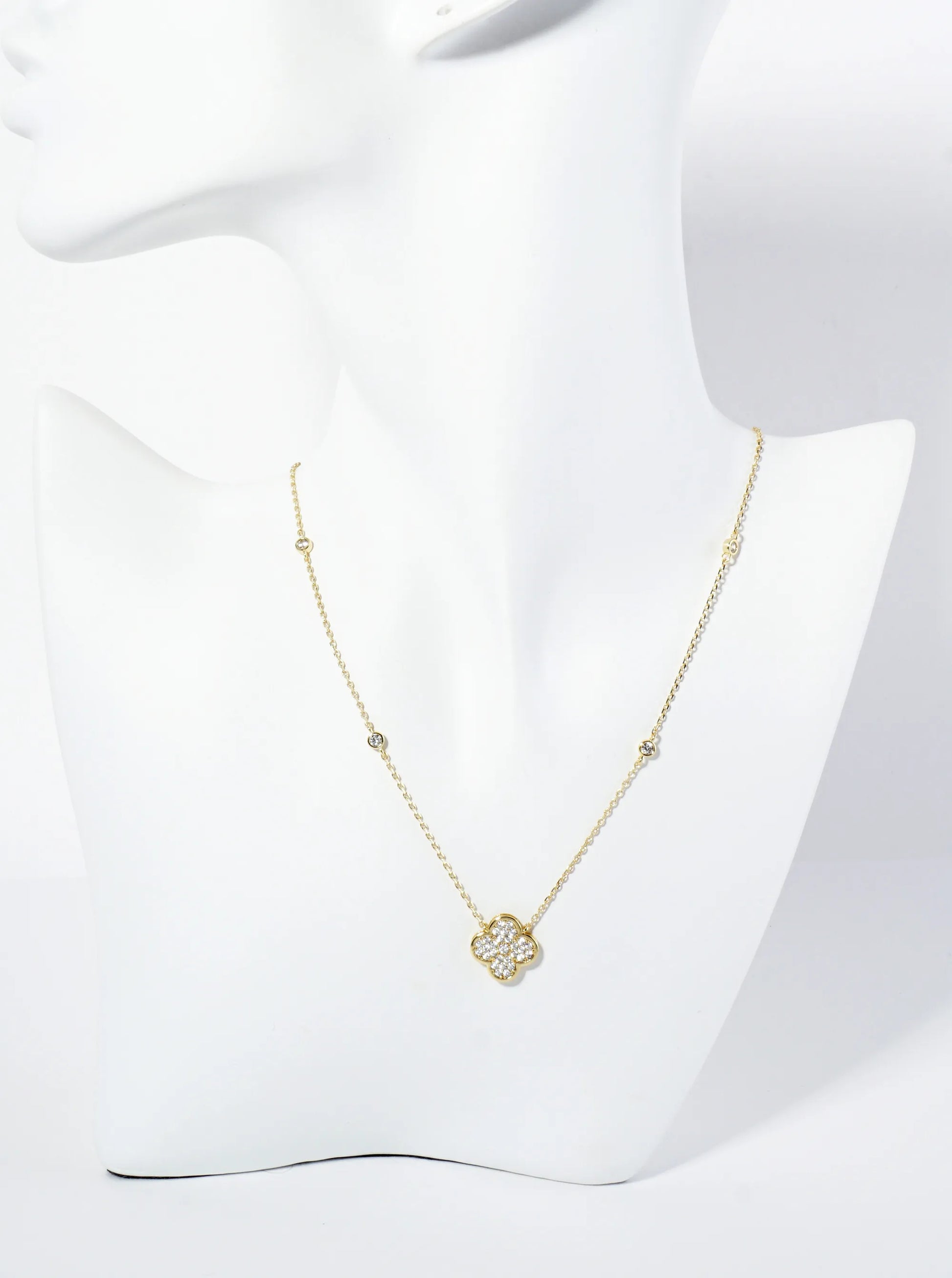 18K Gold Dipped Pave Set Cubic Zirconia Quatrefoil Pendant Necklace