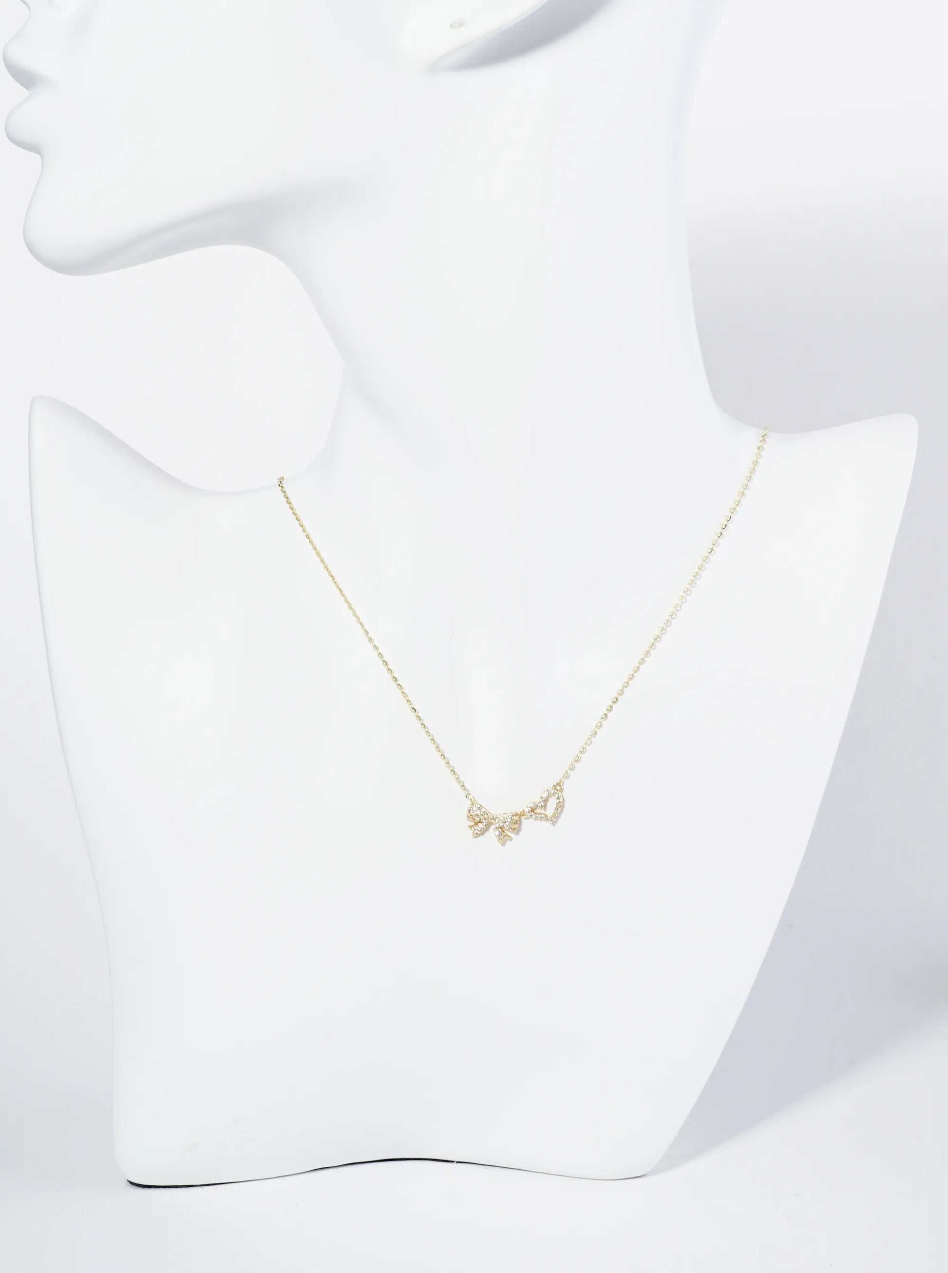 18K Gold Dipped Pave Set Cubic Zirconia Ribbon Heart Pendant Necklace