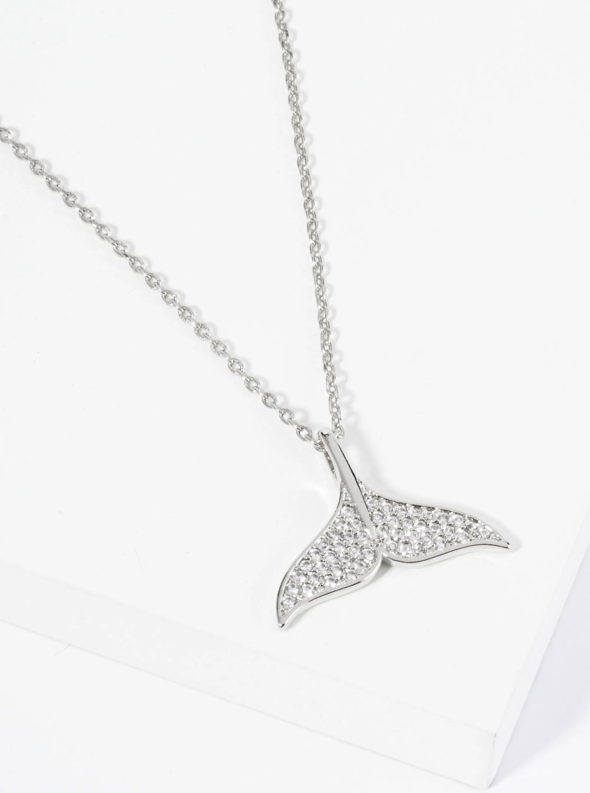 18K Gold Dipped Pave Set Cubic Zirconia Whale Tail Pendant Necklace
