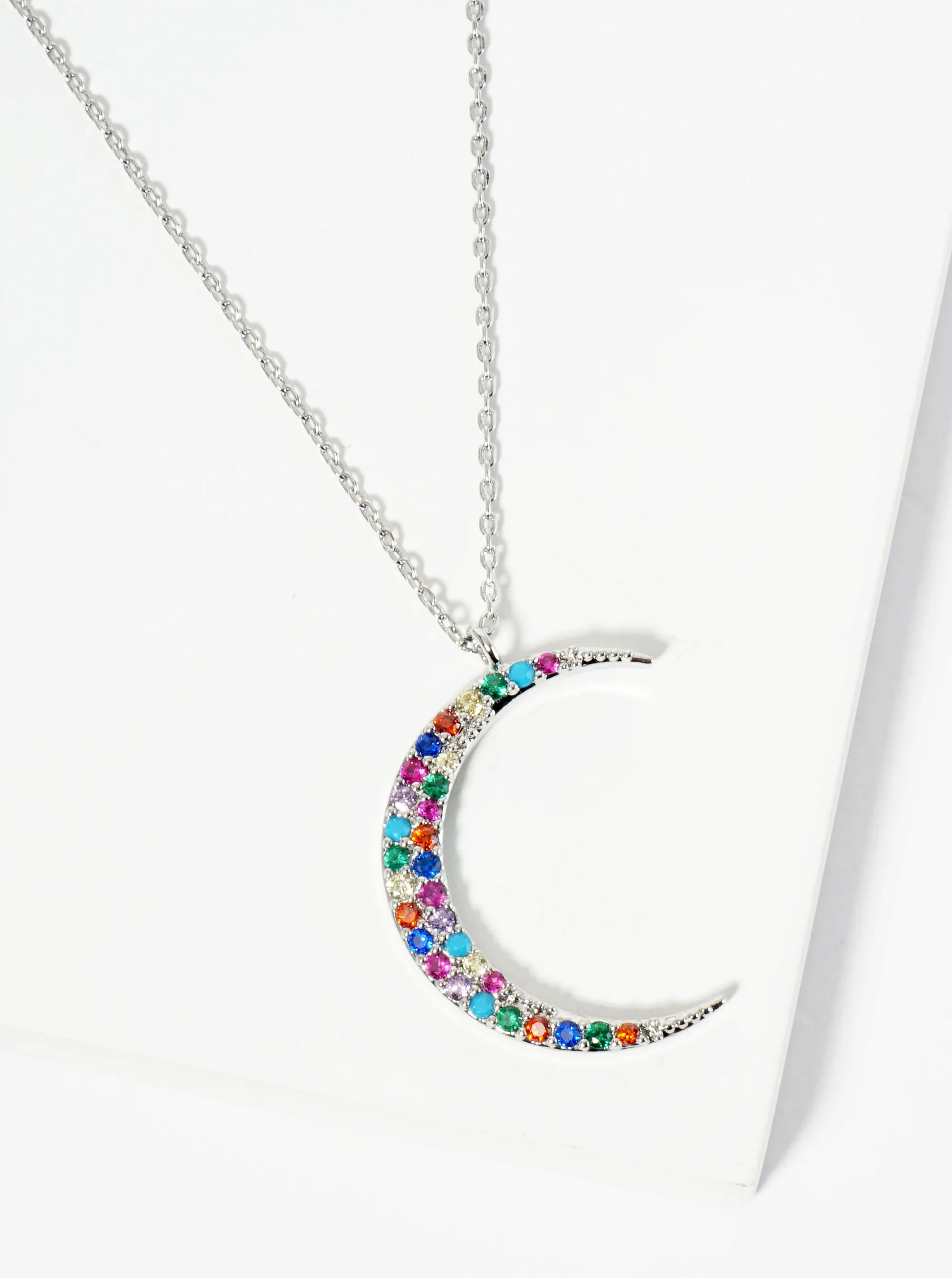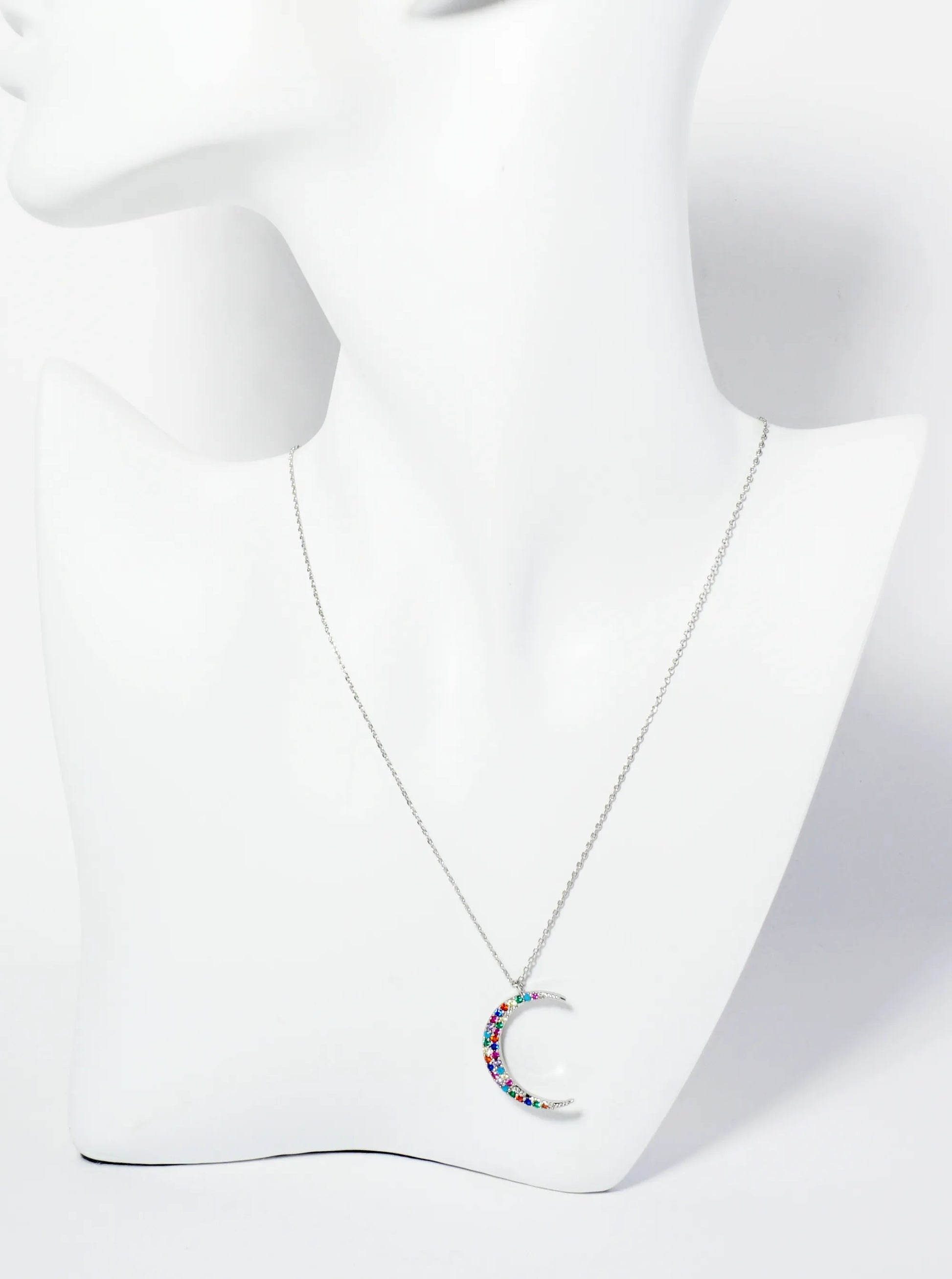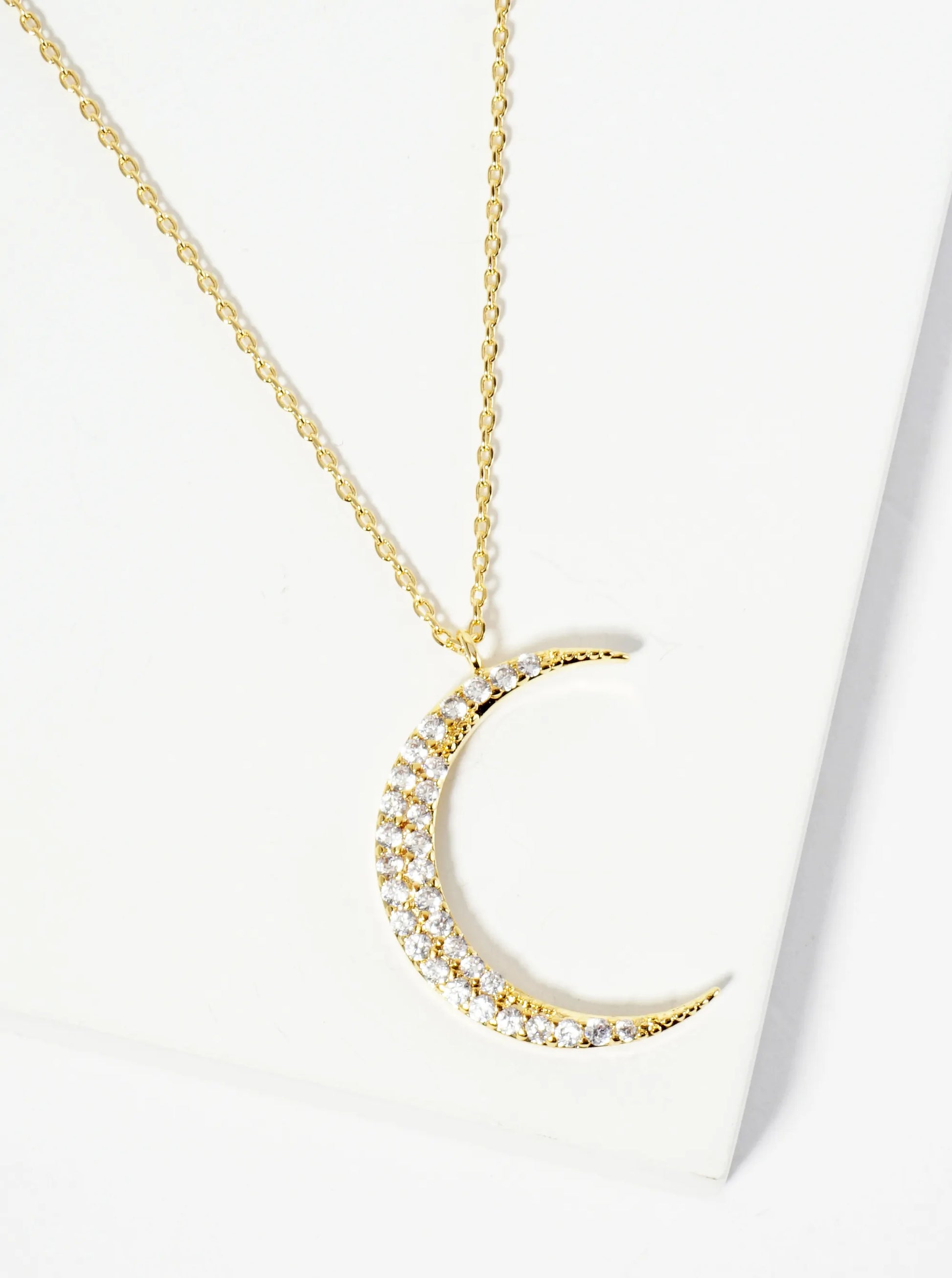 18K Gold Dipped Pave Set CZ 1 Inch Crescent Moon Pendant Necklace