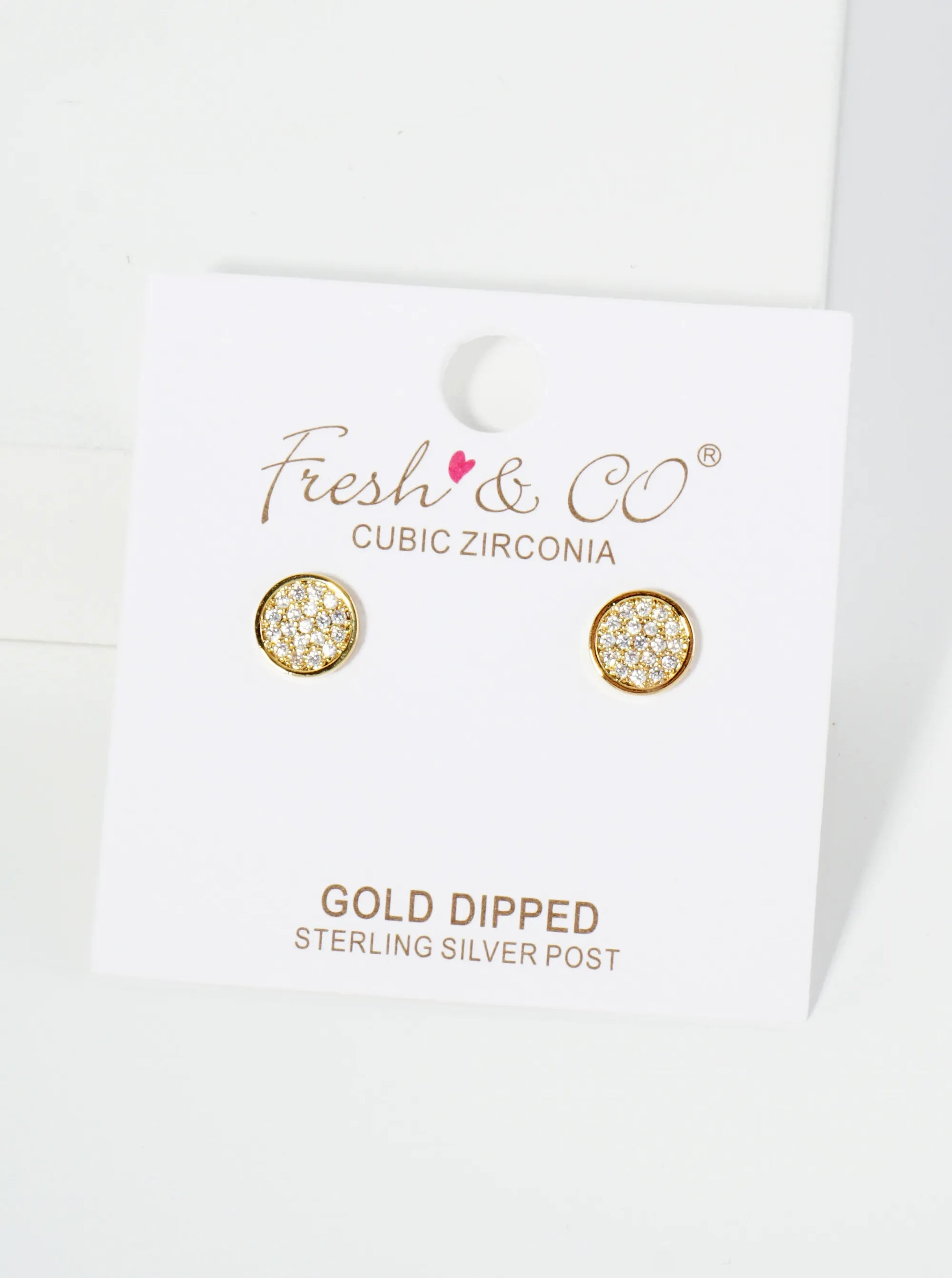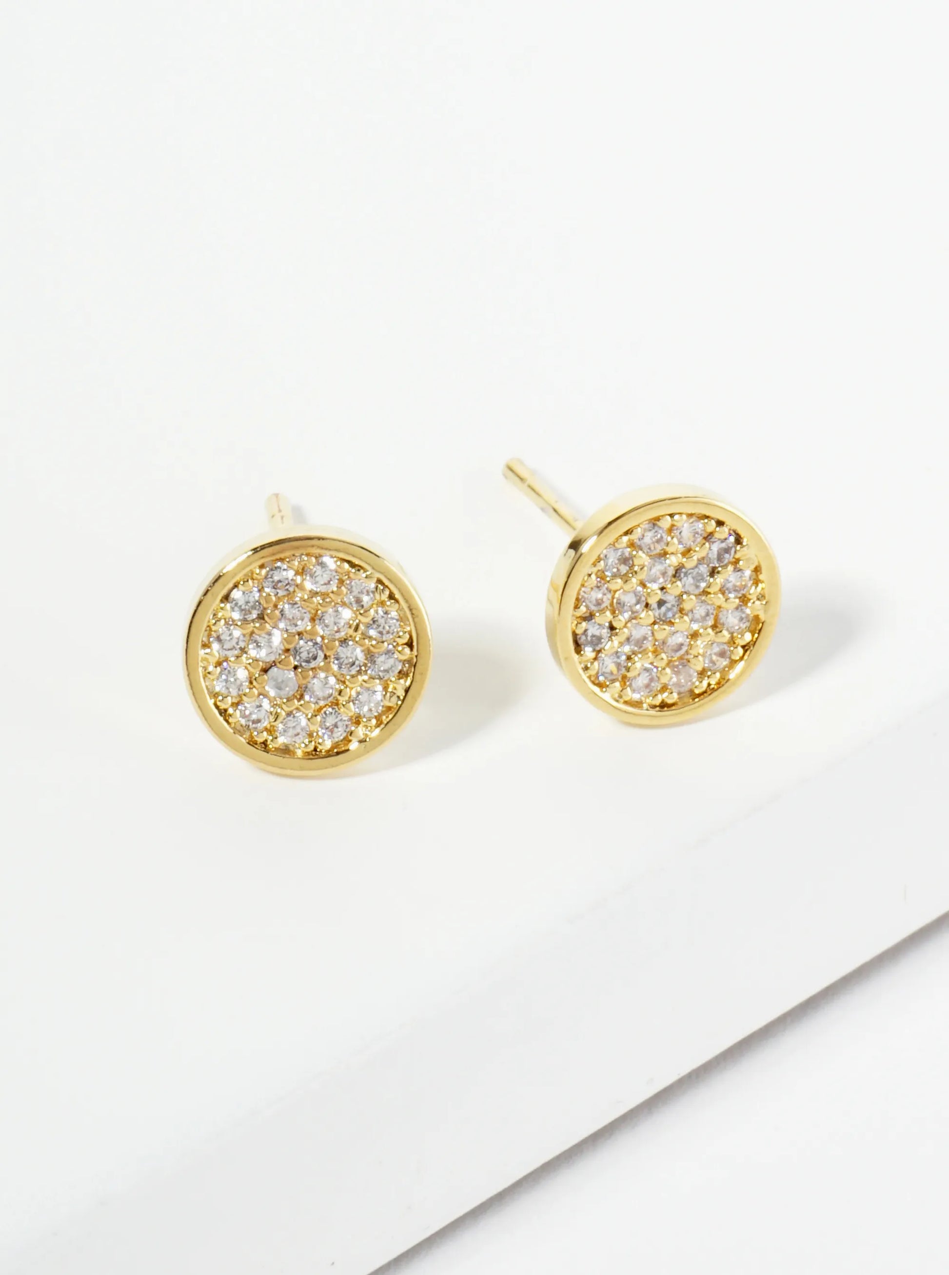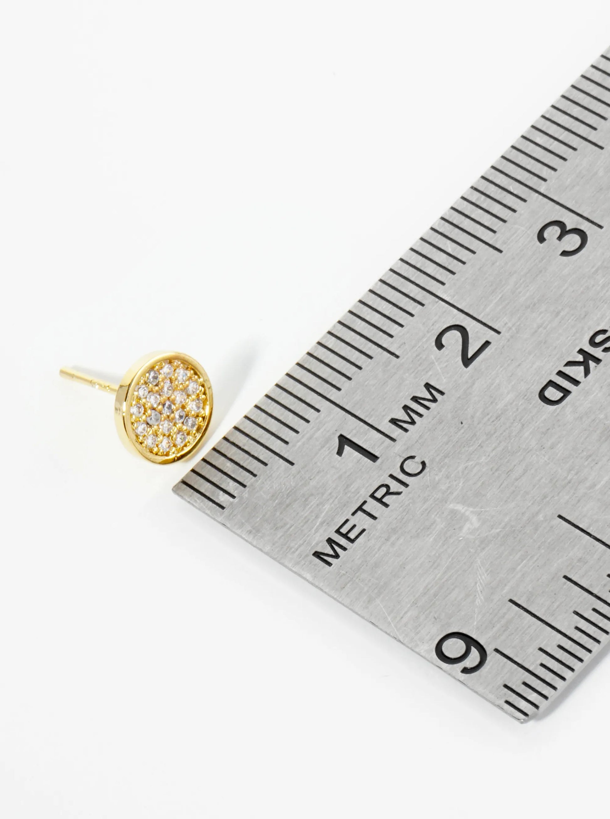 18K Gold Dipped Pave Set CZ 7mm Round Stud Earrings