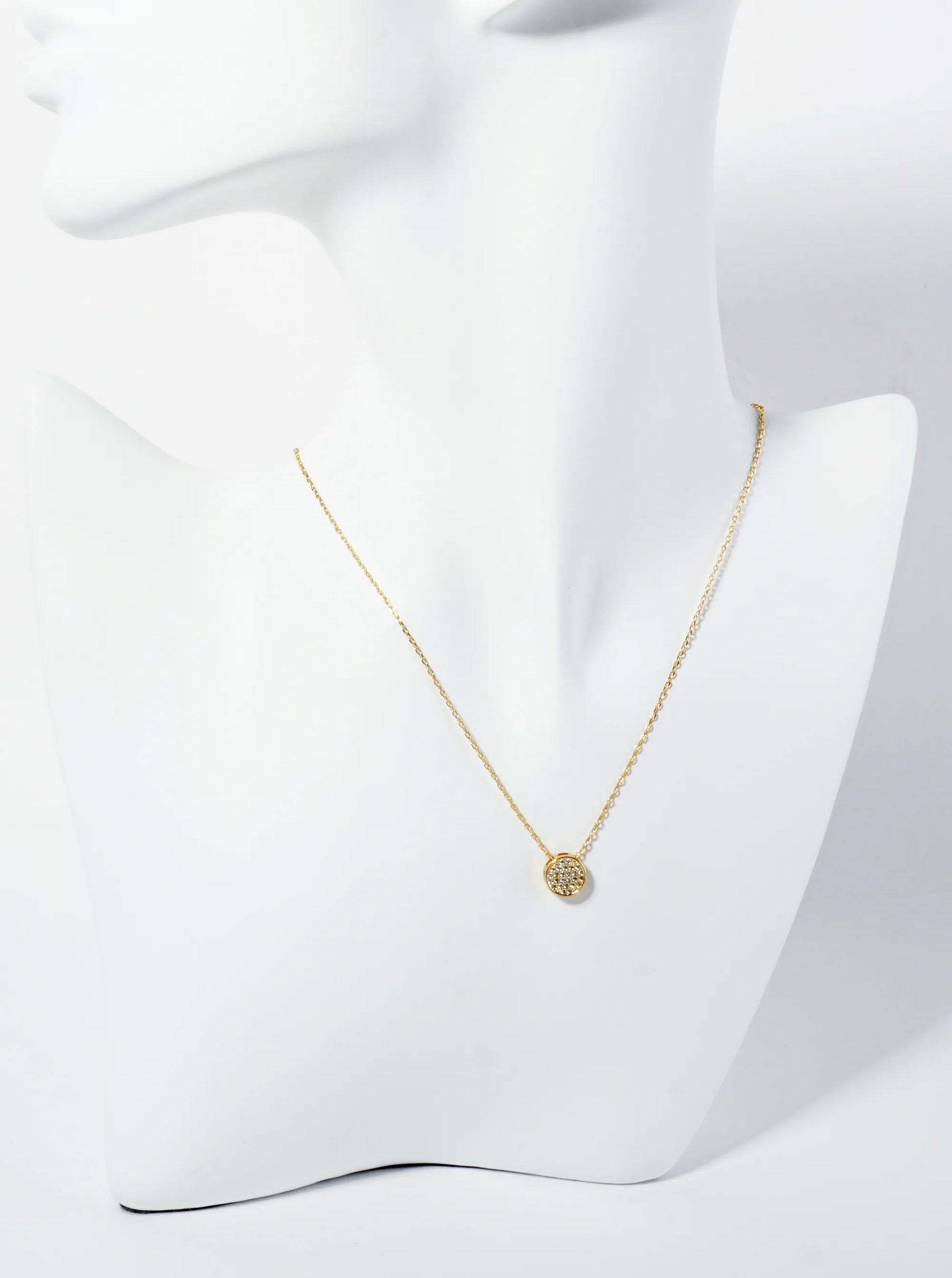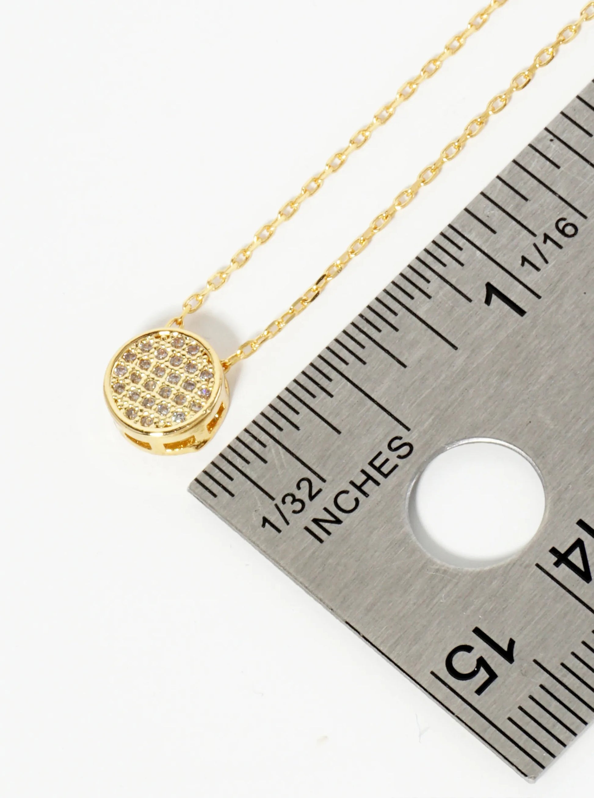 18K Gold Dipped Pave Set CZ 8mm Round Pendant Necklace