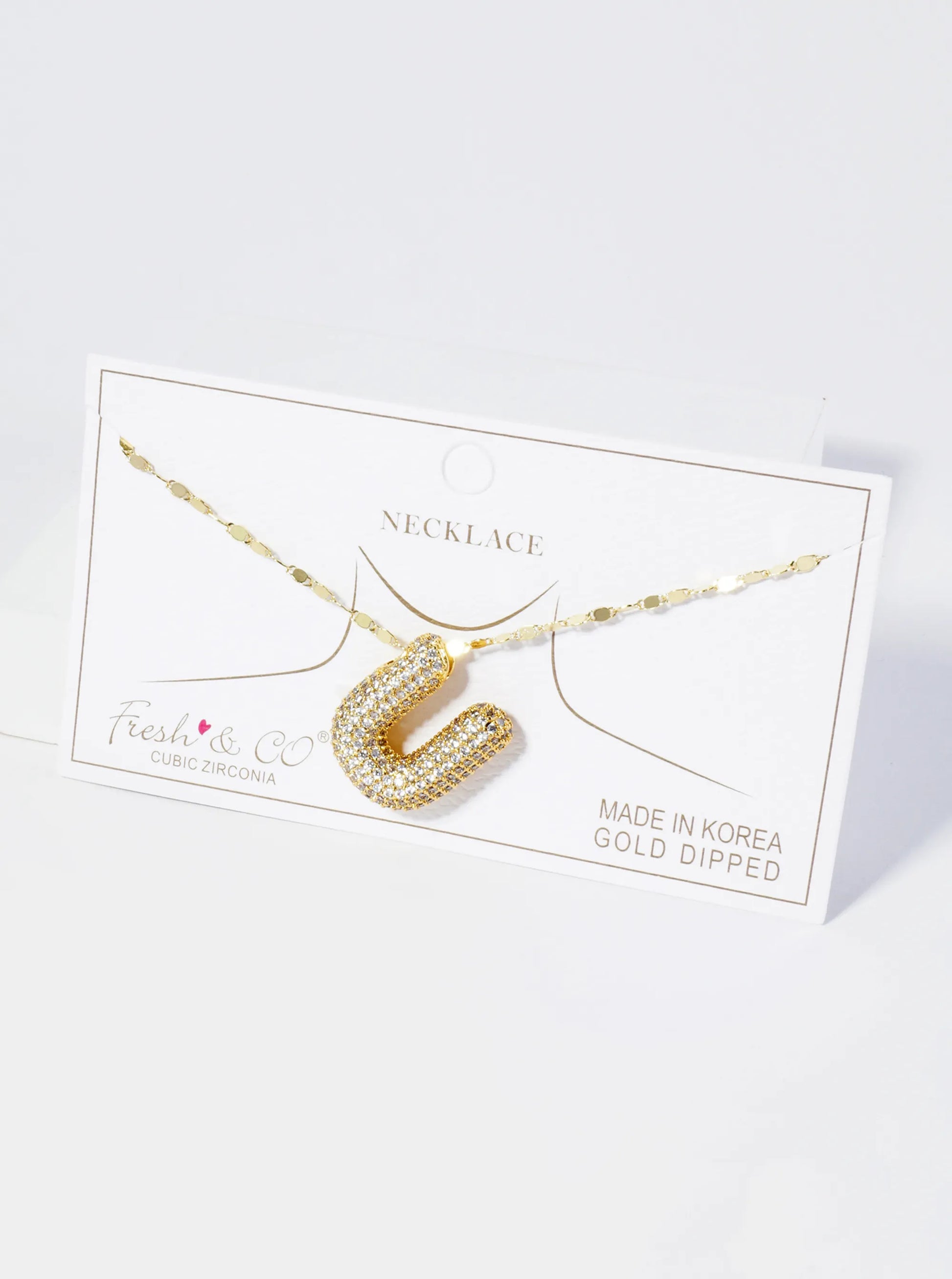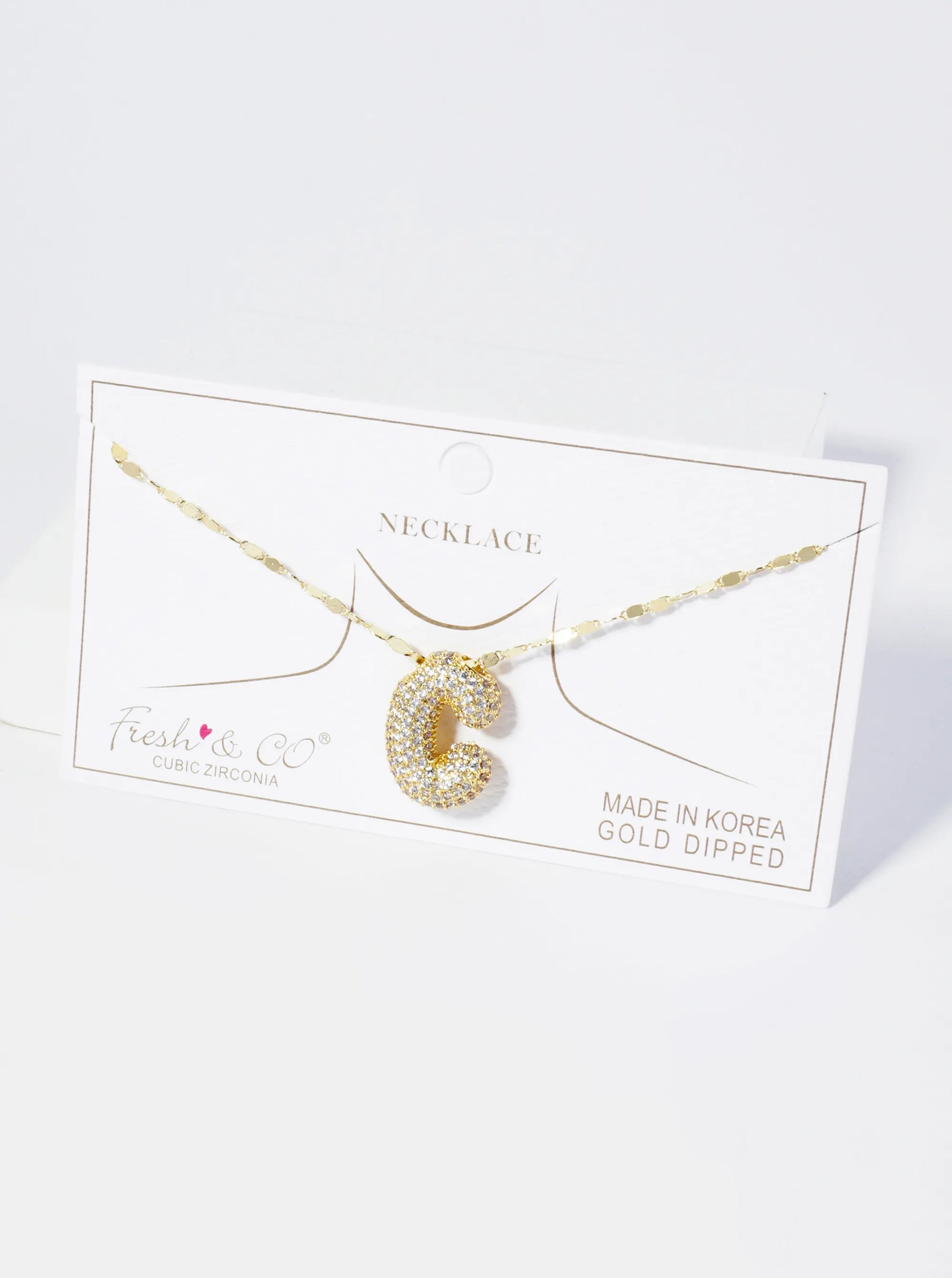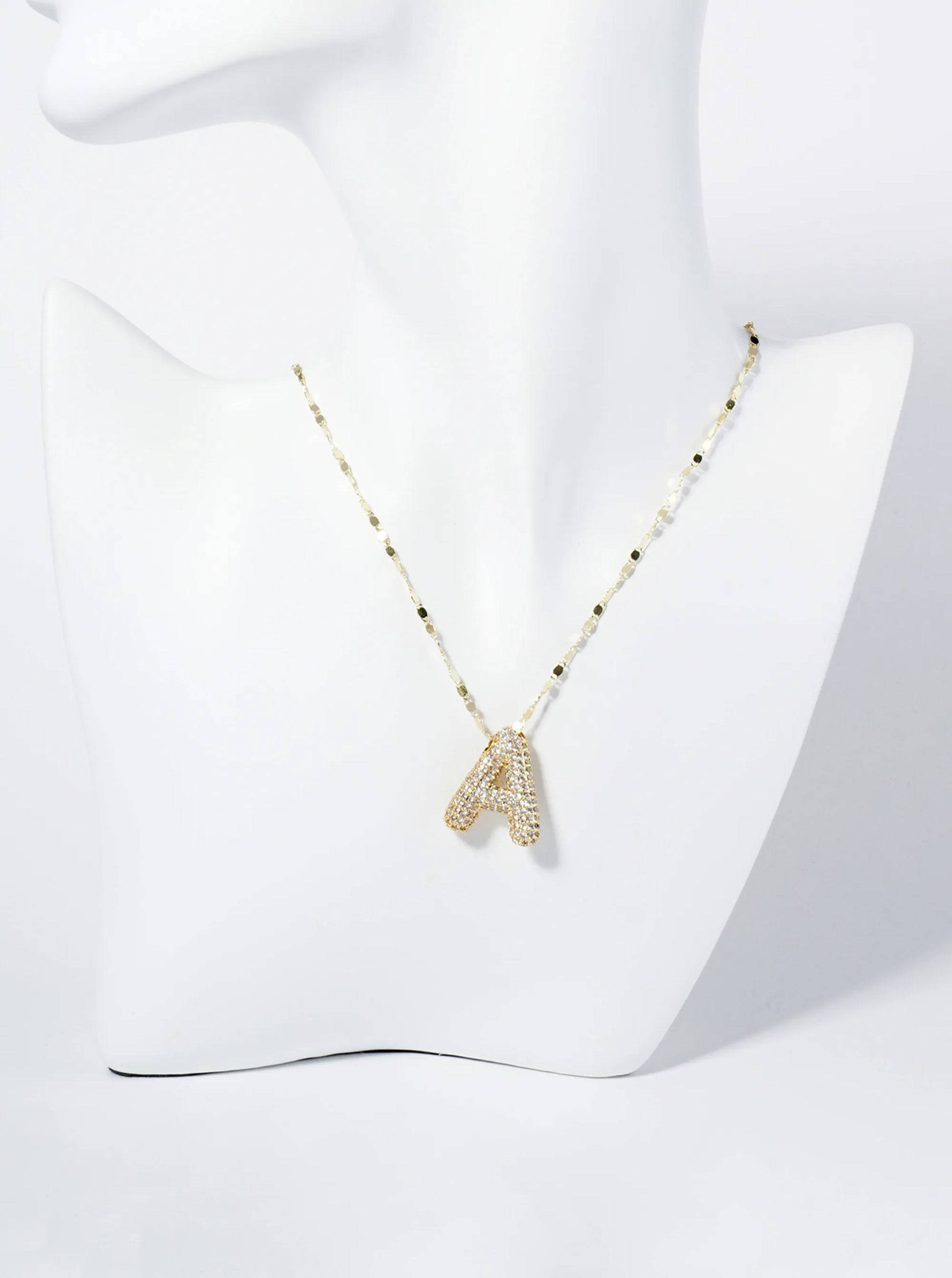 18K Gold Dipped Pave Set CZ Bubble Initial Pendant Necklace