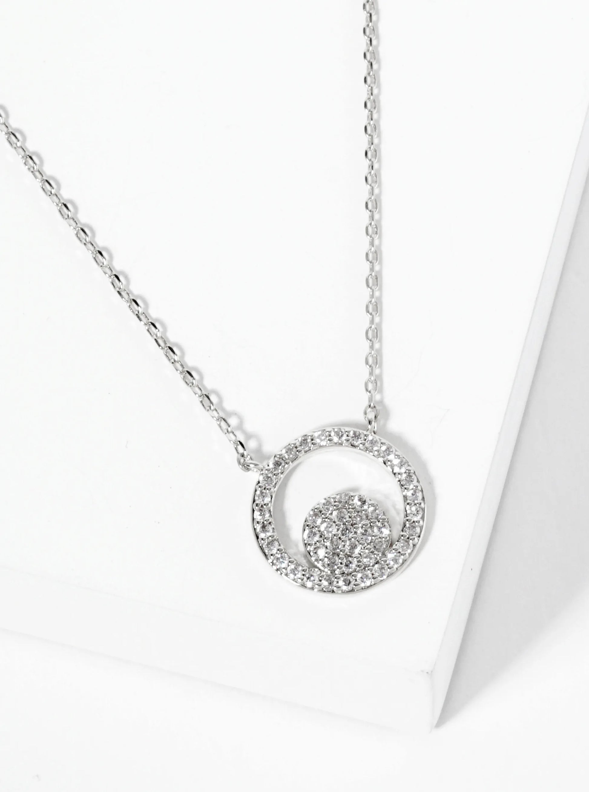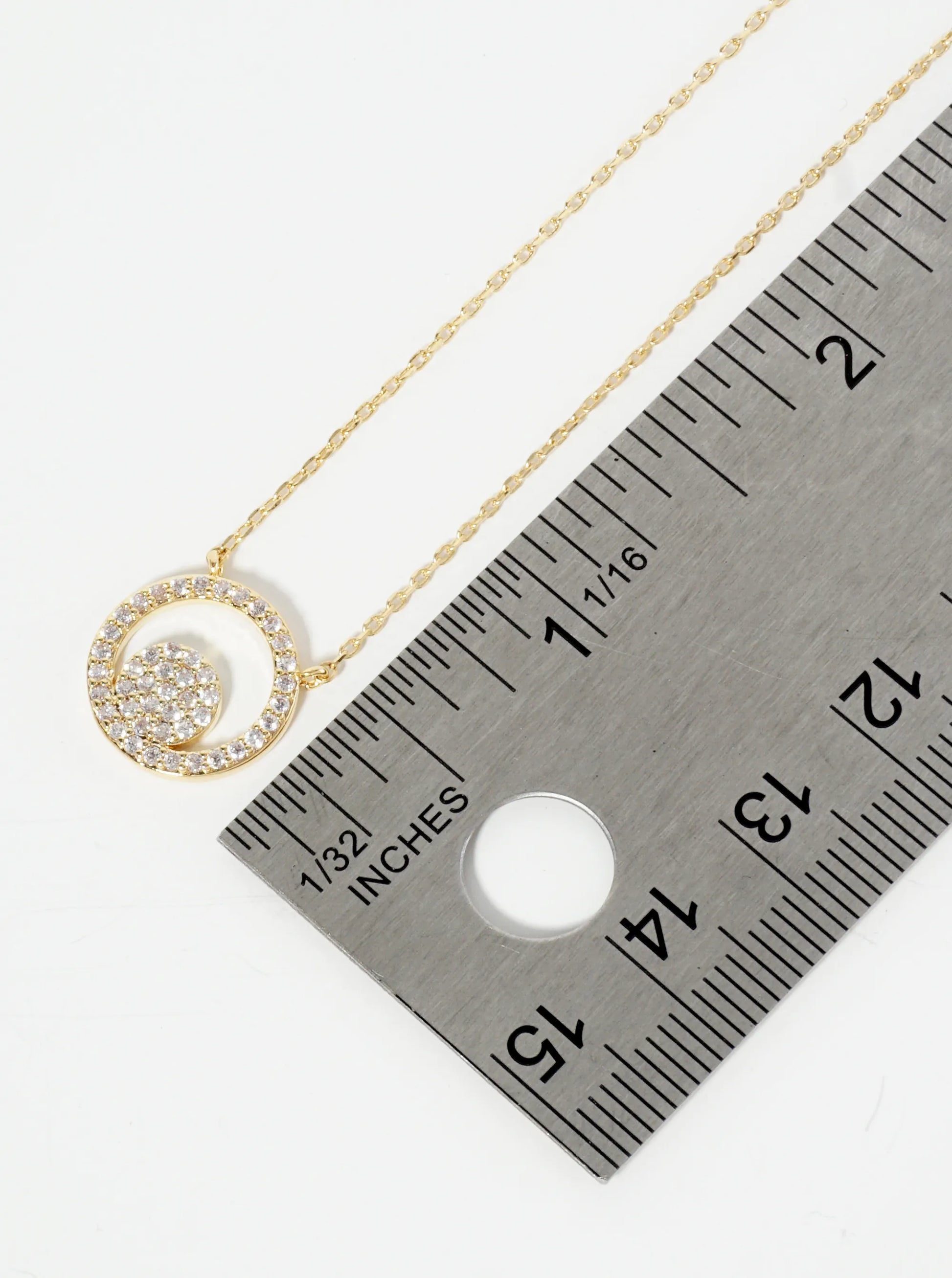 18K Gold Dipped Pave Set CZ Circle Inside Another Circle Pendant Necklace