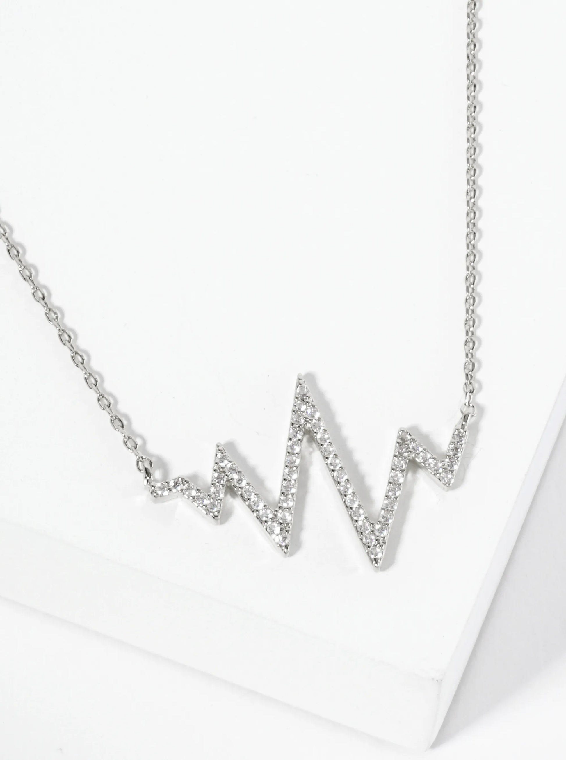 18K Gold Dipped Pave Set CZ Heartbeat Pendant Necklace