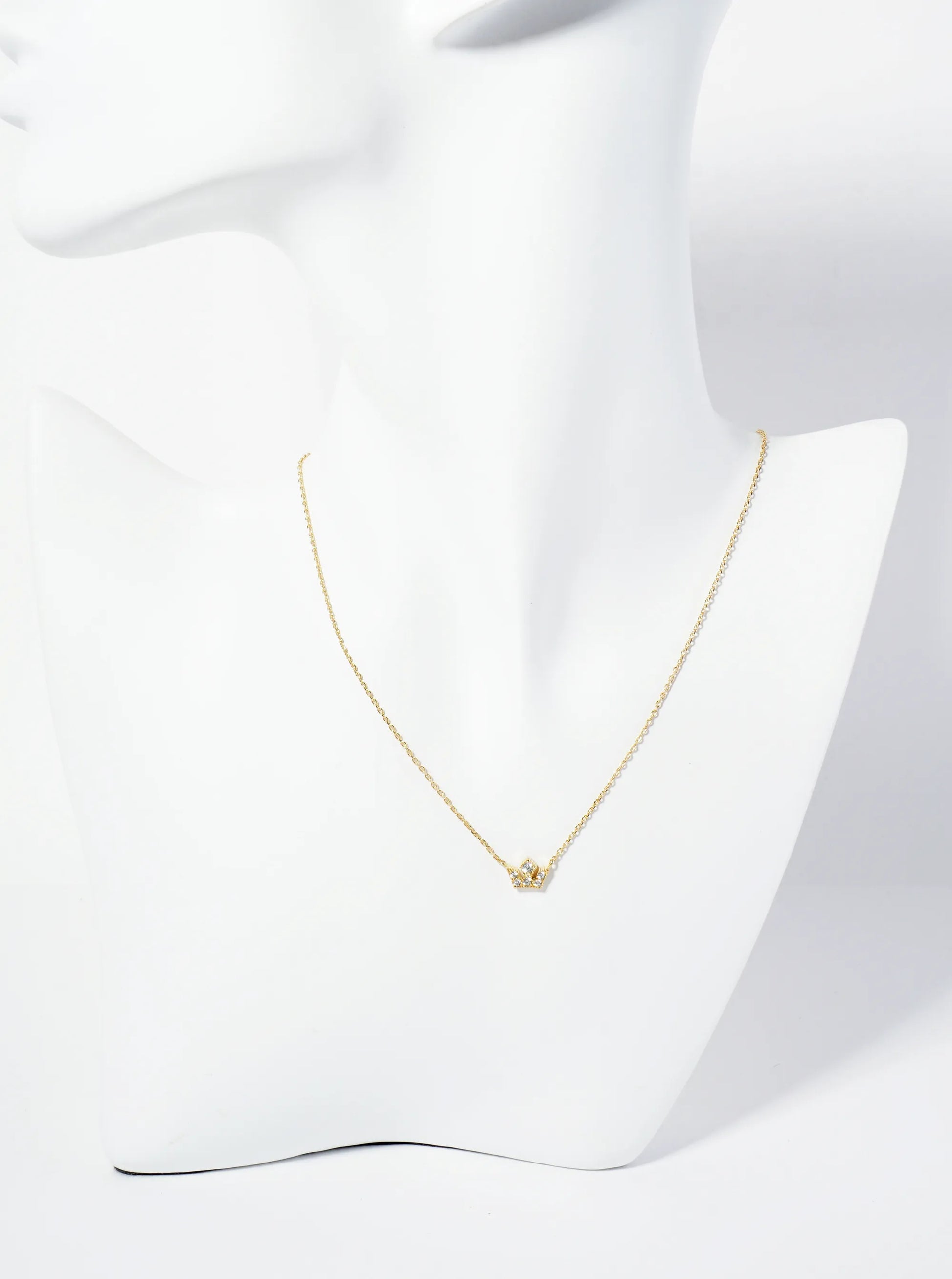 18K Gold Dipped Pave Set CZ Mini Crown Pendant Necklace