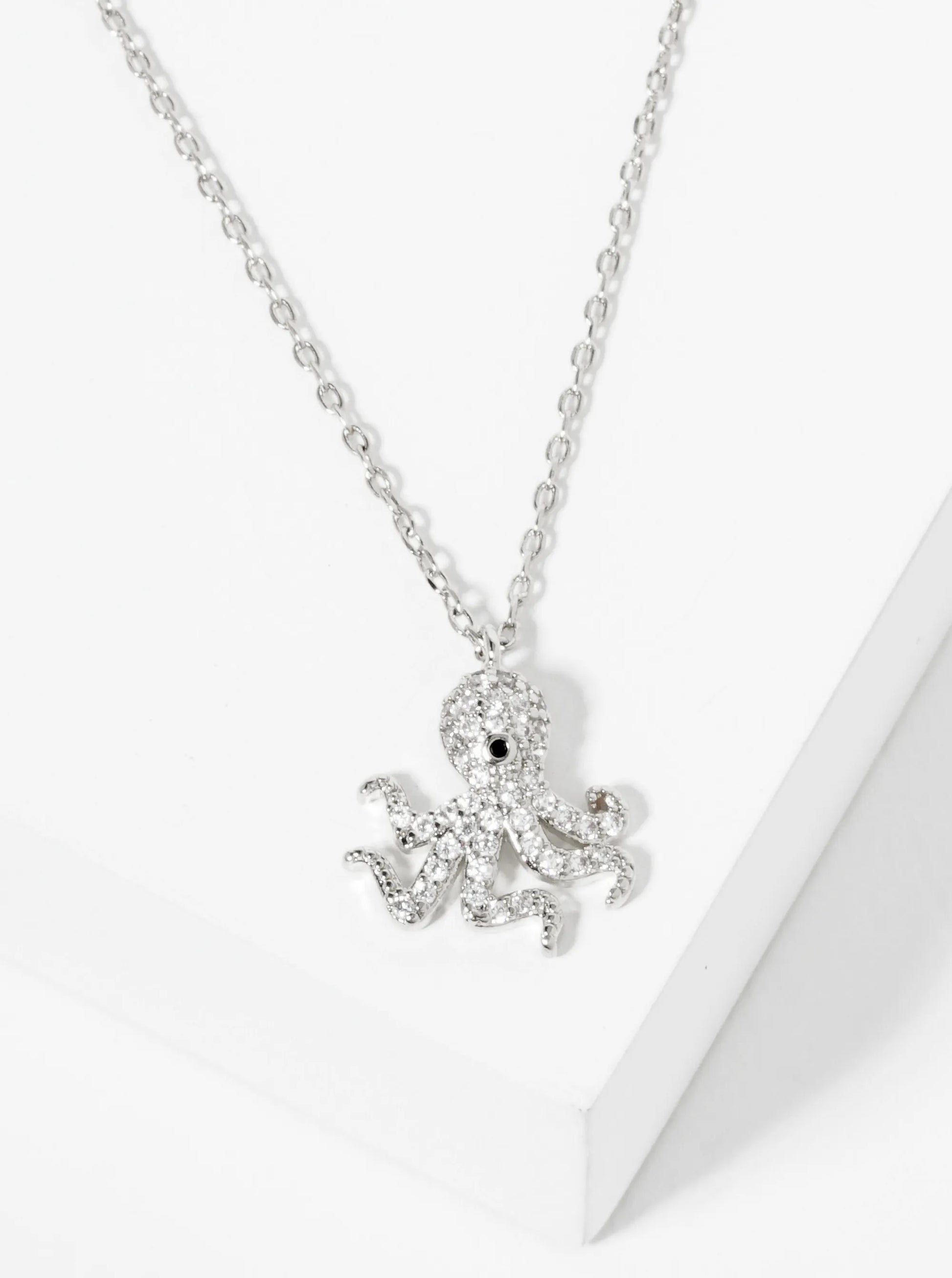 18K Gold Dipped Pave Set CZ Octopus Pendant Necklace