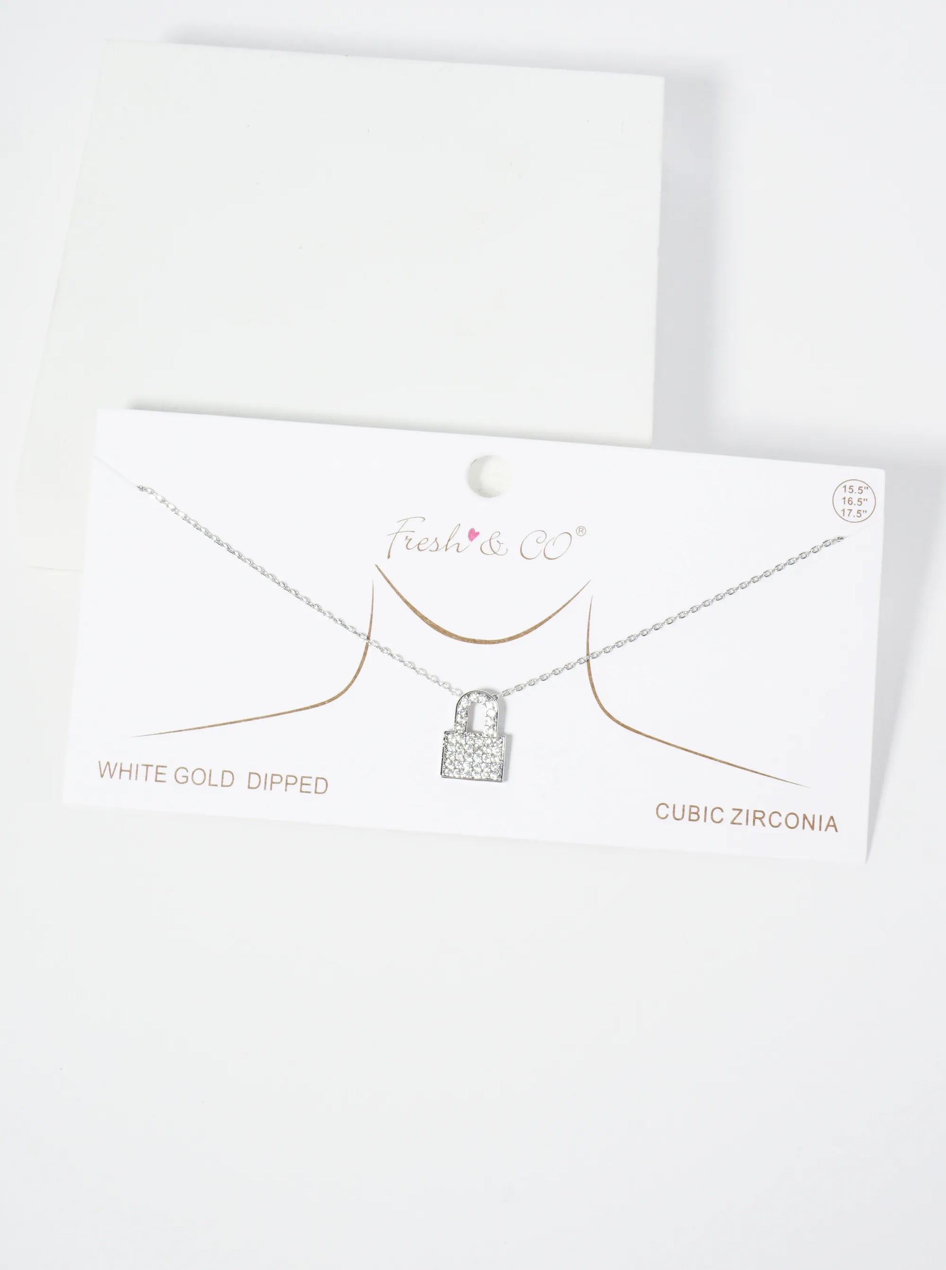 18K Gold Dipped Pave Set CZ Padlock Pendant Necklace