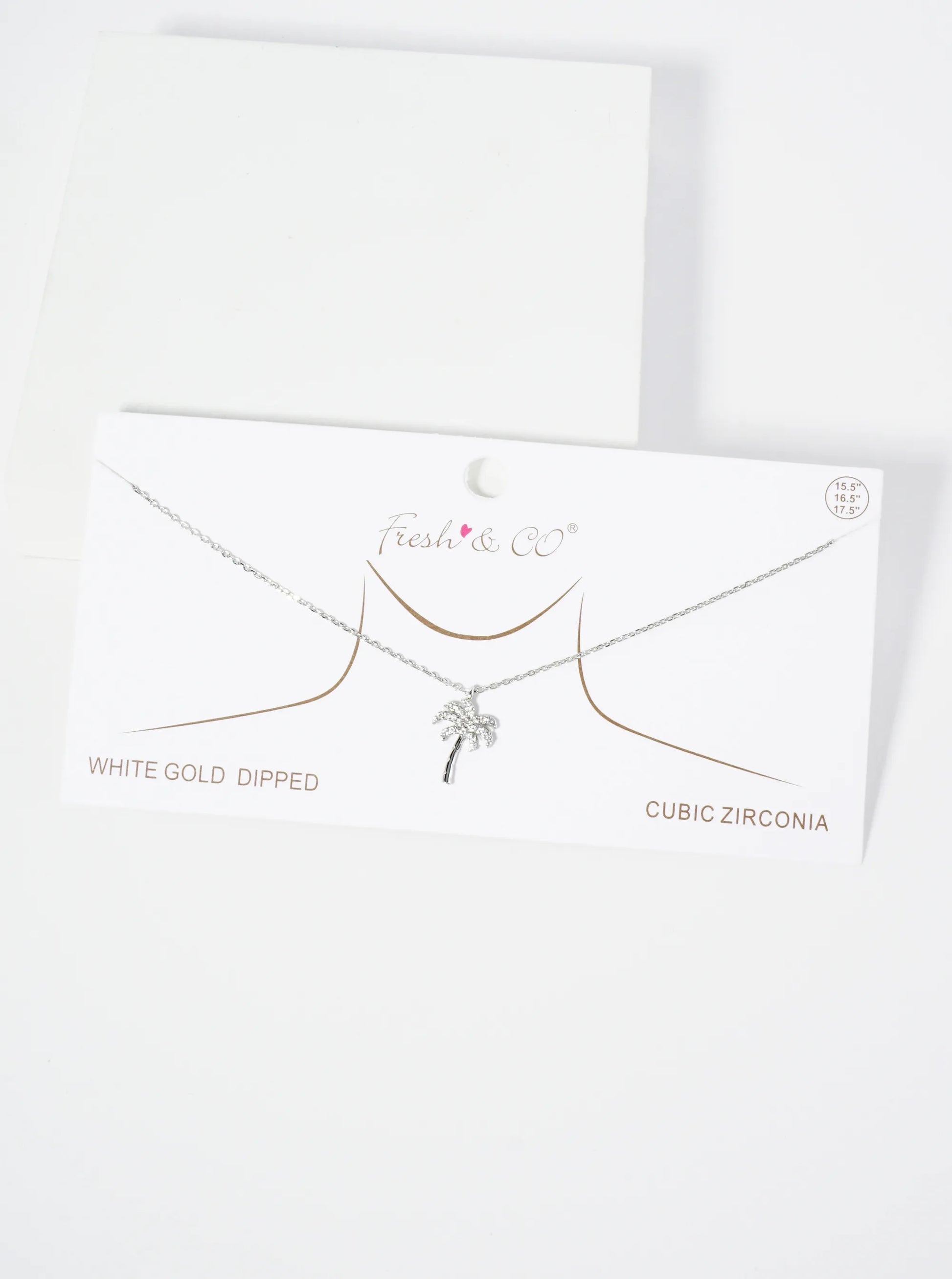 18K Gold Dipped Pave Set CZ Palm Tree Pendant Necklace