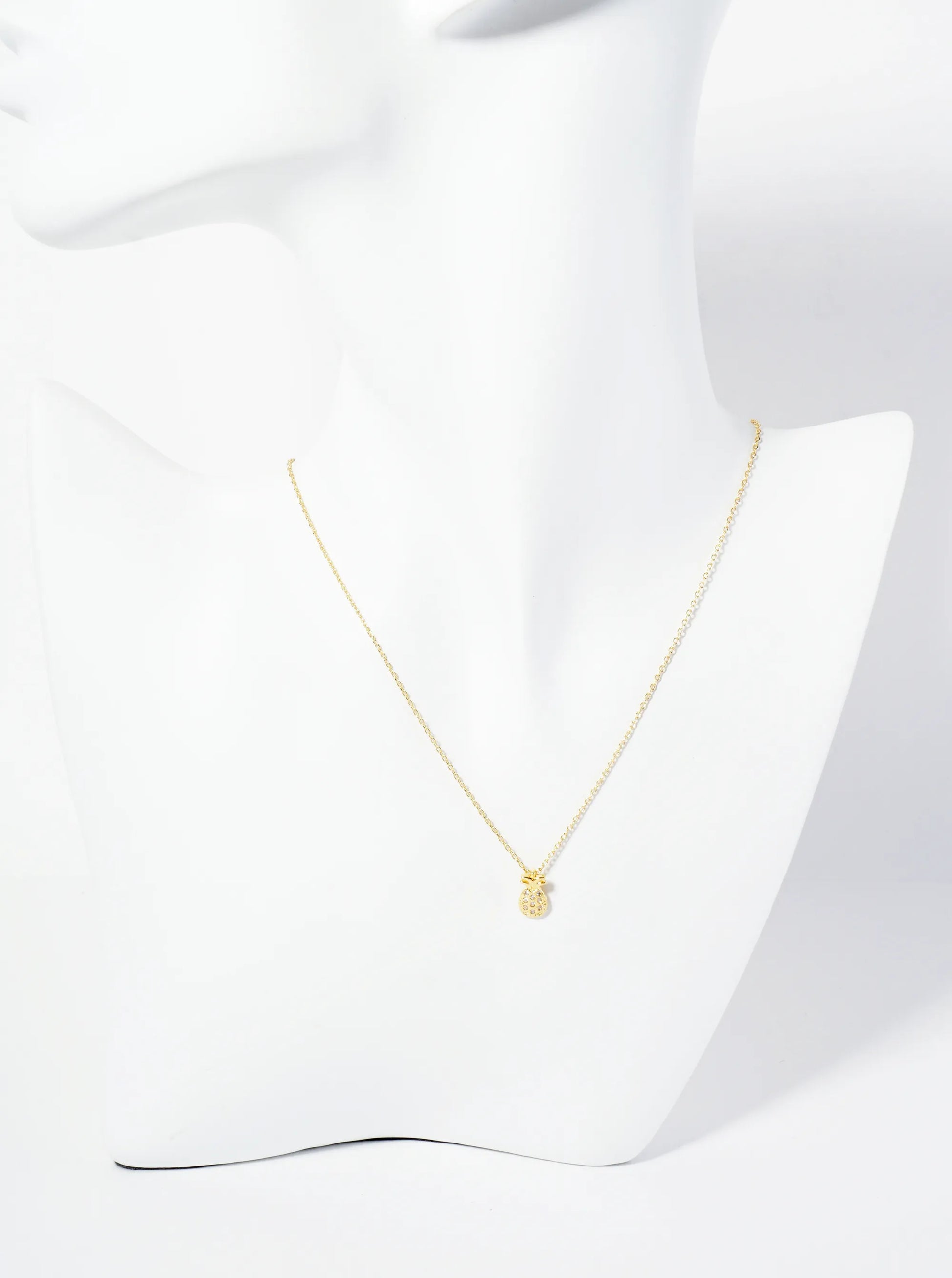 18K Gold Dipped Pave Set CZ Pineapple Pendant Necklace