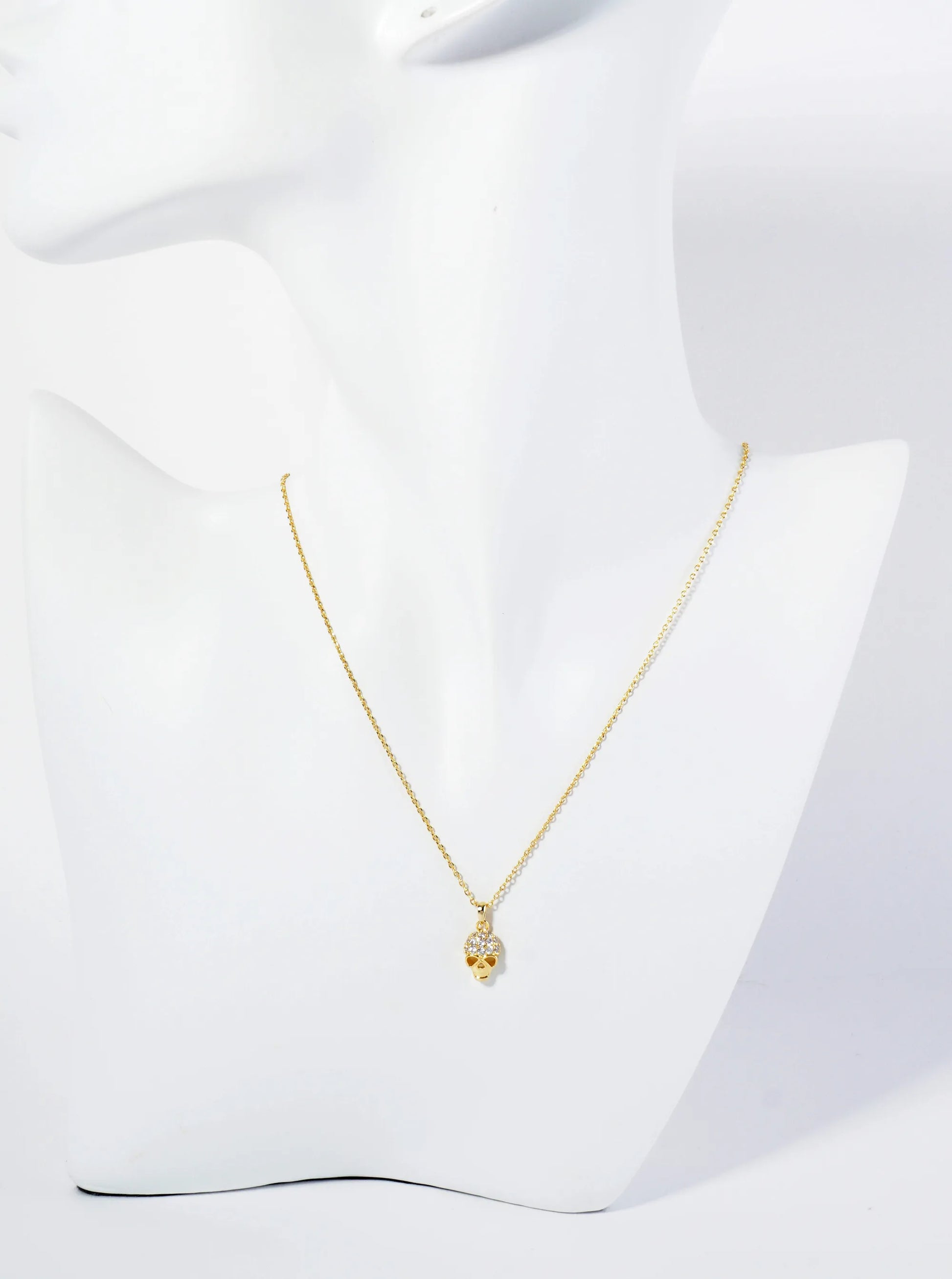 18K Gold Dipped Pave Set CZ Skull Pendant Necklace