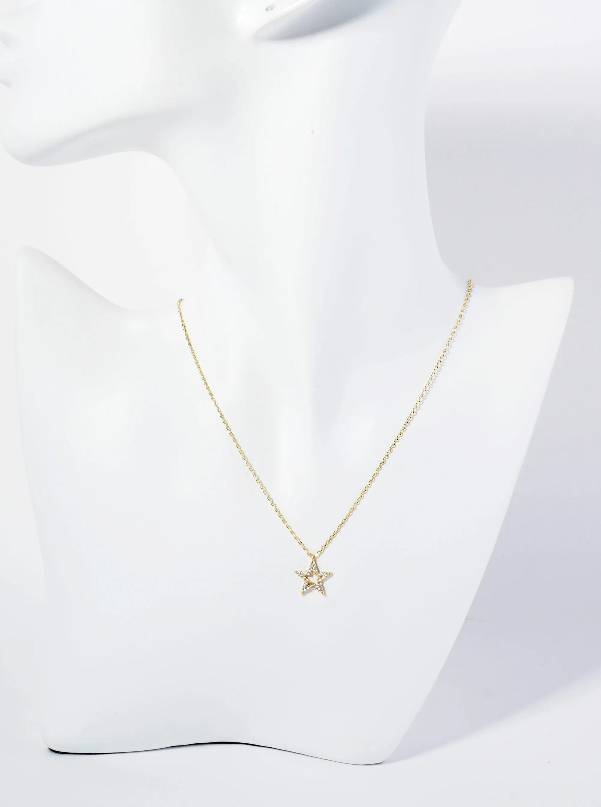 18K Gold Dipped Pave Set CZ Star Pendant Necklace