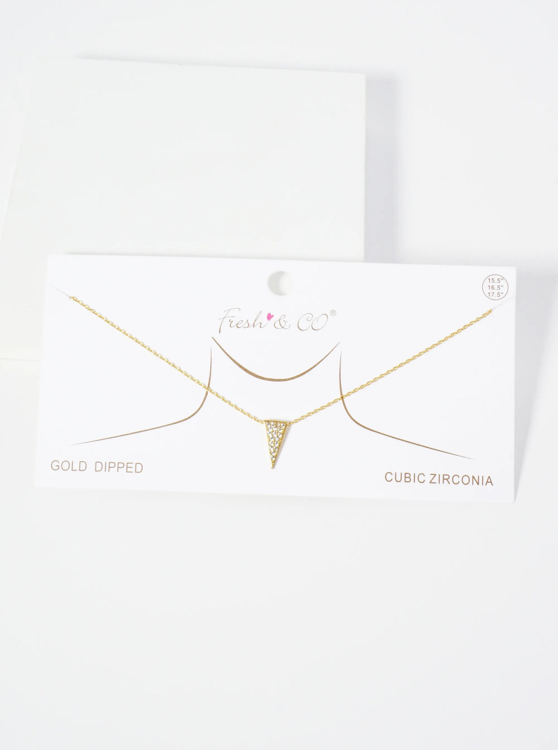 18K Gold Dipped Pave Set CZ Upside Down Triangle Pendant Necklace