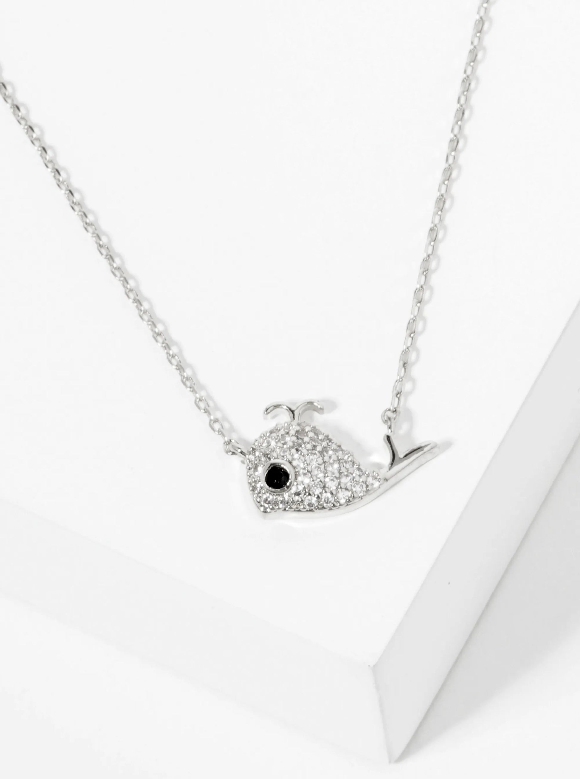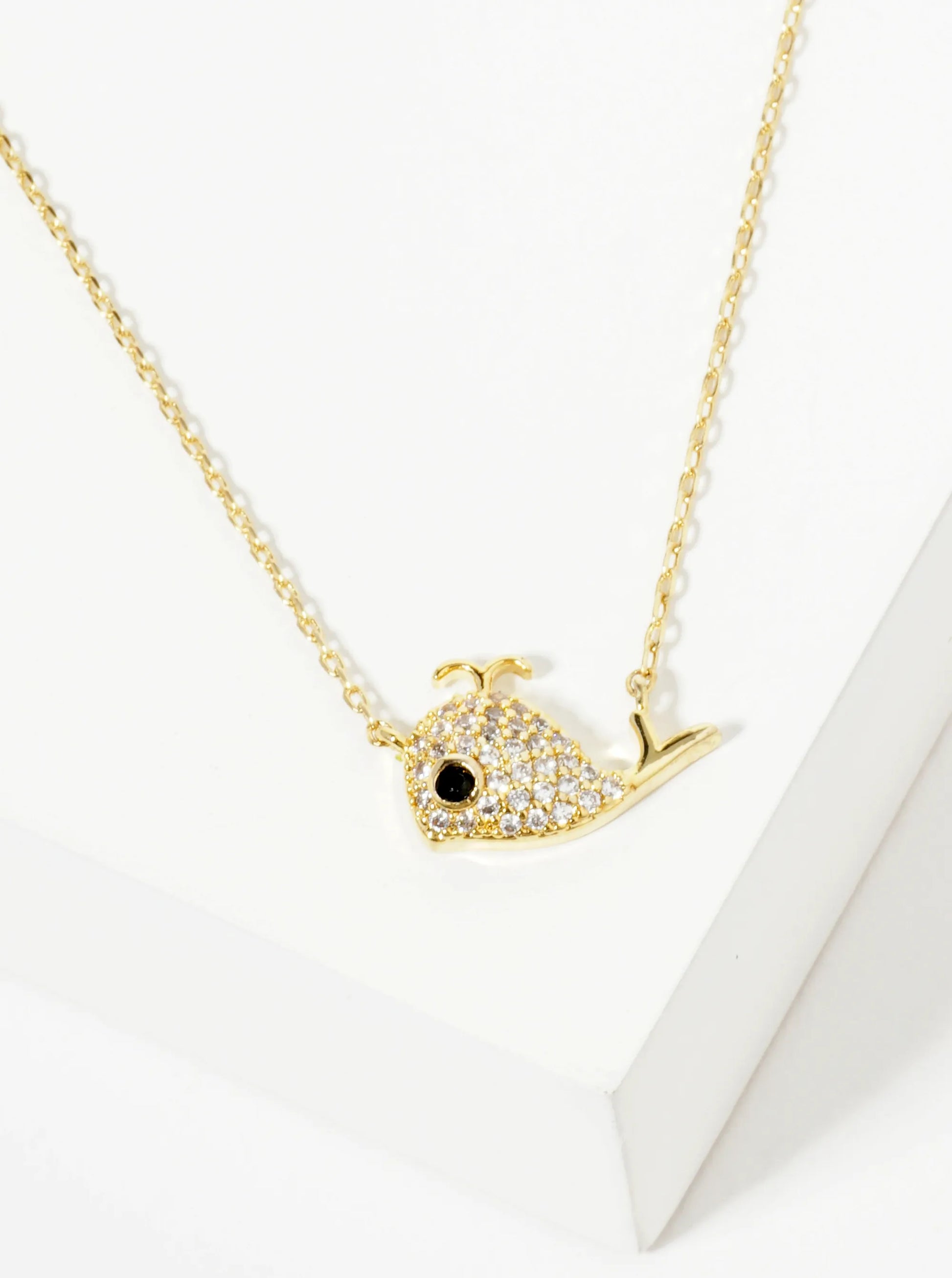 18K Gold Dipped Pave Set CZ Whale Pendant Necklace