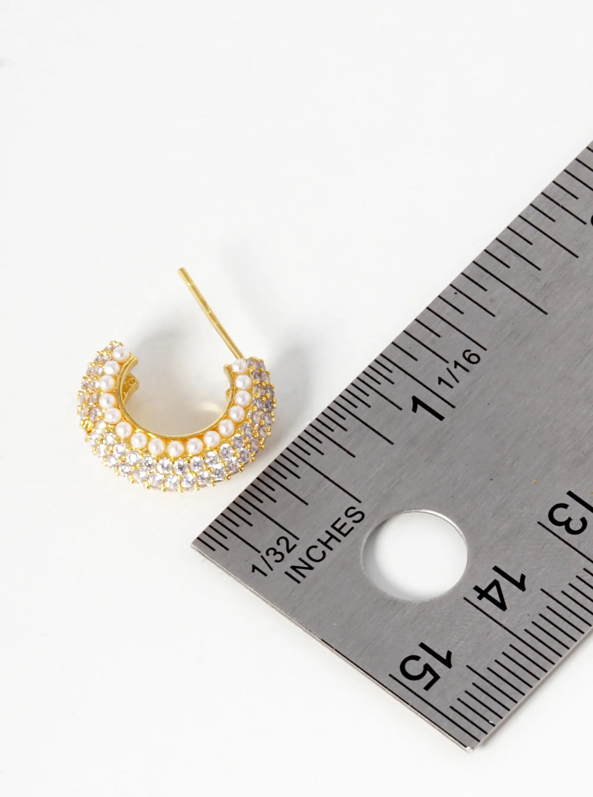 18k Gold Dipped Pearl And CZ Pave 15mm Hoop Earrings