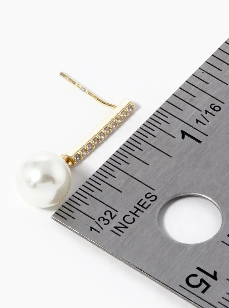 18k Gold Dipped Pearl Bead Drop CZ Pave Bar Dangle Earrings