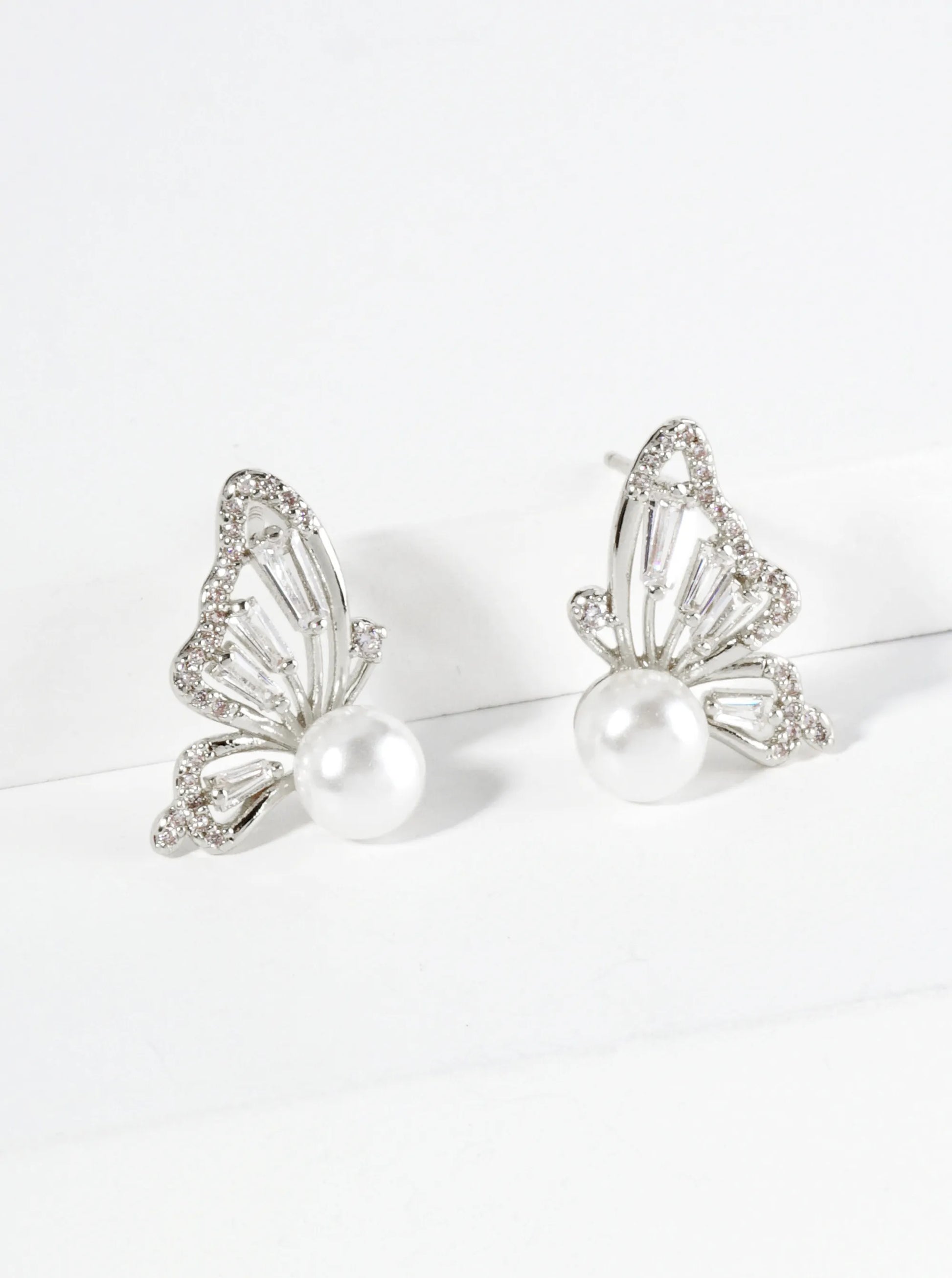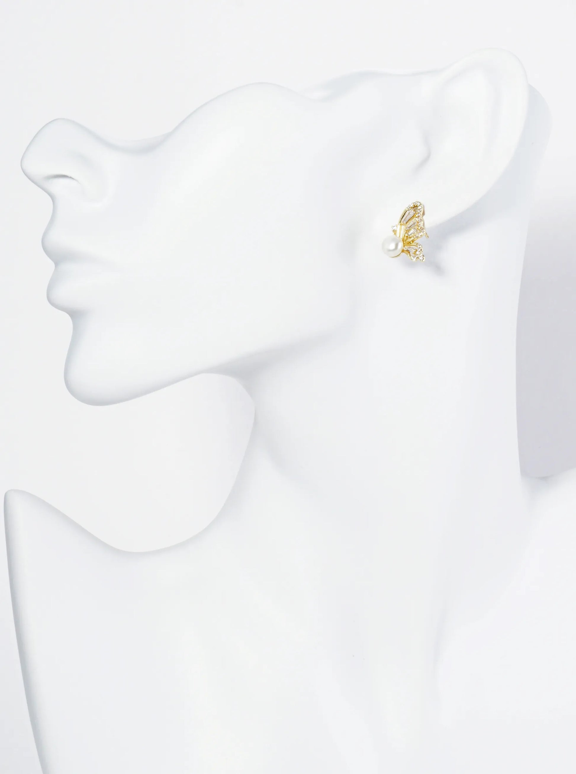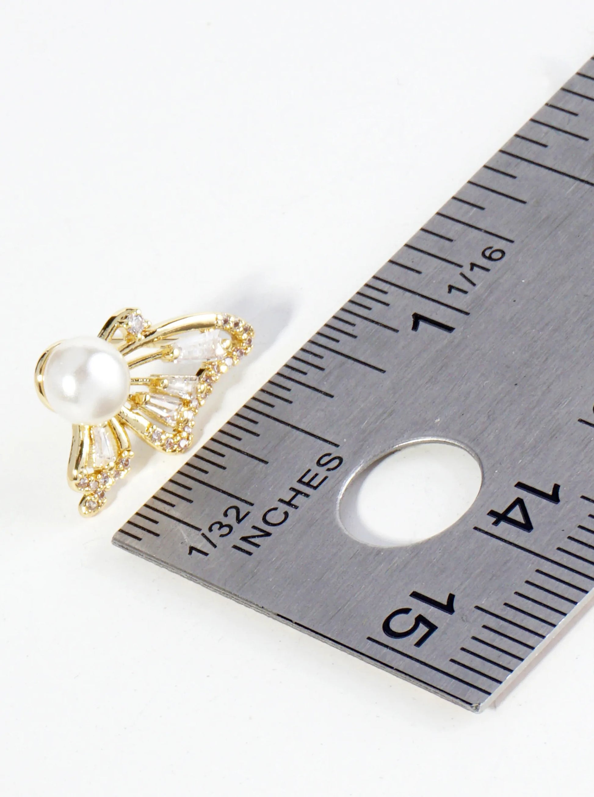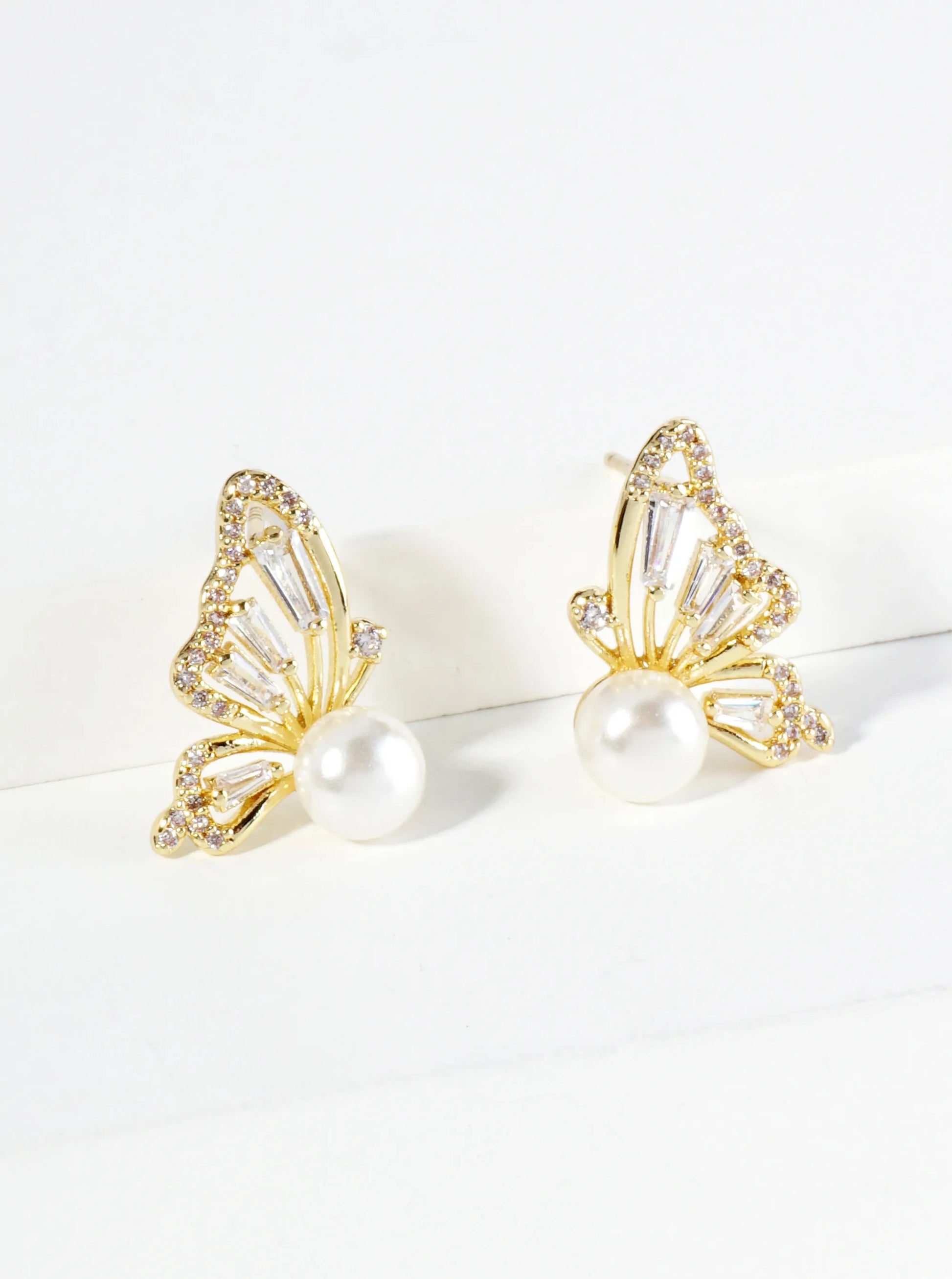18K Gold Dipped Pearl Cubic Zirconia Butterfly Wings Stud Earrings