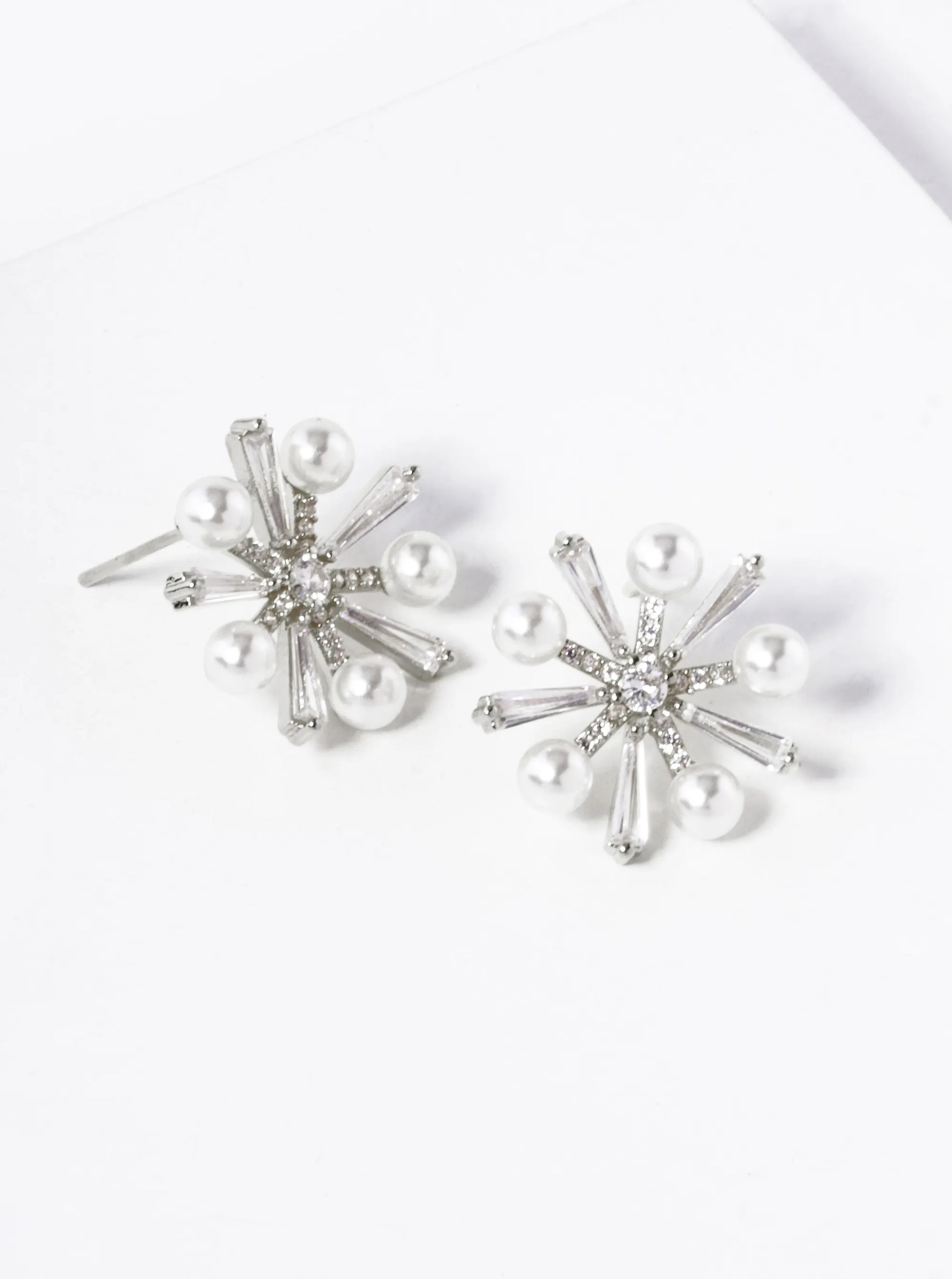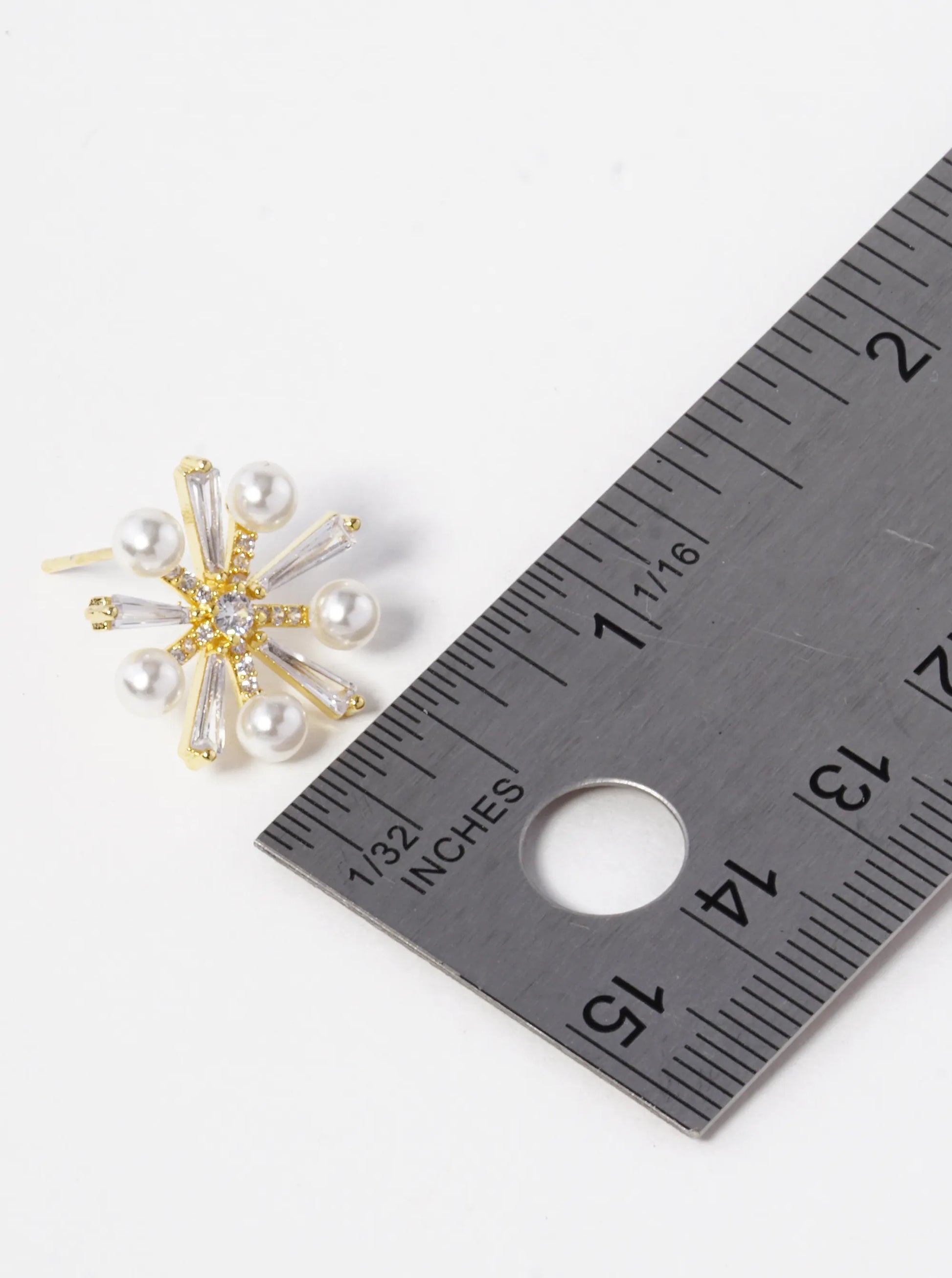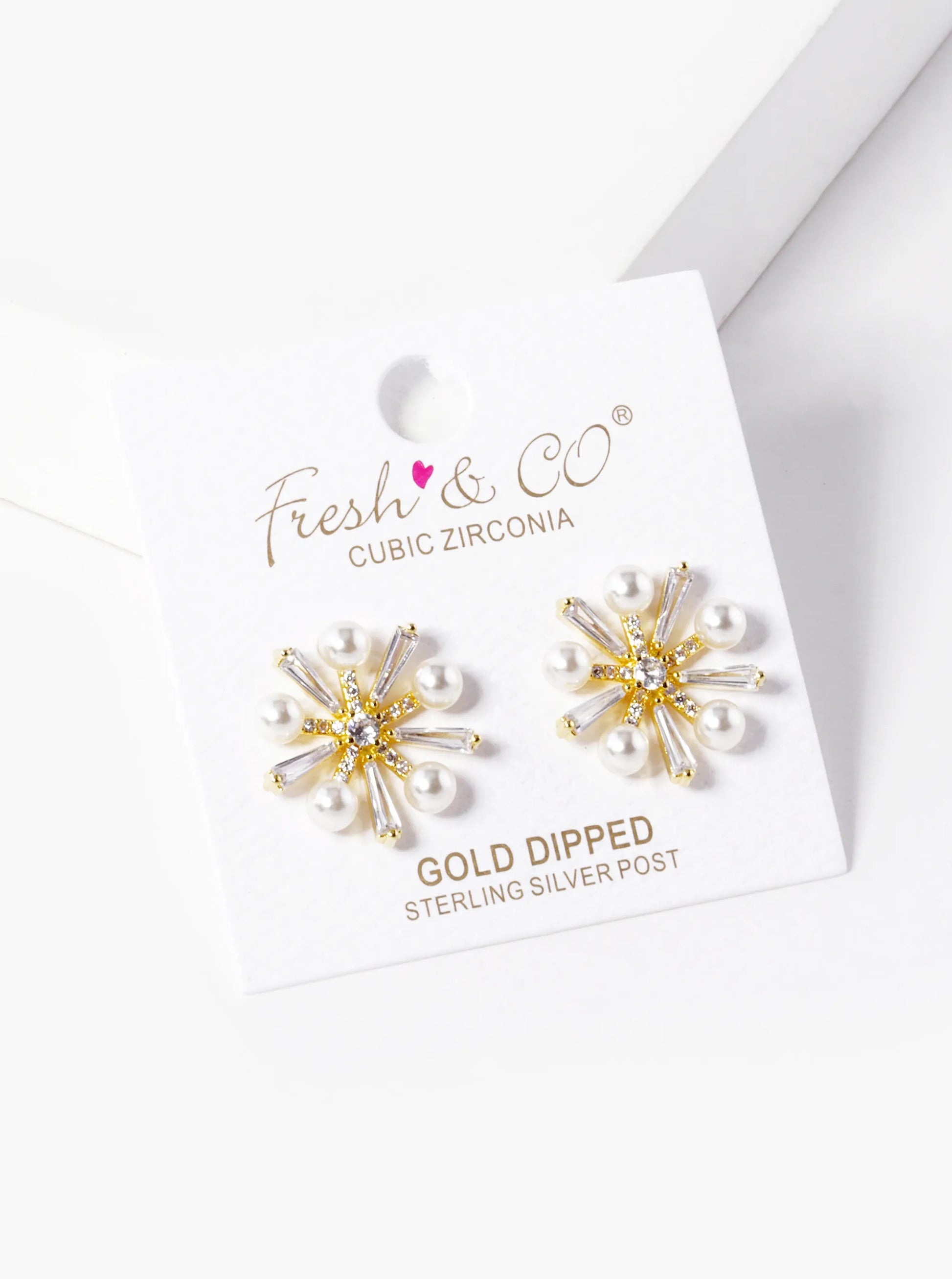 18k Gold Dipped Pearl CZ Pave Snowflake Stud Earrings