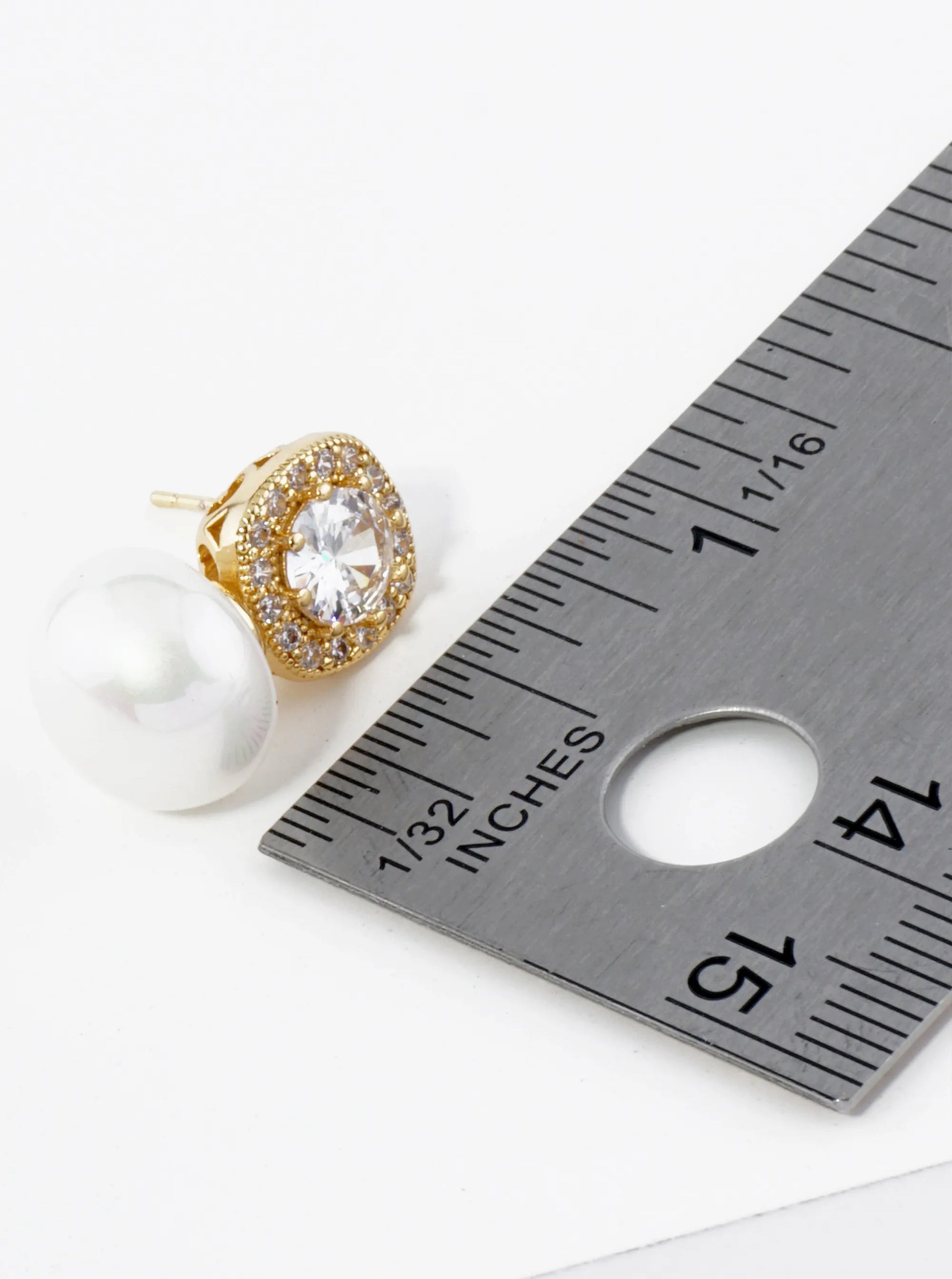 18K Gold Dipped Pearl Drop Cubic Zirconia Stud Earrings
