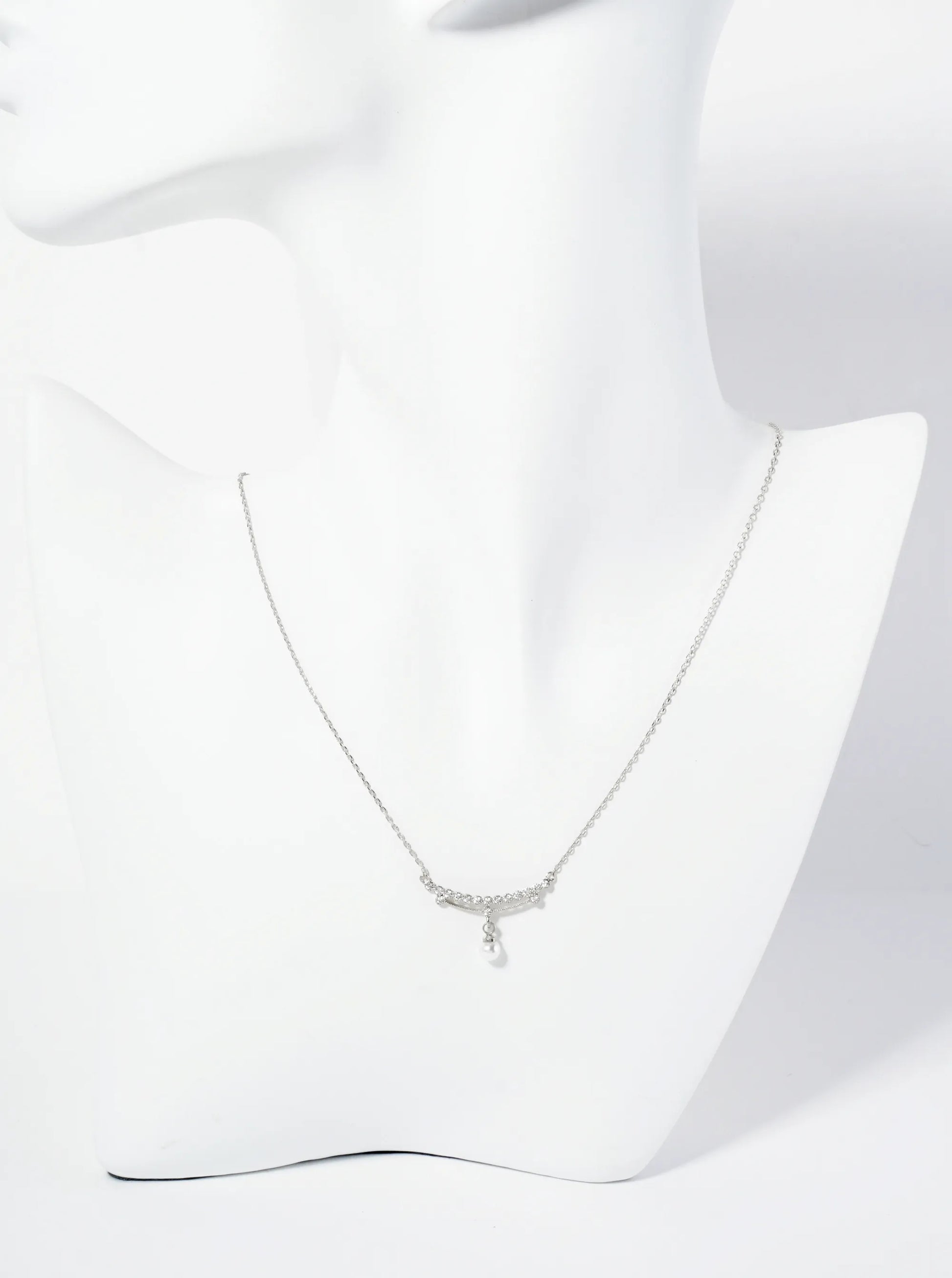 18K Gold Dipped Pearl Drop Curved CZ Bar Pendant Necklace
