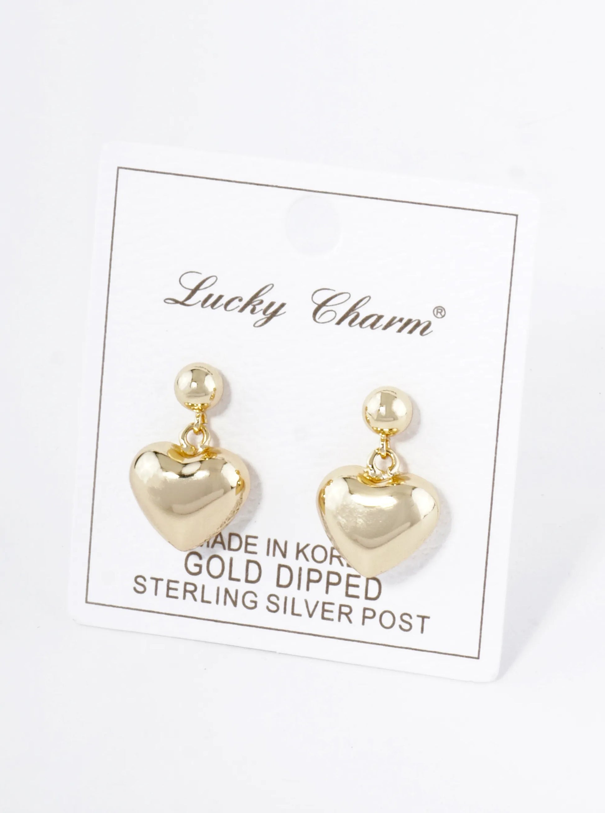 18K Gold Dipped Puffy Heart Drop Dangle Post Earrings