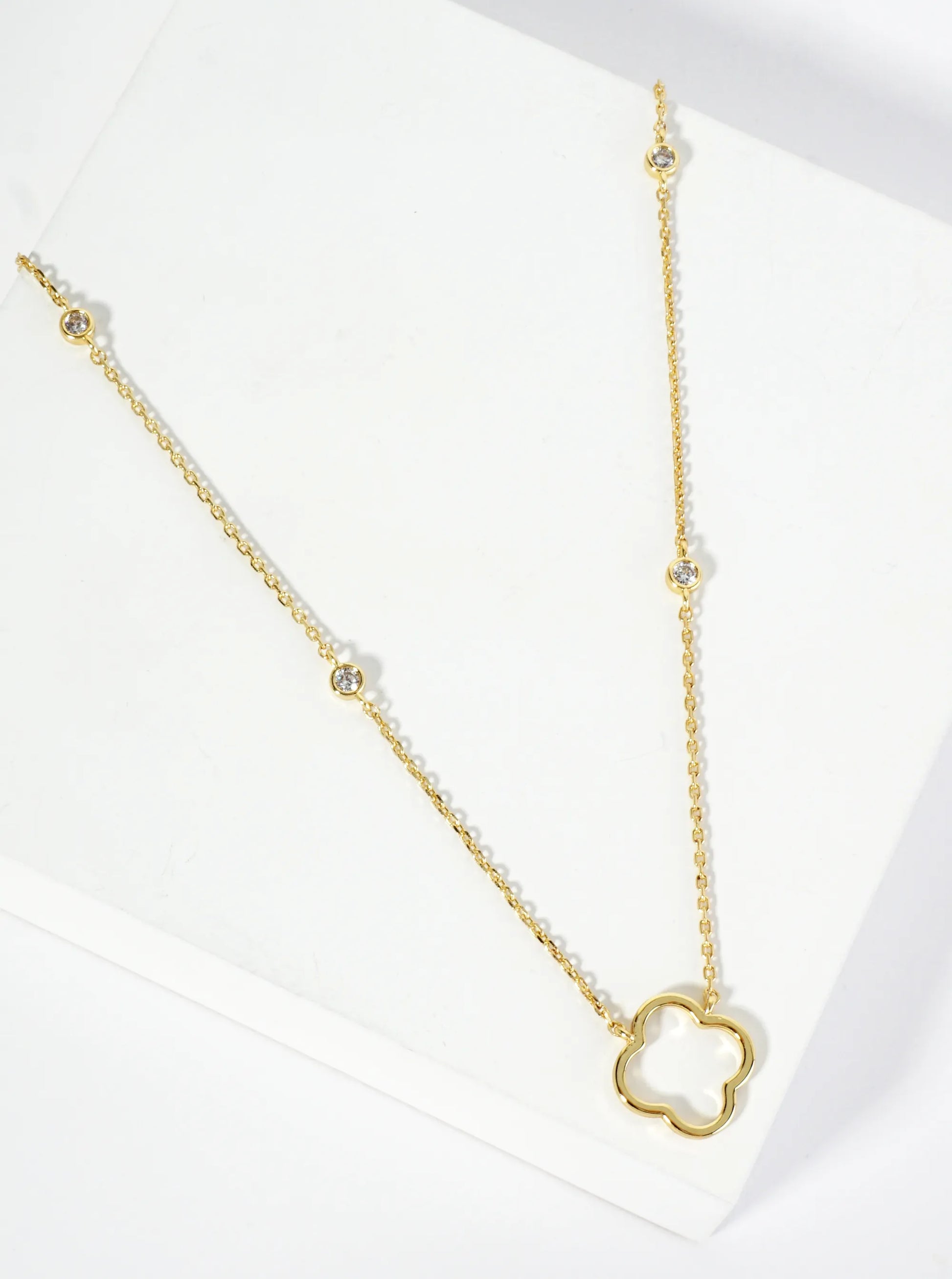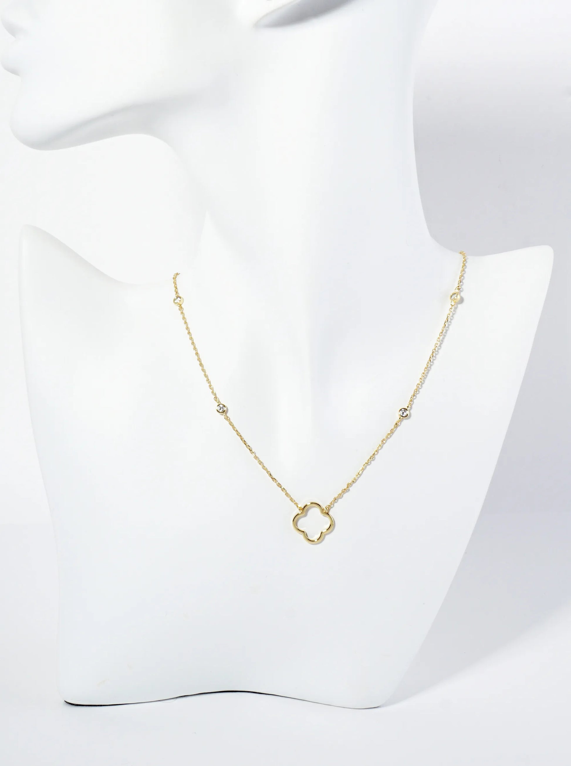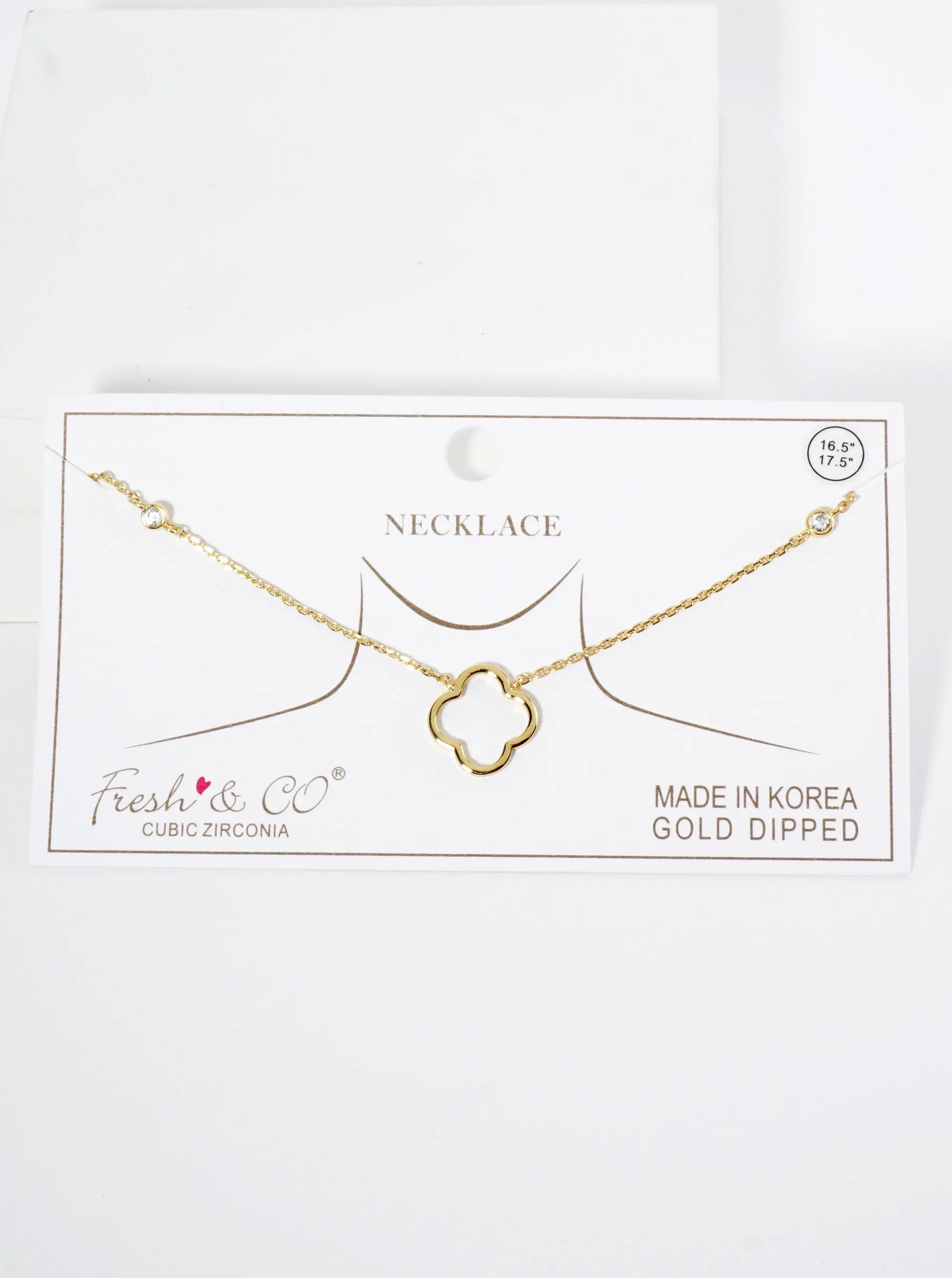 18K Gold Dipped Quatrefoil Cutout Pendant Necklace