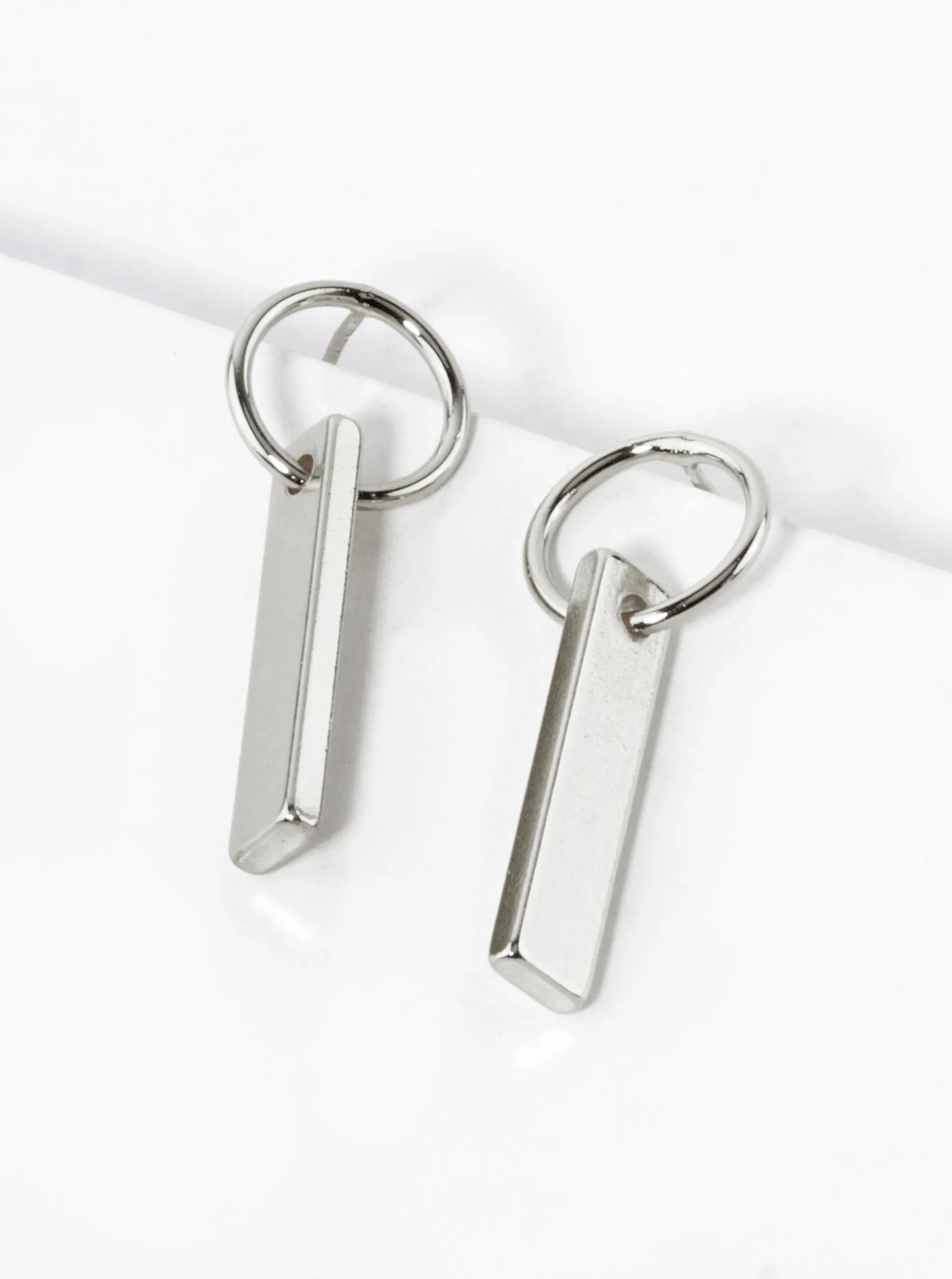 18K Gold Dipped Rectangle Bar Drop Circle Post Earrings
