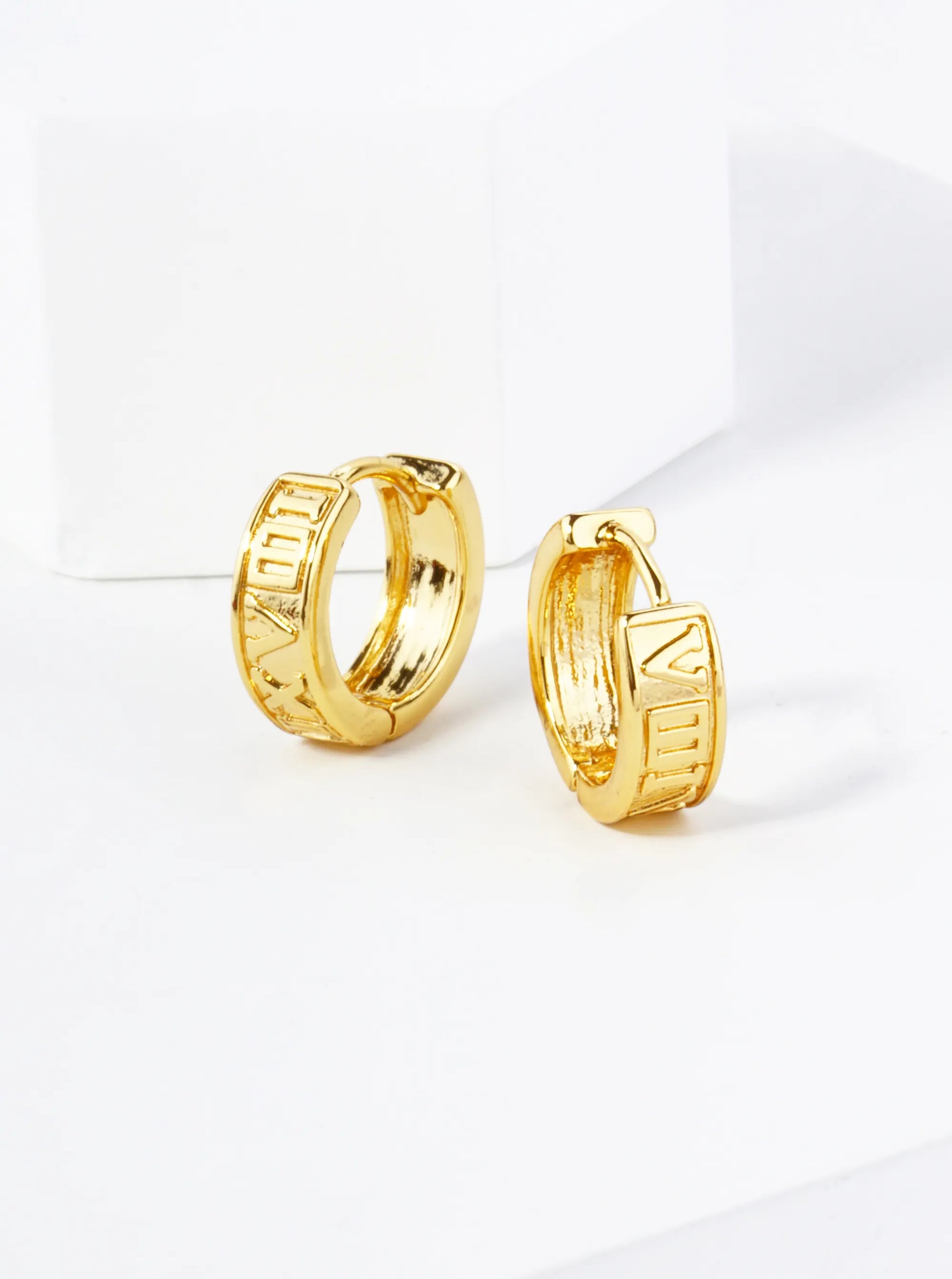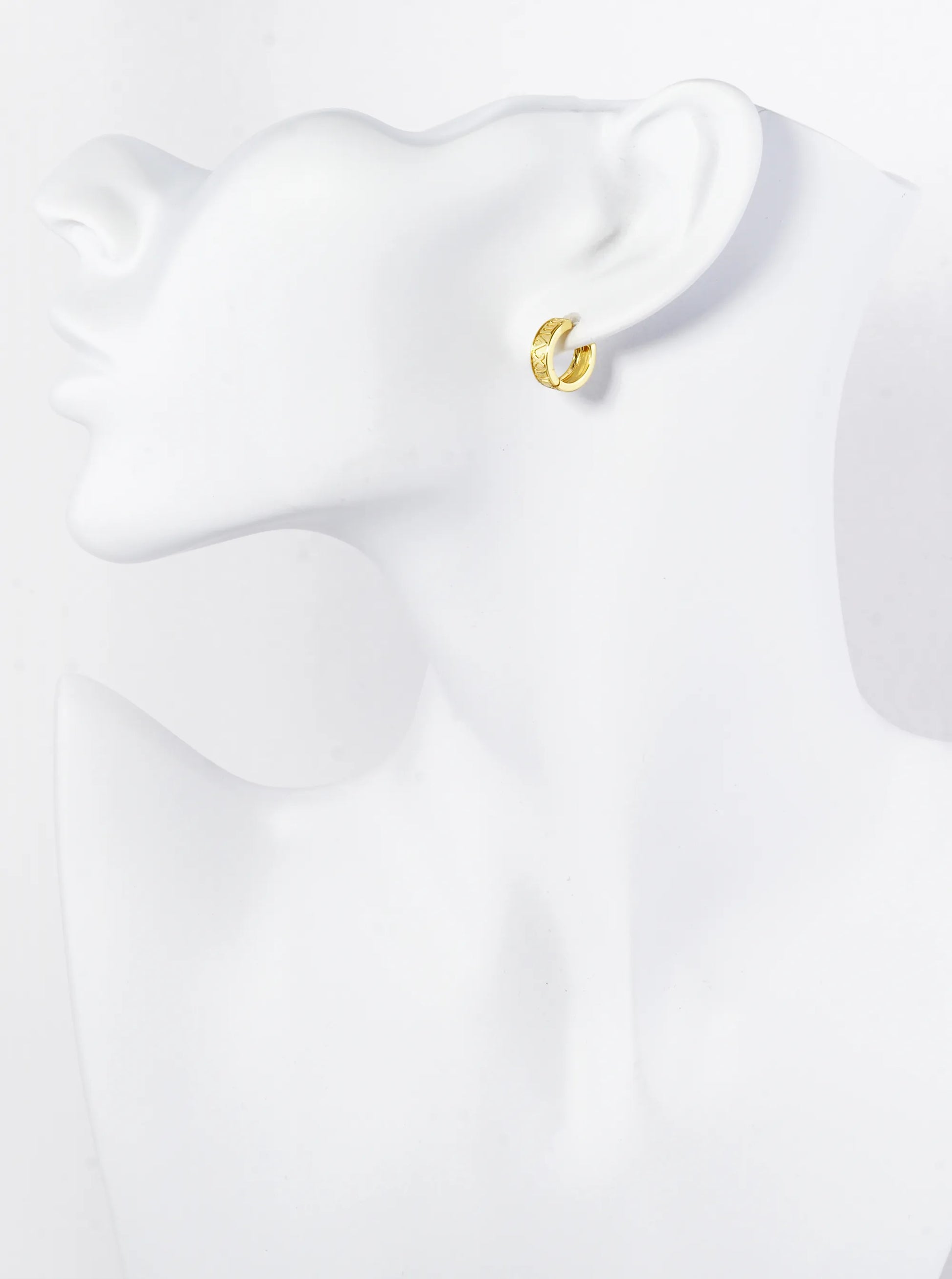 18K Gold Dipped Roman Numerals Engraved 11mm Brass Huggie Hoop Earrings