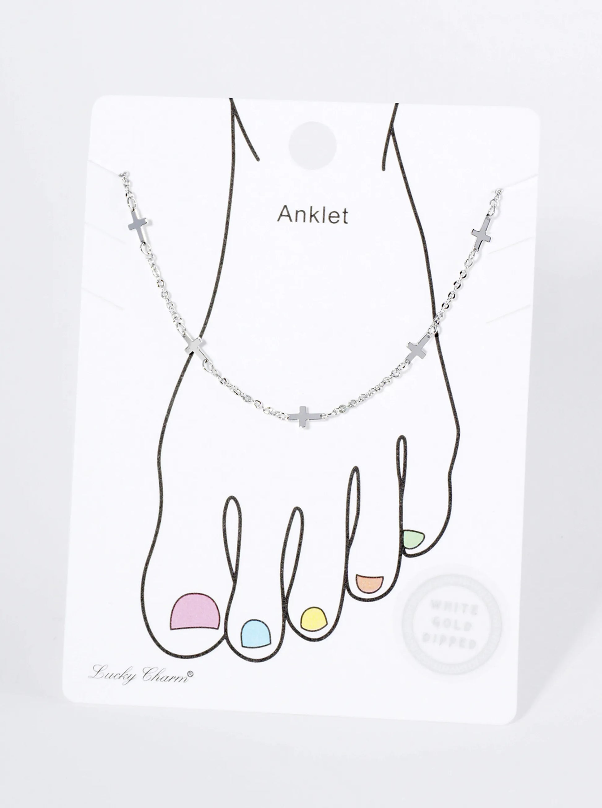 18K Gold Dipped Sideways Cross Brass Chain Anklet