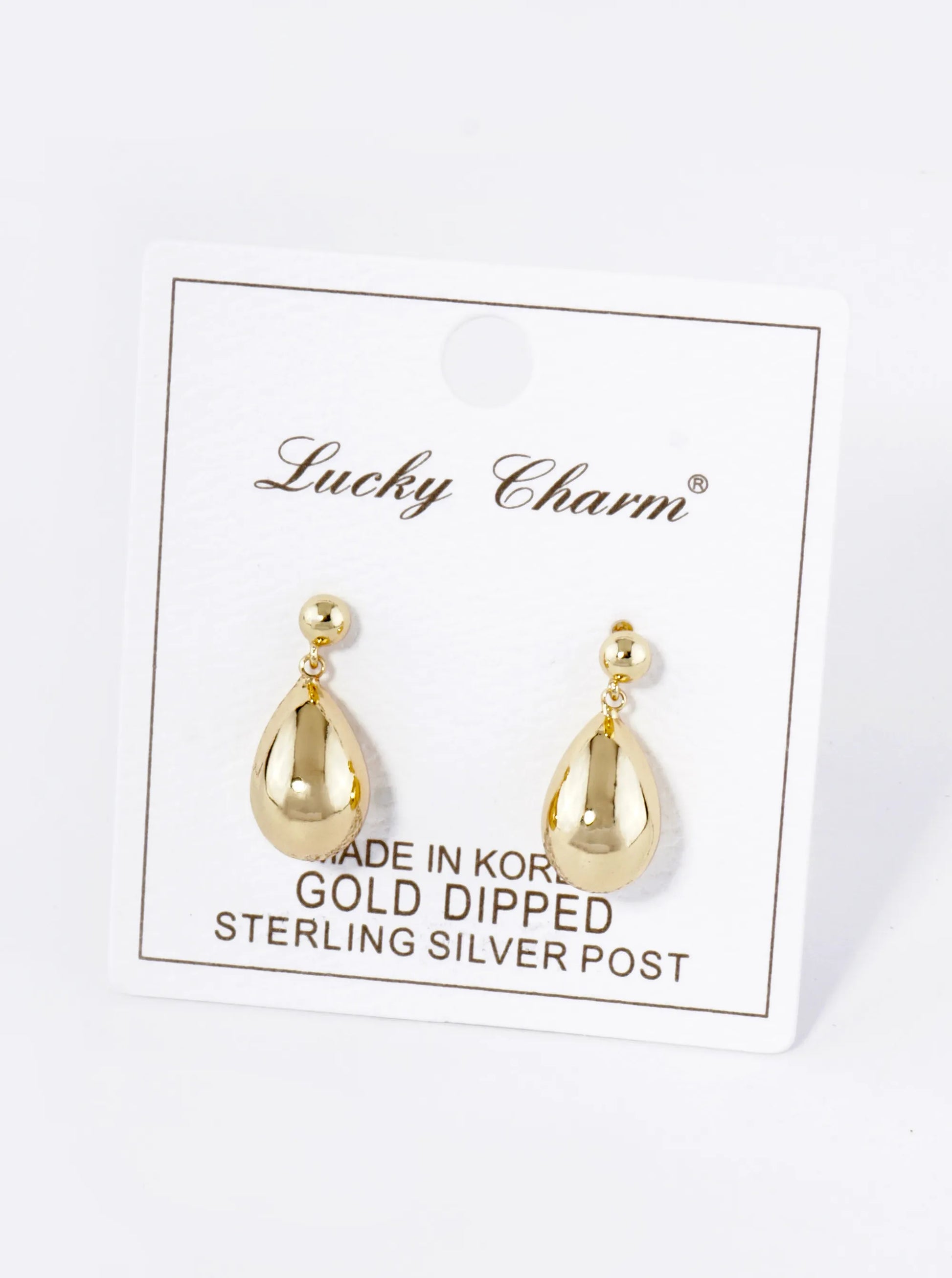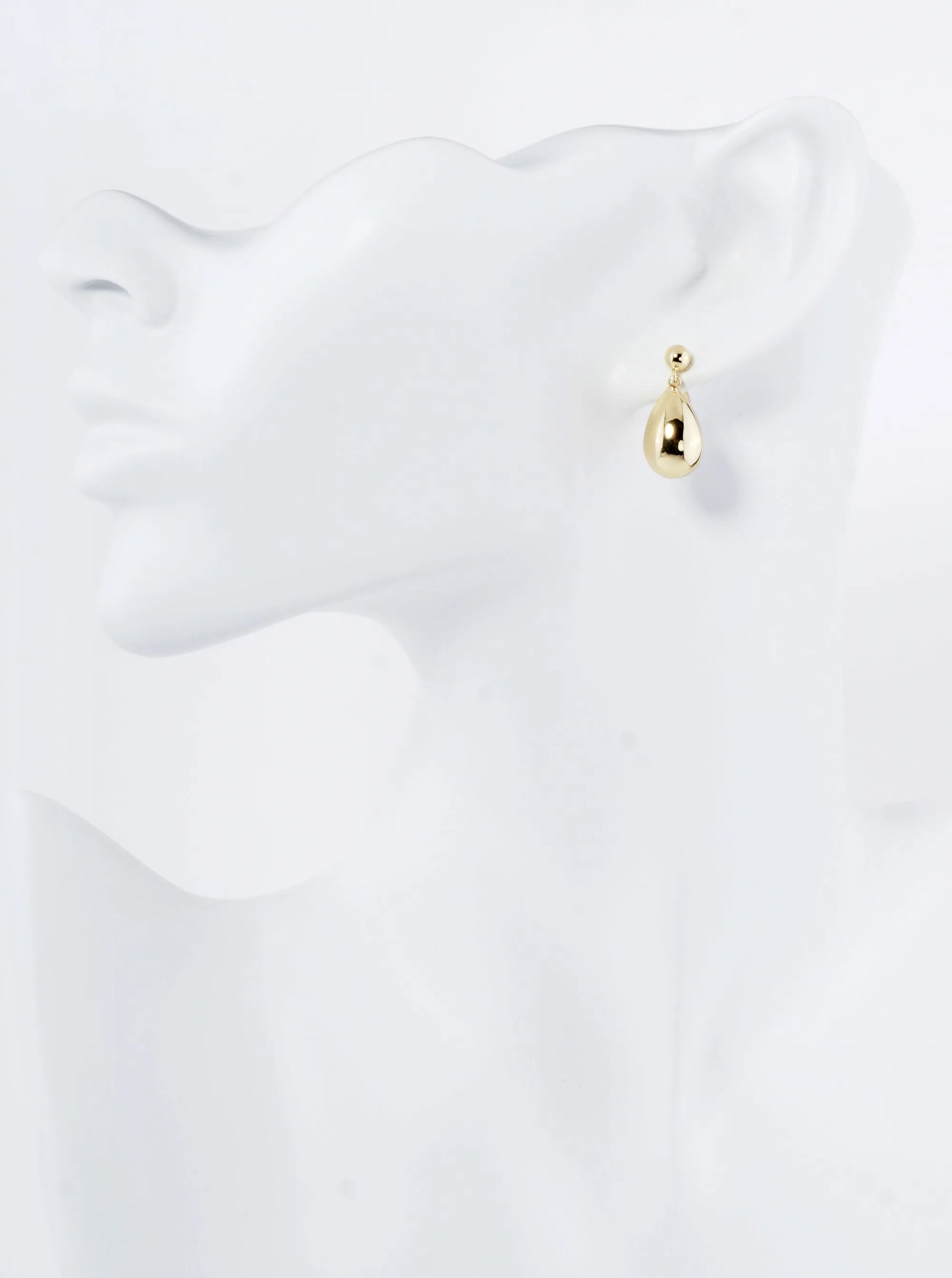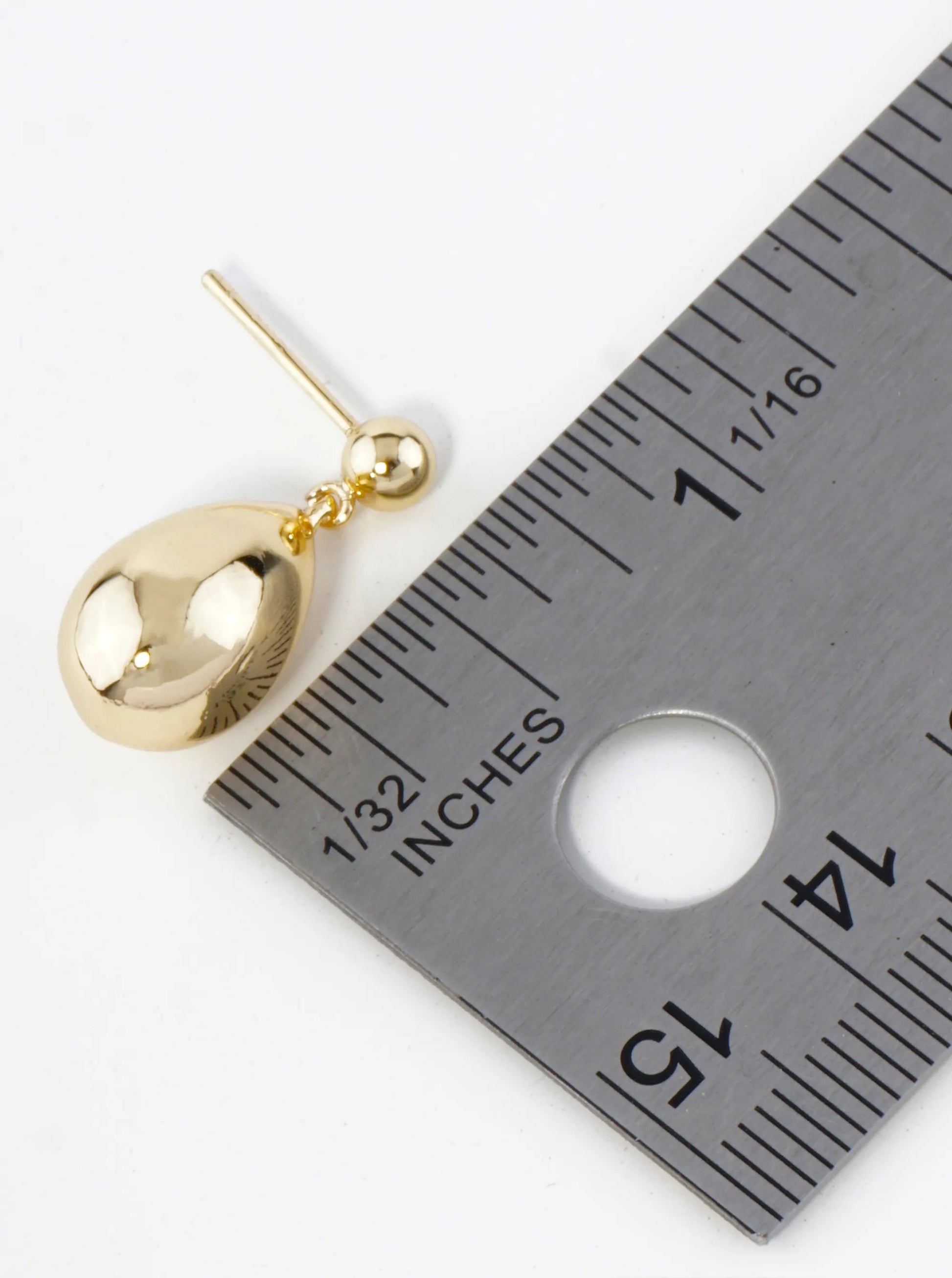 18K Gold Dipped Small Puffy Teardrop Drop Dangle Post Earrings