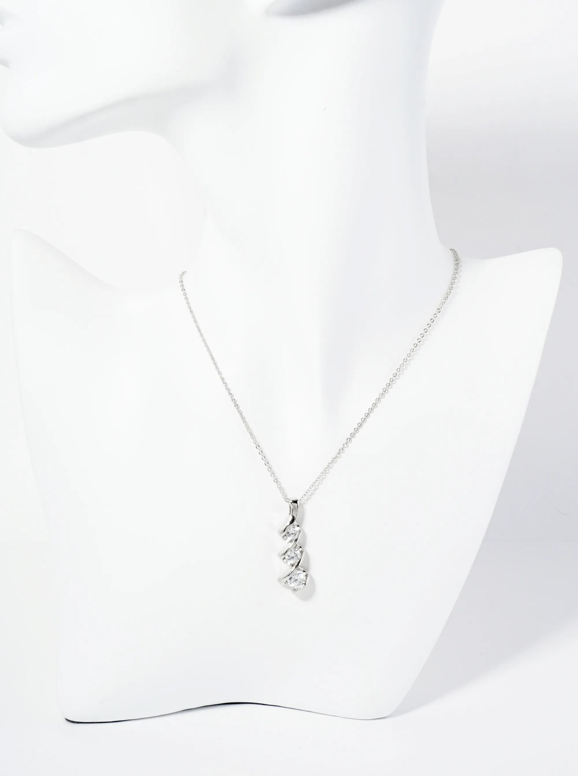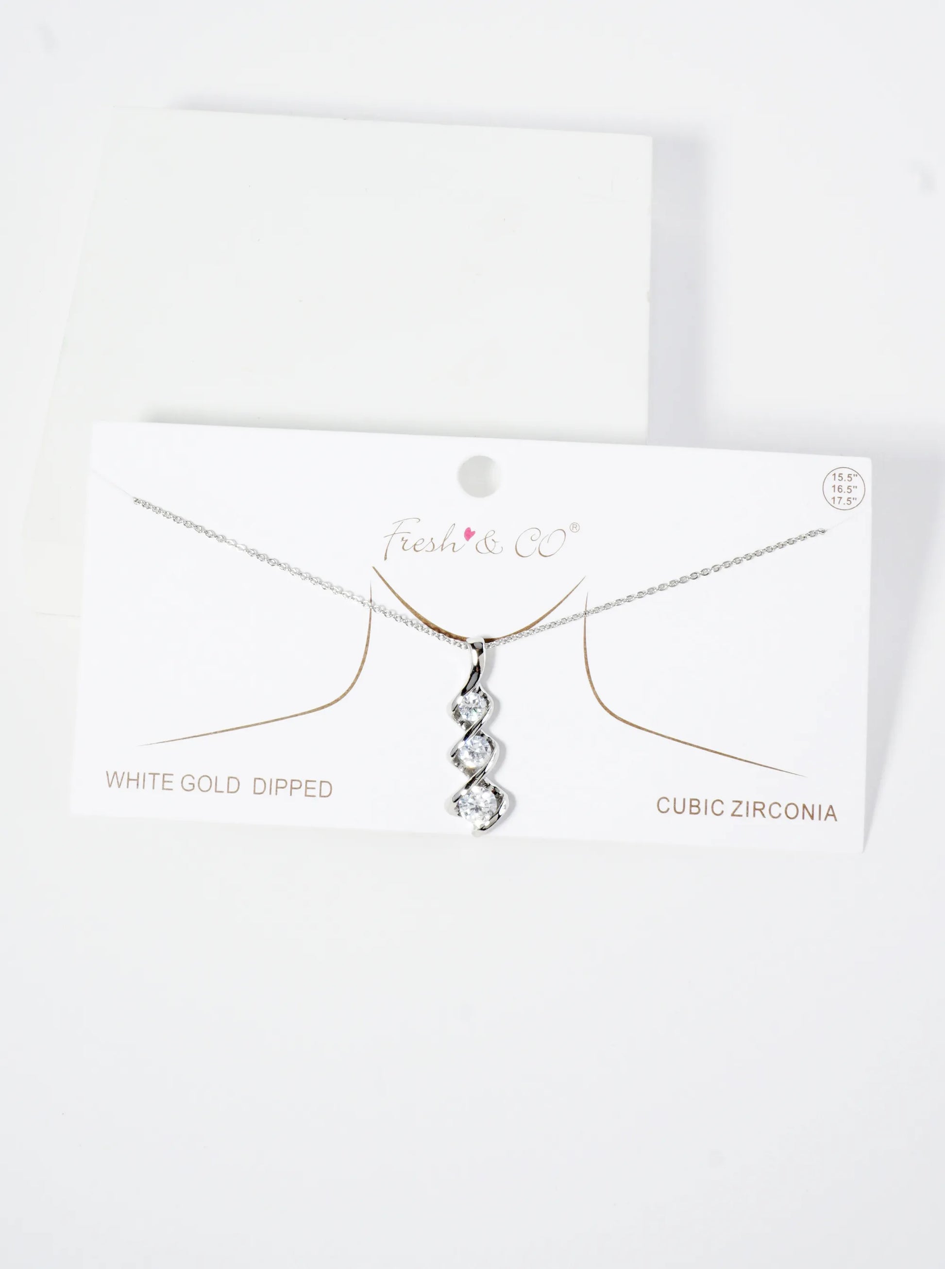 18K Gold Dipped Spiral Graduated CZ Stones Drop Pendant Necklace