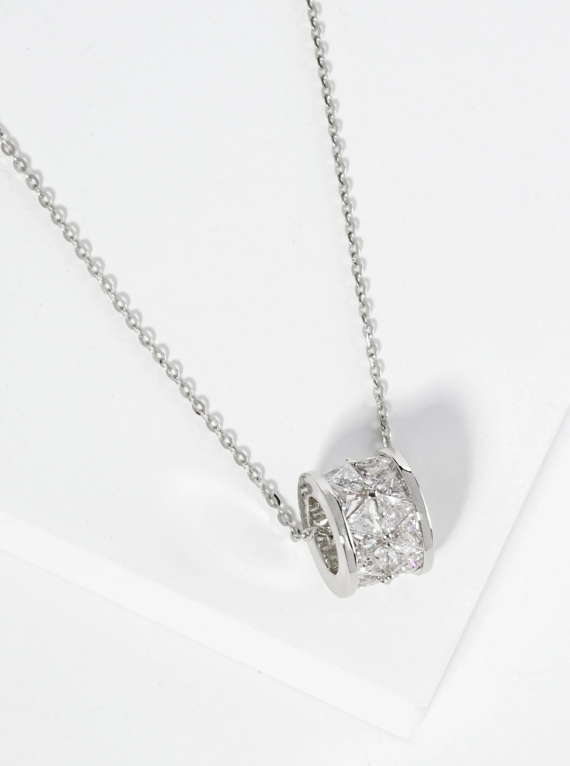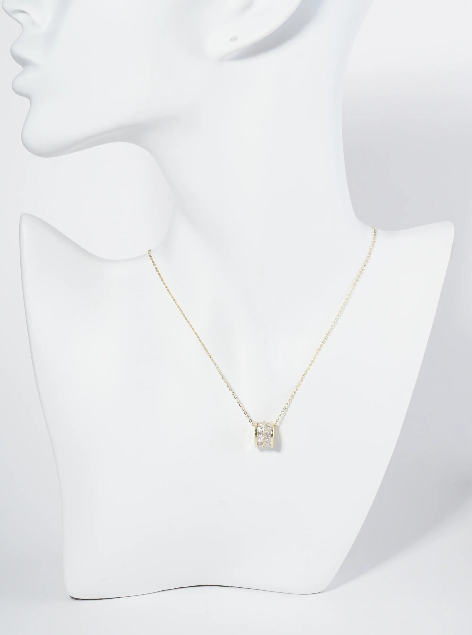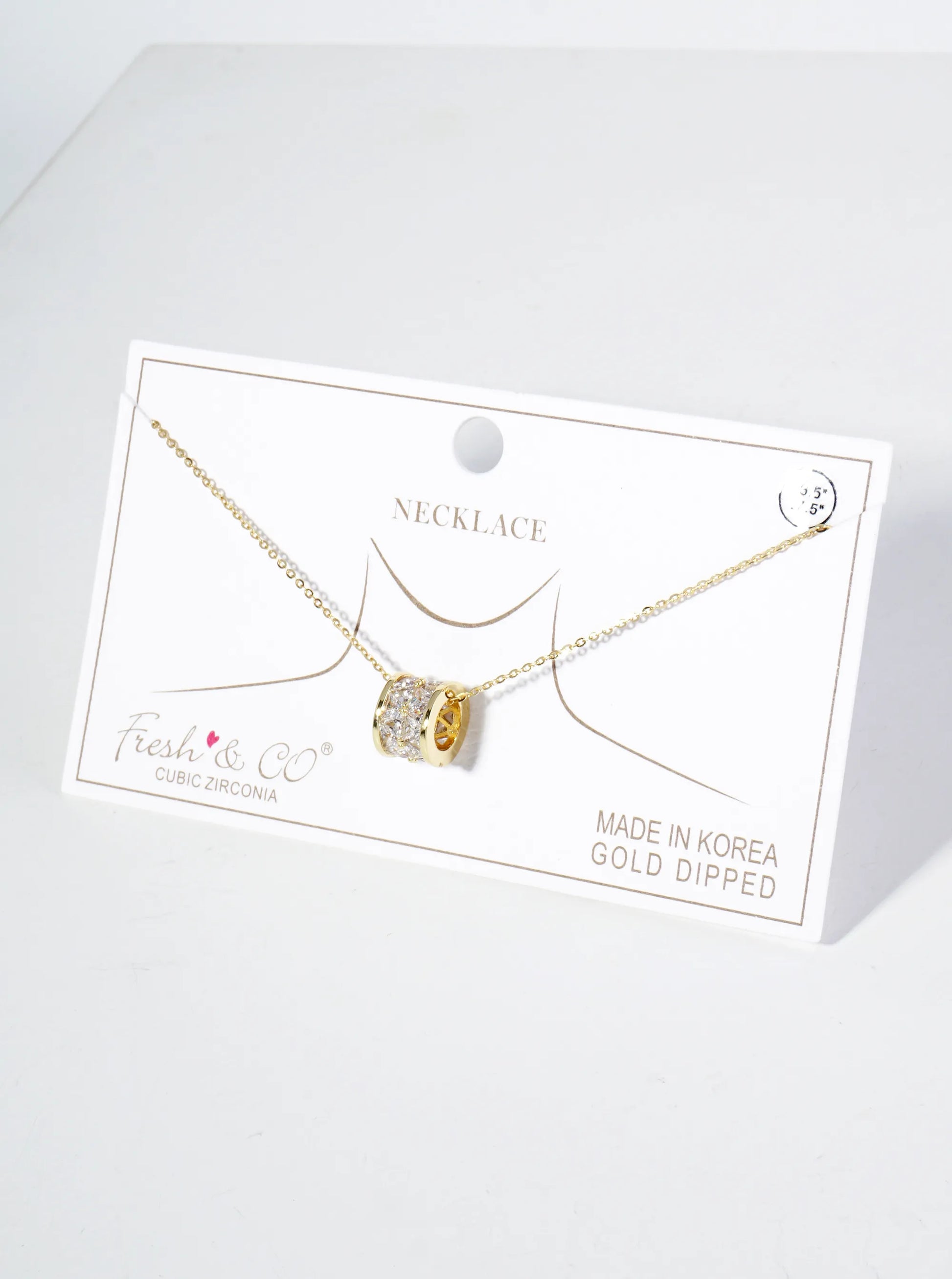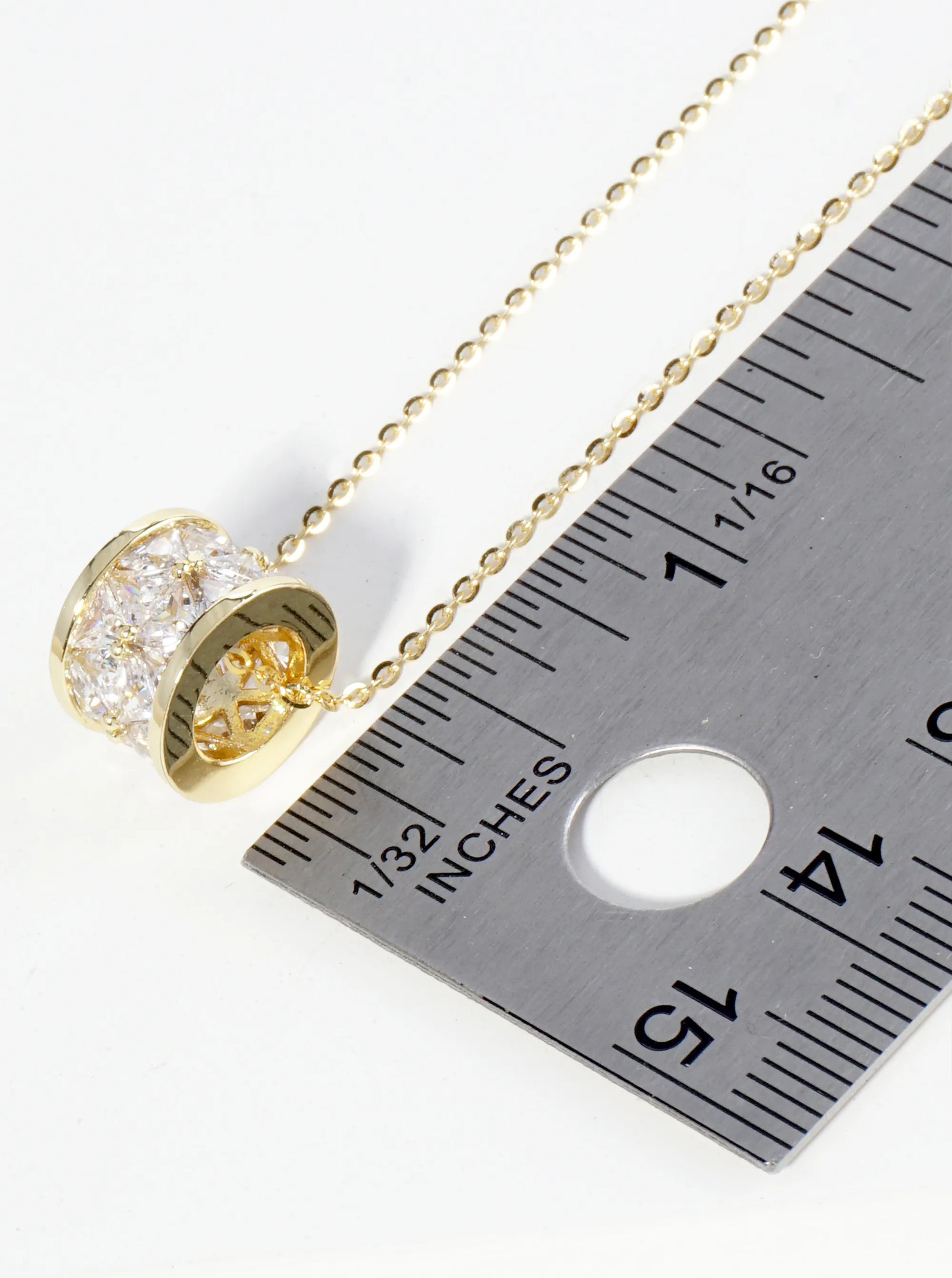 18K Gold Dipped Square CZ Embedded Eternity Rondelle Wheel Pendant Necklace