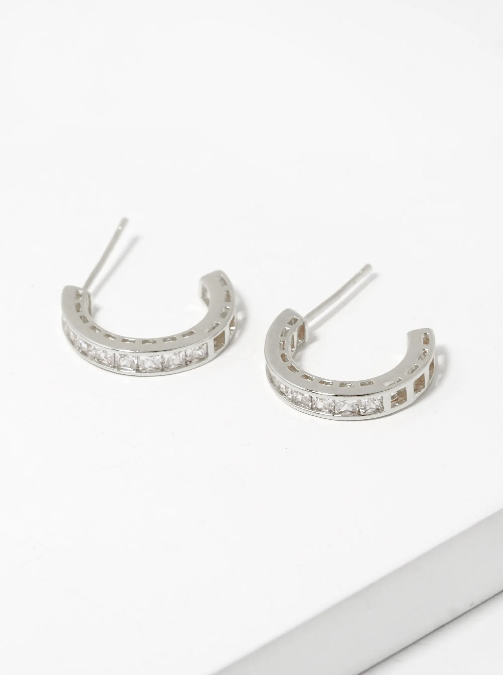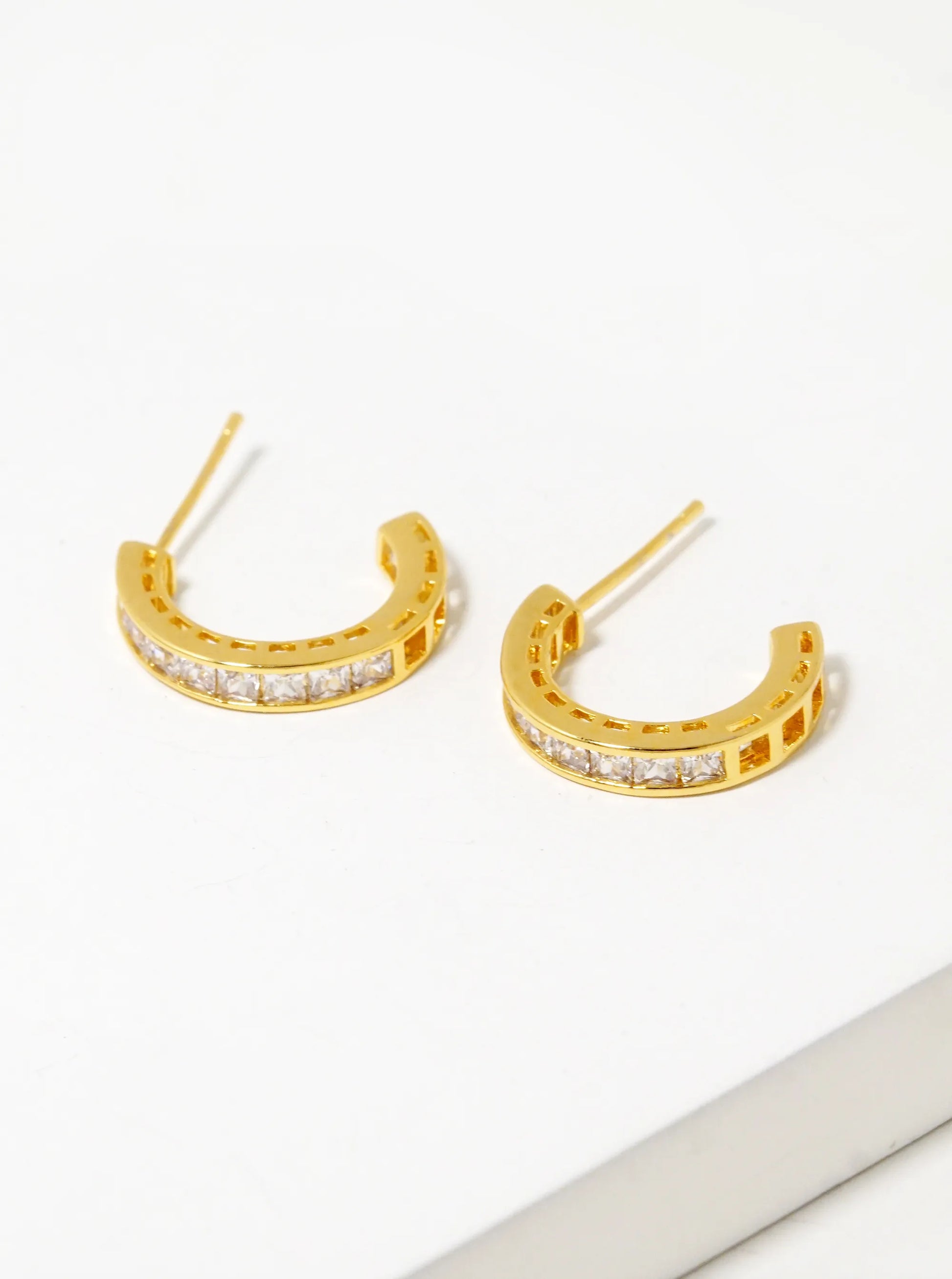 18K Gold Dipped Square CZ Pave 15mm Hoop Earrings