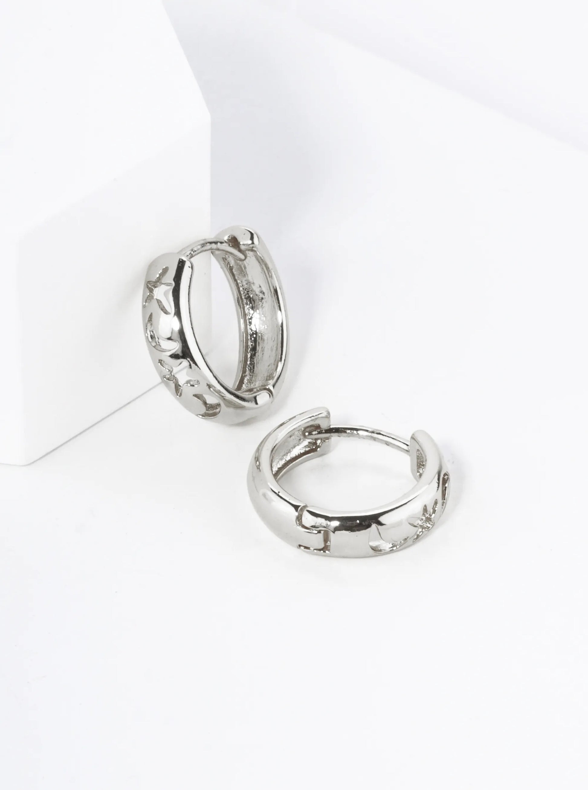 18K Gold Dipped Star And Moon Cutout 12mm Huggie Hoop Earrings
