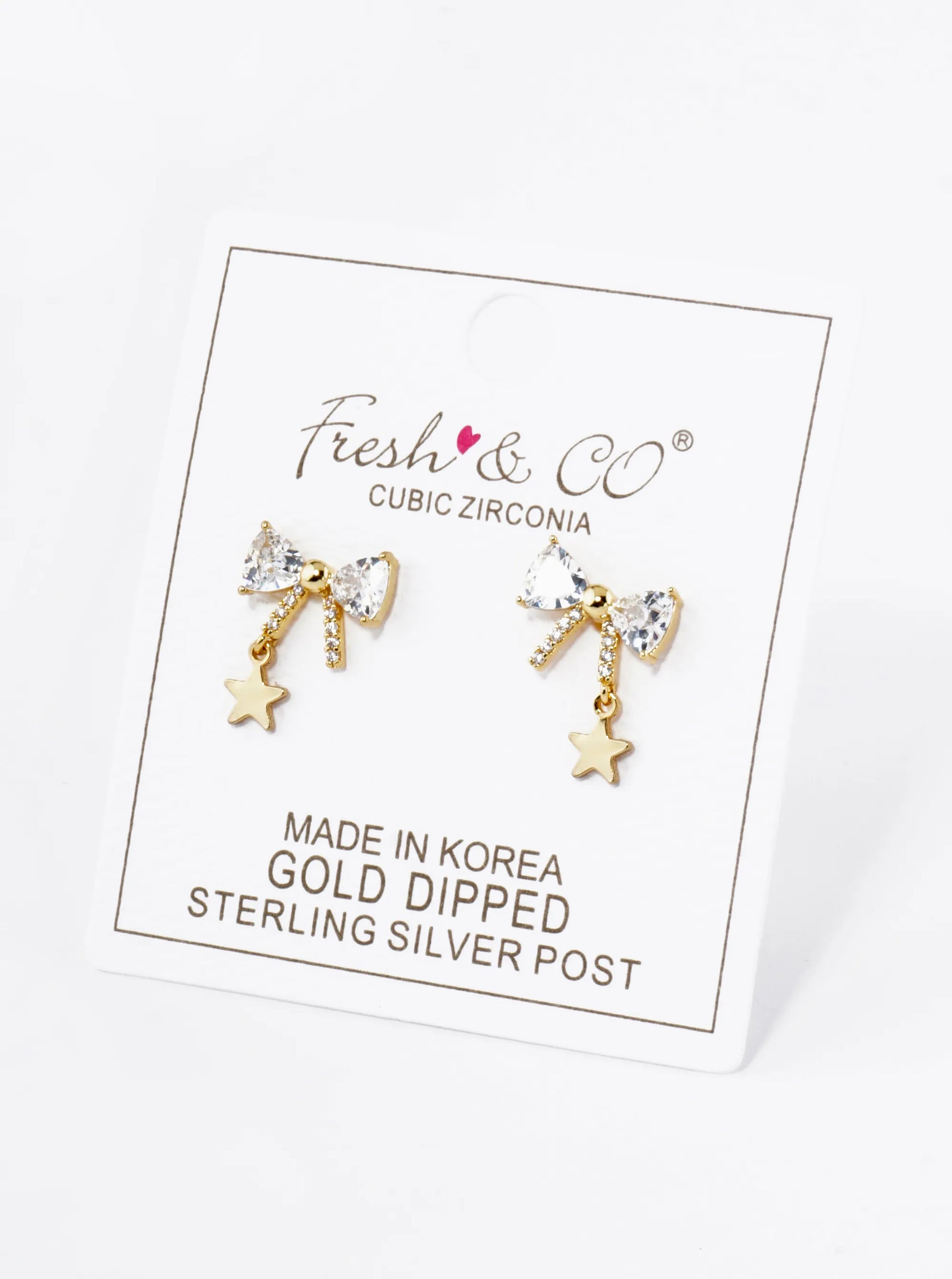 18K Gold Dipped Star Drop Cubic Zirconia Ribbon Bow Stud Earrings