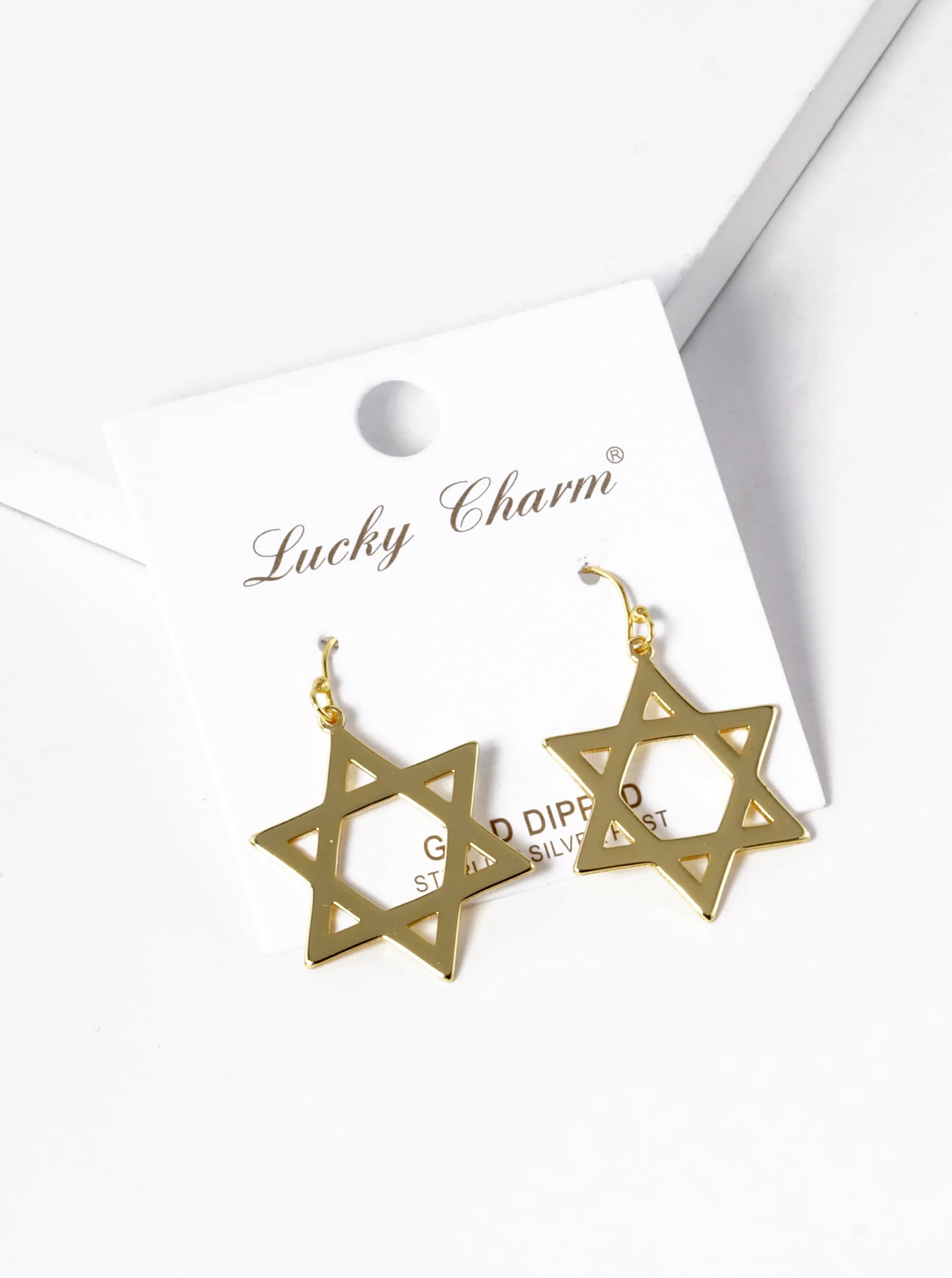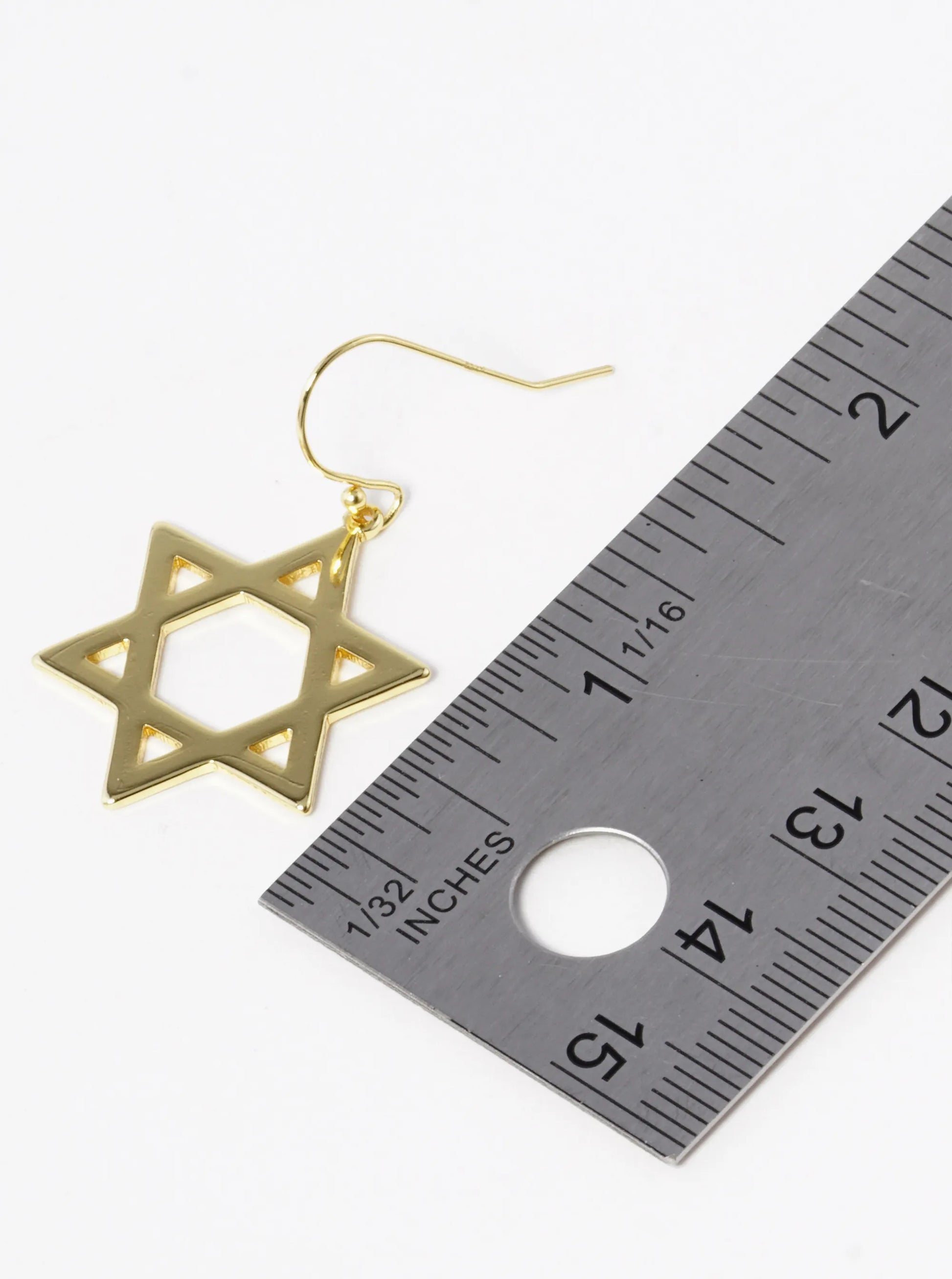 18k Gold Dipped Star Of David Dangle Drop Earrings
