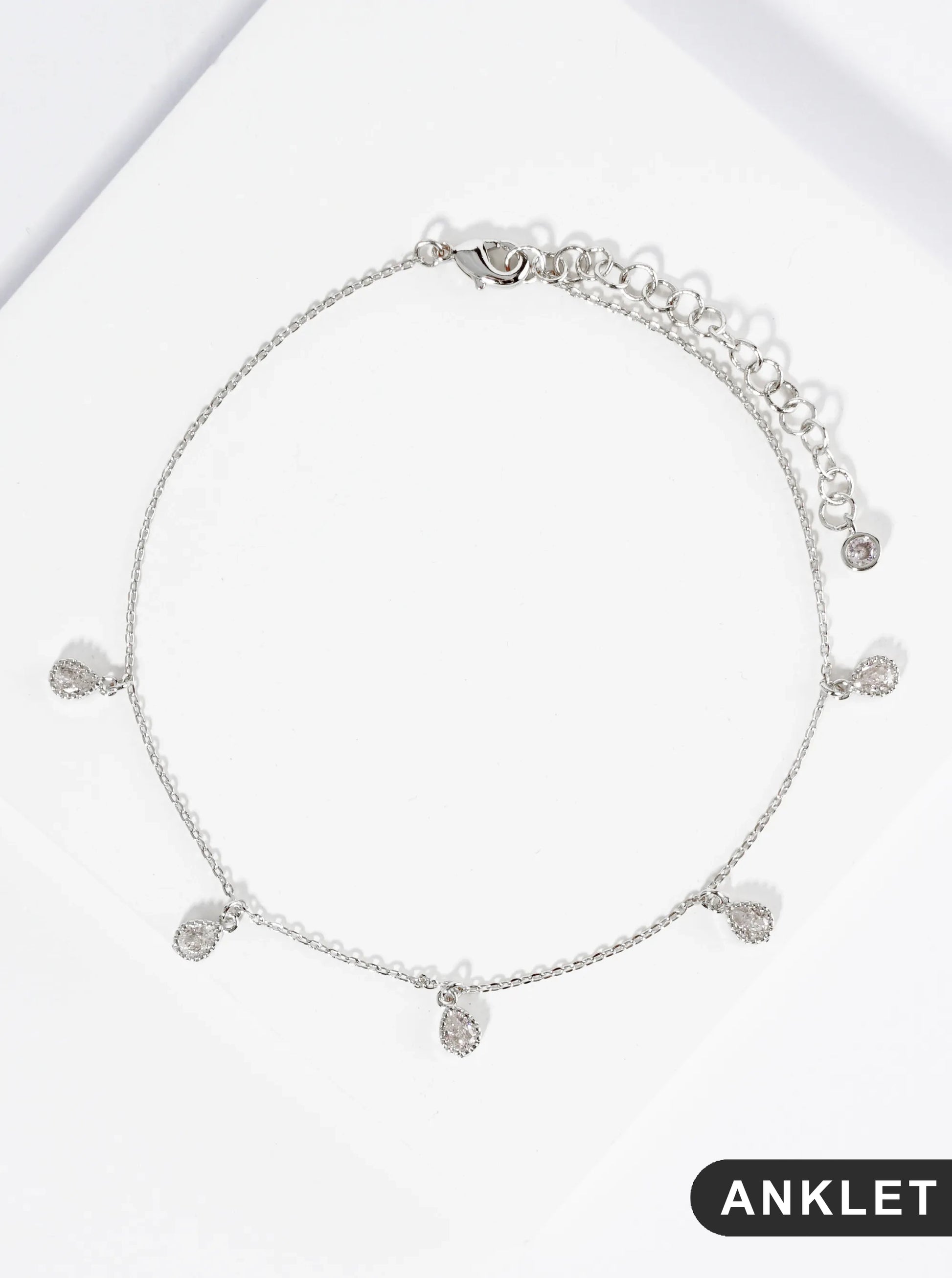 18K Gold Dipped Teardrop Cubic Zirconia Charm Brass Chain Anklet